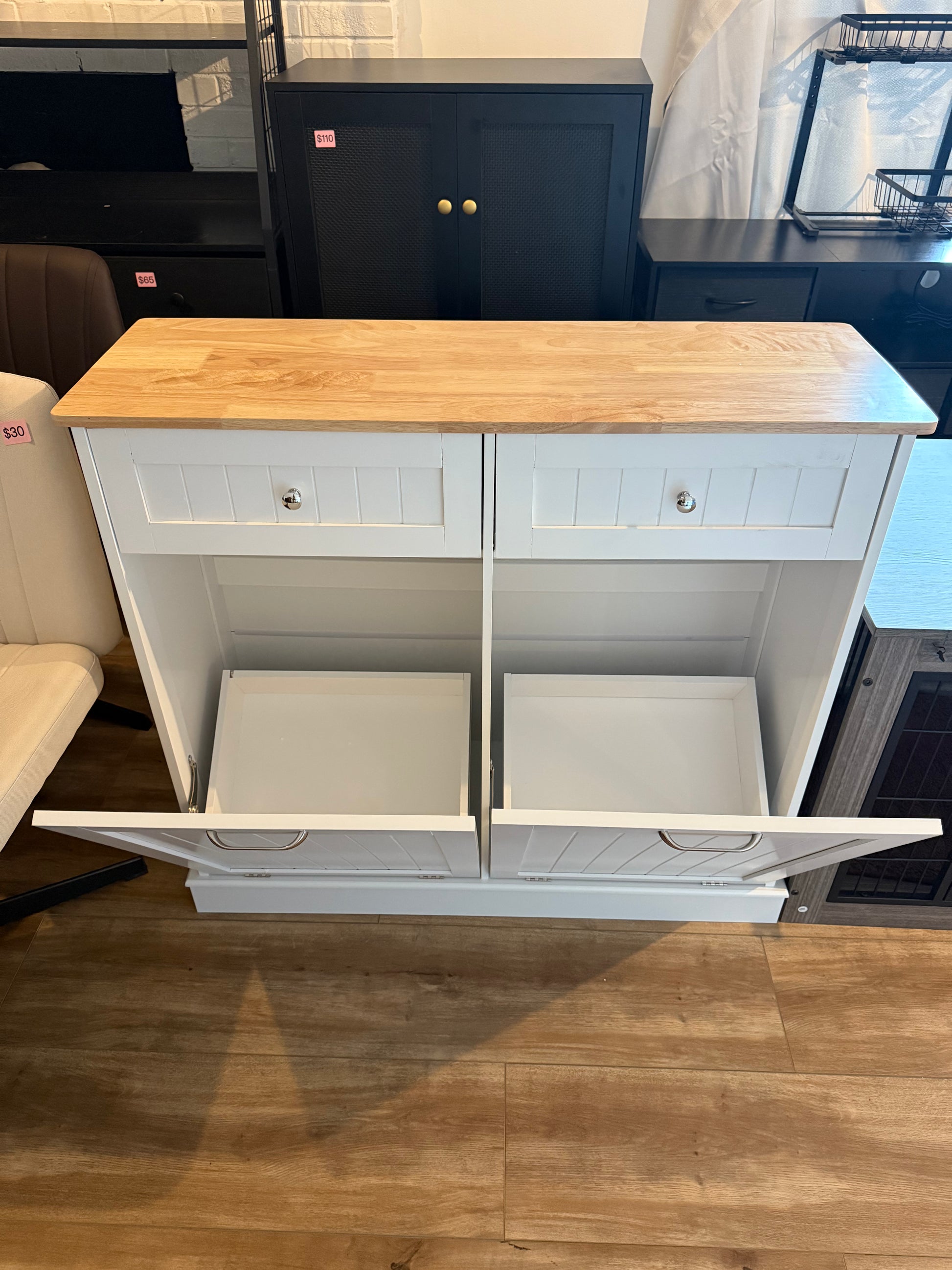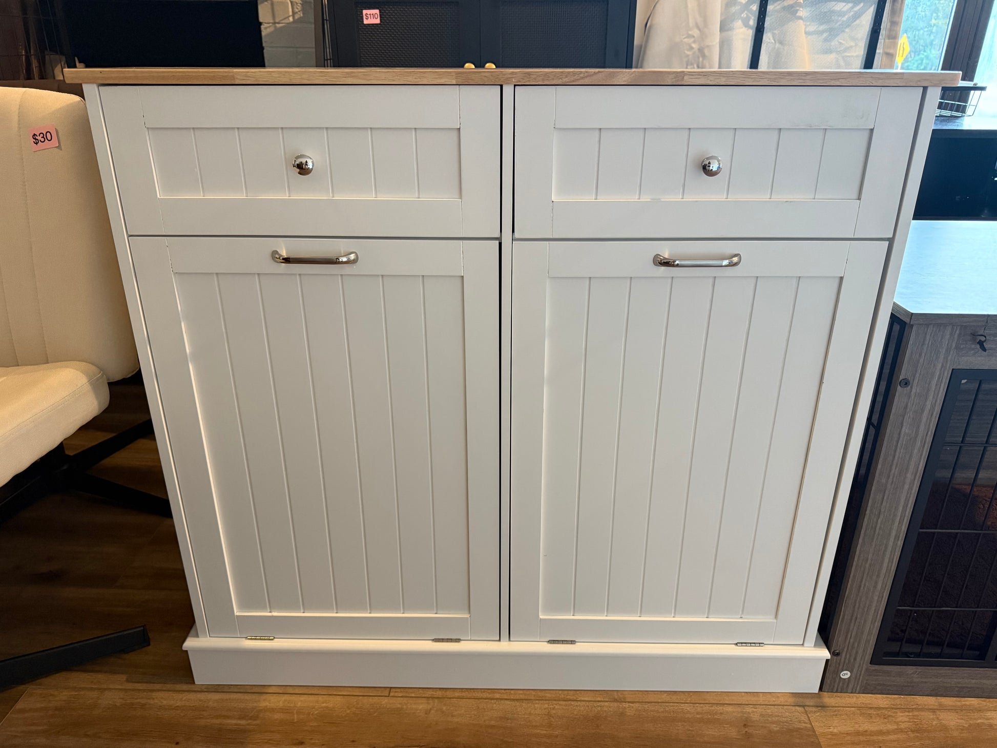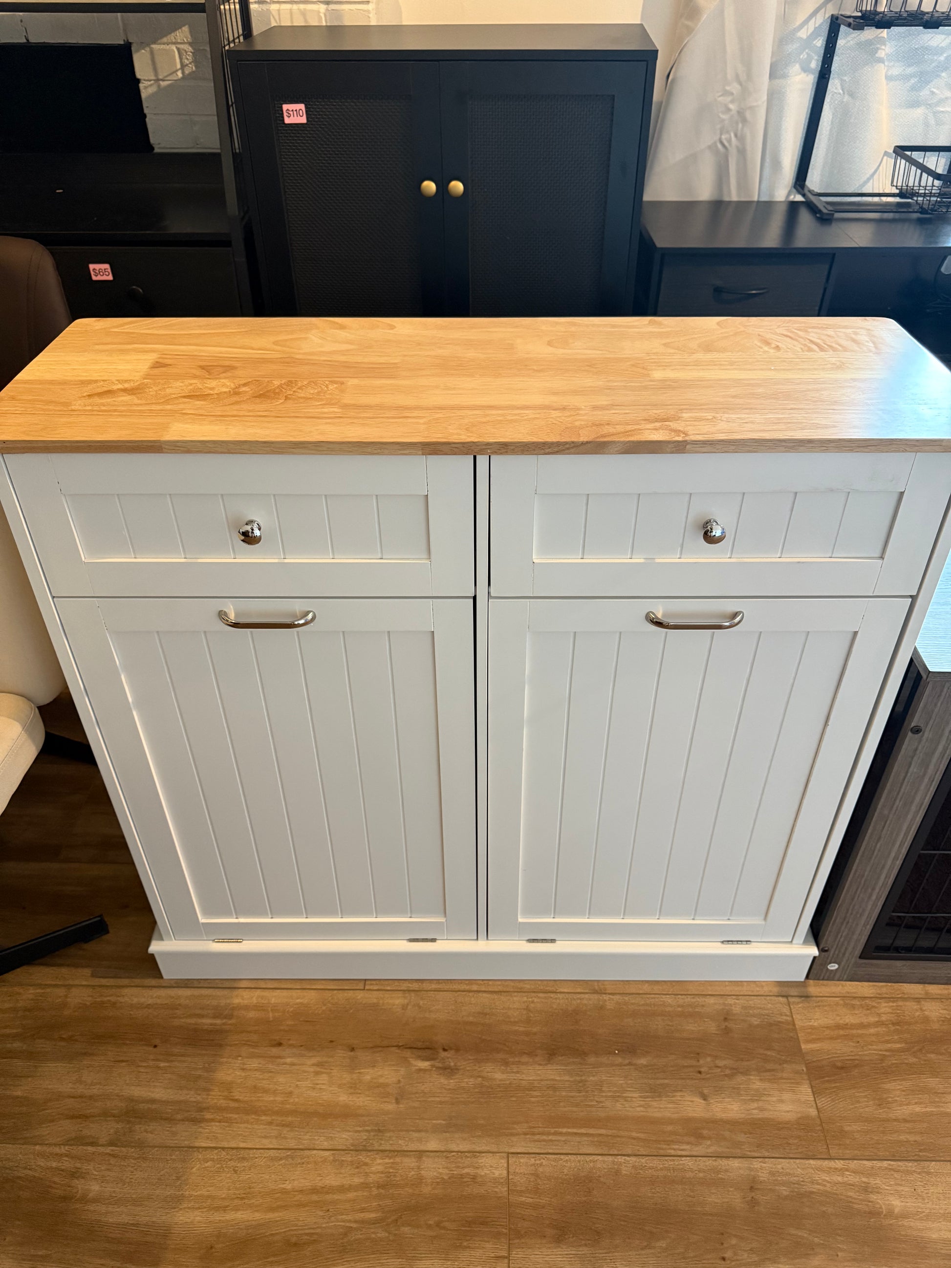 - 【Versatile storage】— can be used as a kitchen island. The countertop can place a coffee machine, microwave, etc. Also can be used as laundry bin, recycling bin, trash can etc