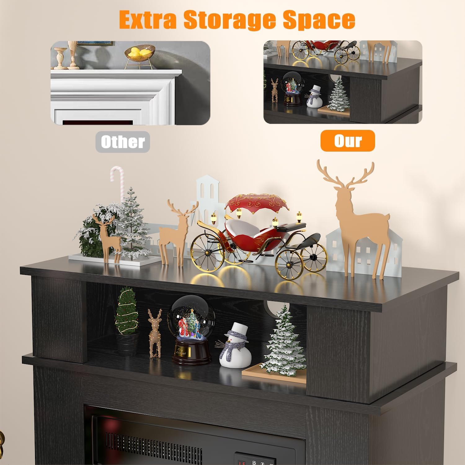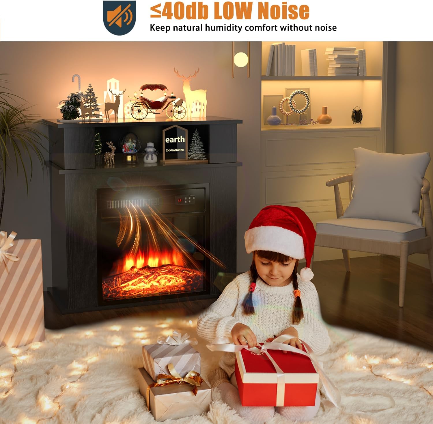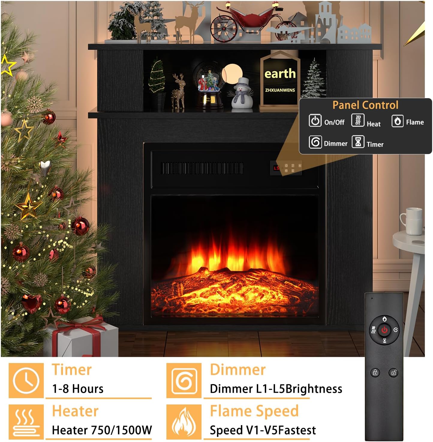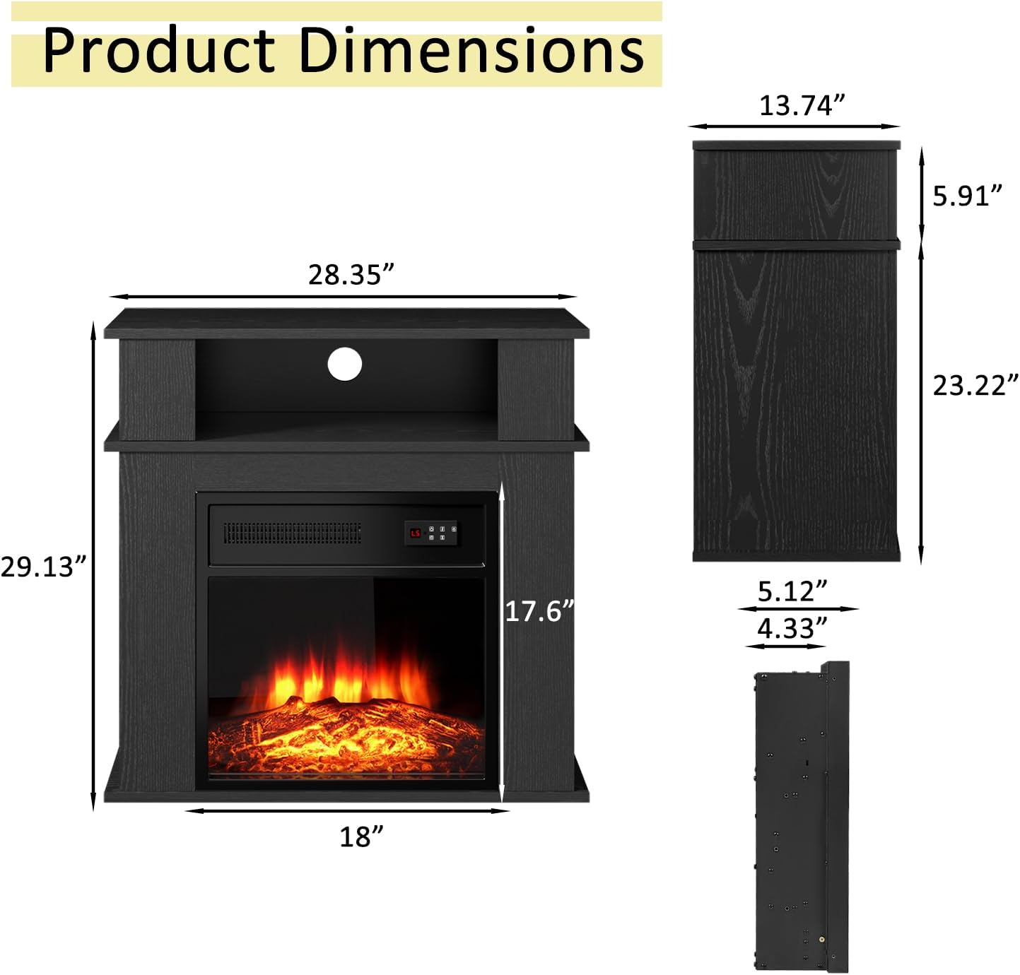 28" Electric Fireplace with Mantel, Small Fireplace tv Stand with 18" Fireplace Insert, 3D Realistic Flame, Portable Freestanding Fireplace with a Shelf for Living Room, Remote Control, Black