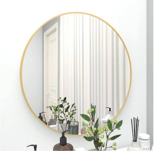 - Modern and simple design: 28 in., gold, diameter of this classic metal frame circle mirror is 28 in. with an alloy metal sleek frame, floating round glass panel