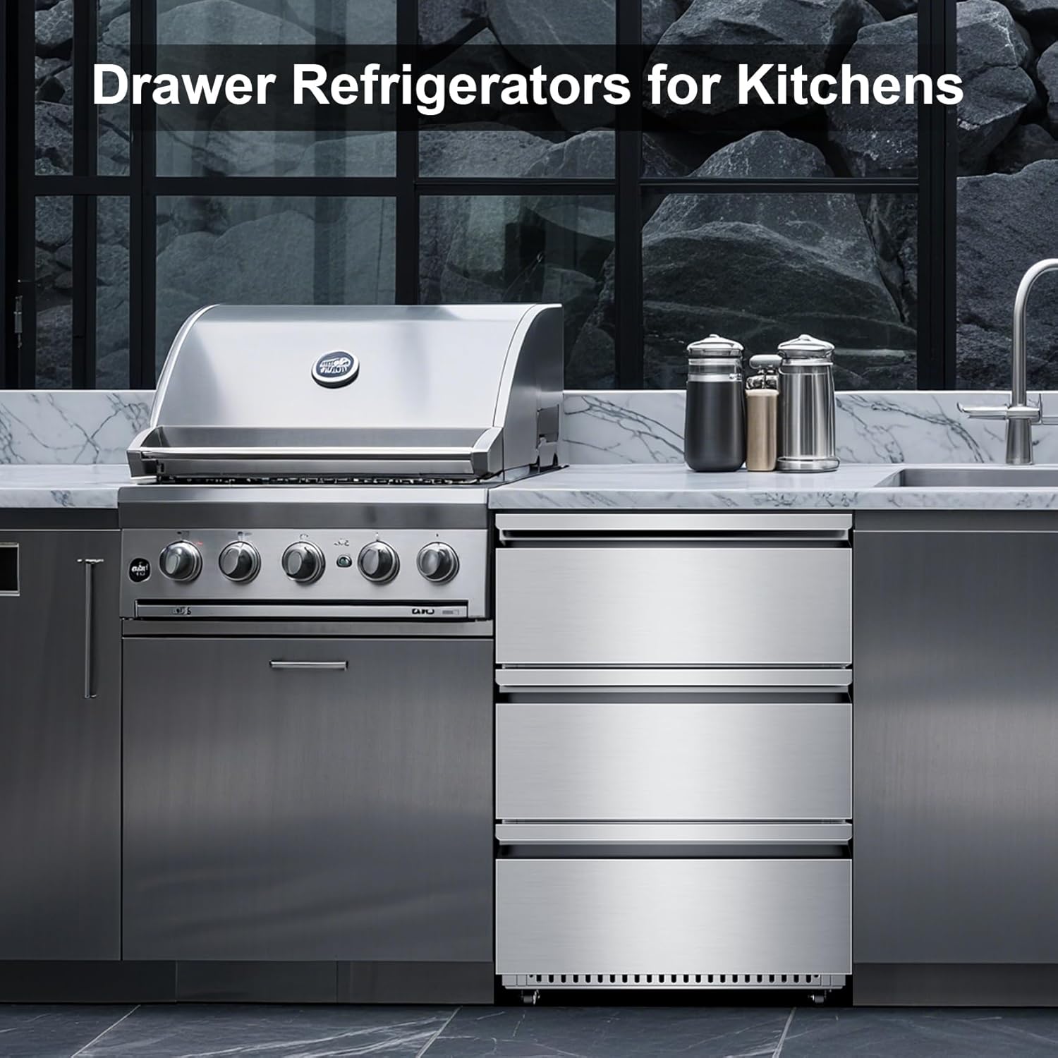 - Under counter drawer refrigerato crafted from a durable, full stainless steel body that resists rust and corrosion, it’s built for both indoor and outdoor longevity. Its slim 24.1-inch profile fits perfectly under counters or in corners.