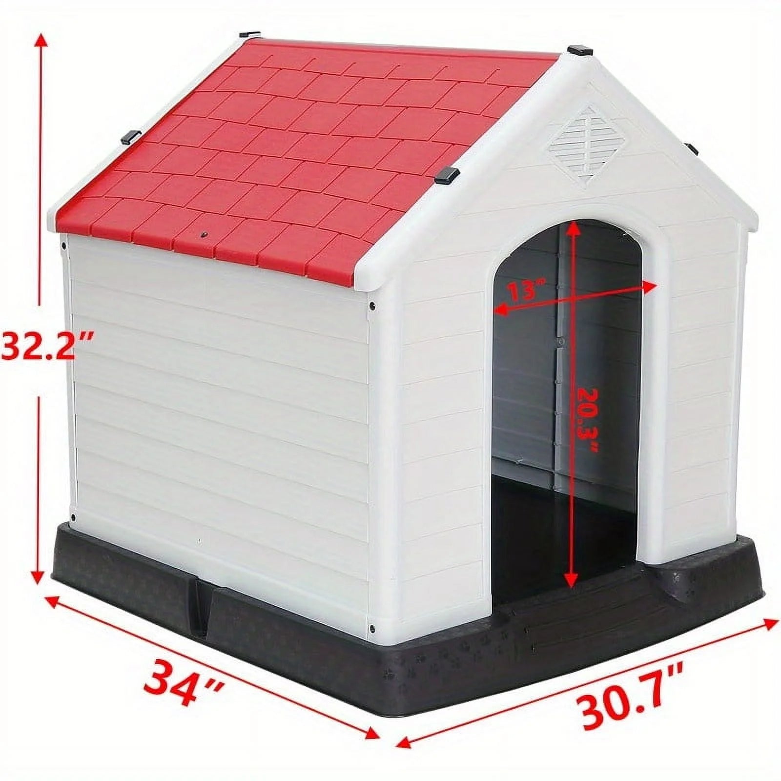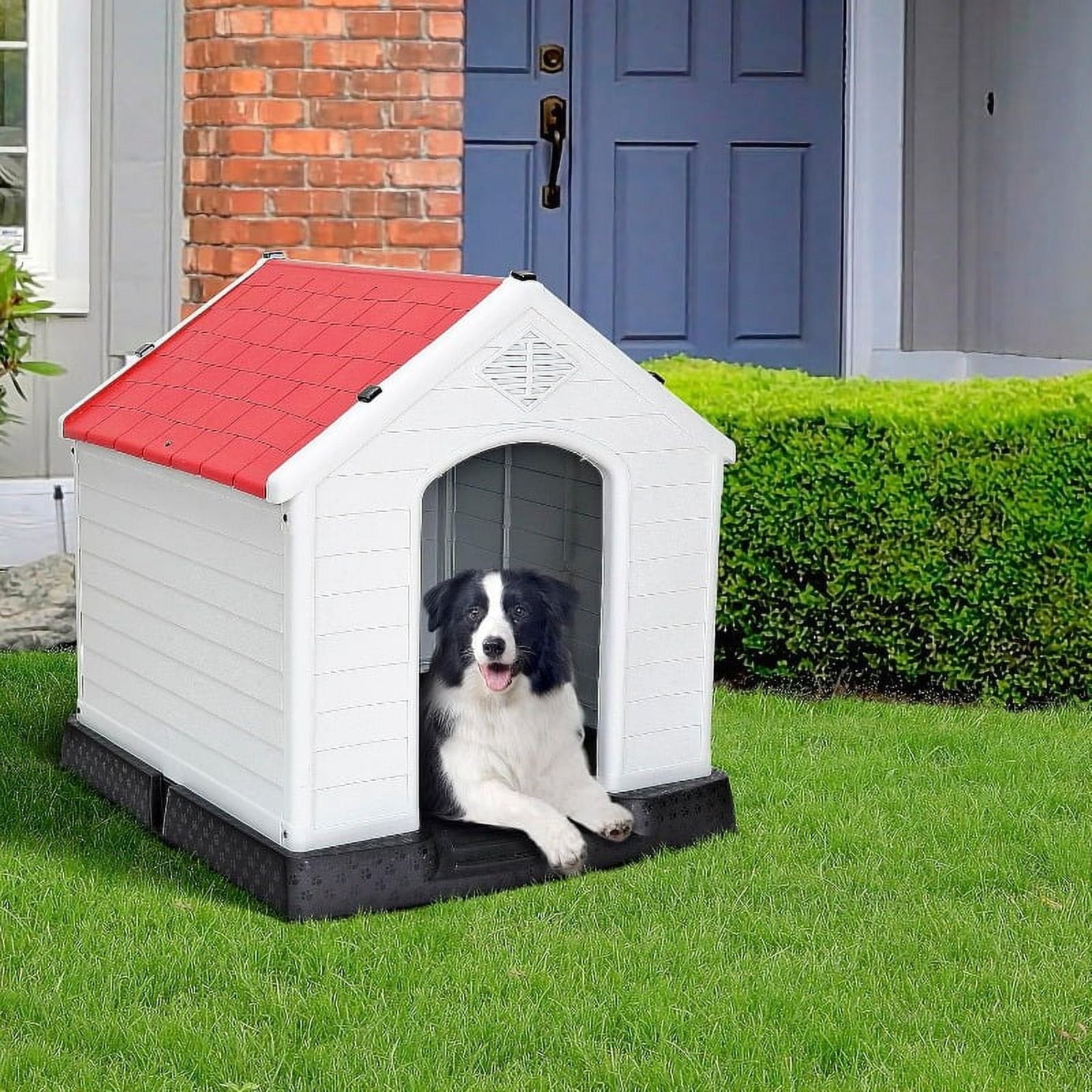 34 Inch Large Plastic Dog House - Waterproof Dog Kennel with Air Vents and Elevated Floor All Weather Indoor Outdoor Insulated Doghouse Puppy Shelter Easy to Assemble