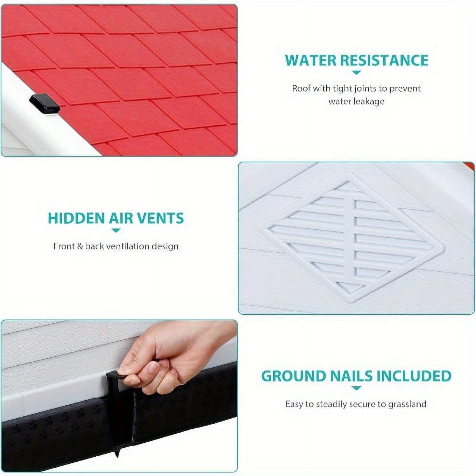 đ¶ăPerfect Design For Indoor OutdoorăThe sloping roof prevents rainwater from accumulating to keep your dog from getting wet and features an elevated floor to prevent flooding. This doghouse is equipped with a ground nail that will keep it still even if there is a strong wind in your yard