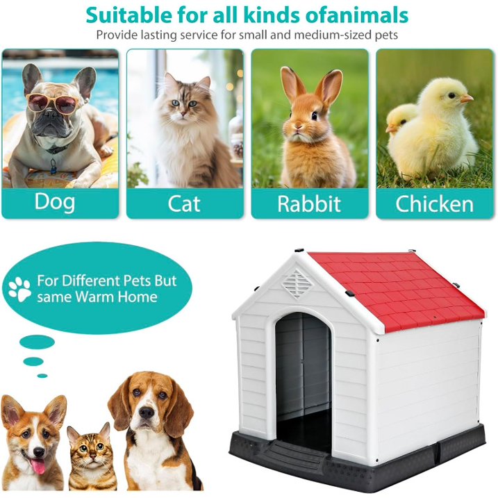 đ¶ăDurable Structure and Safe MaterialsăOur doghouses are made of very safe PP material, which is non-toxic and odorless. In addition, it features anti-corrosion and weather resistance. Our dog house is fastened with snaps and screws to ensure the stability of the overall structure. The solid construction makes it durable enough can serve your dog for a long time.