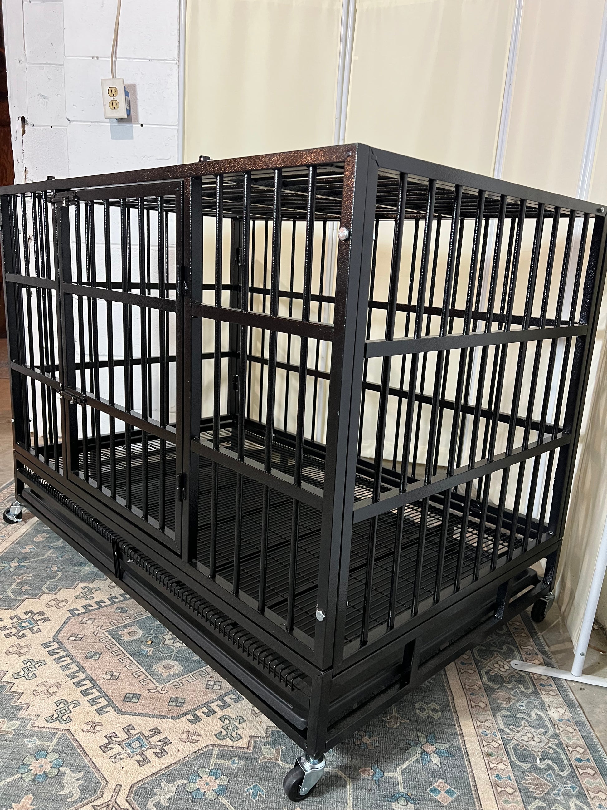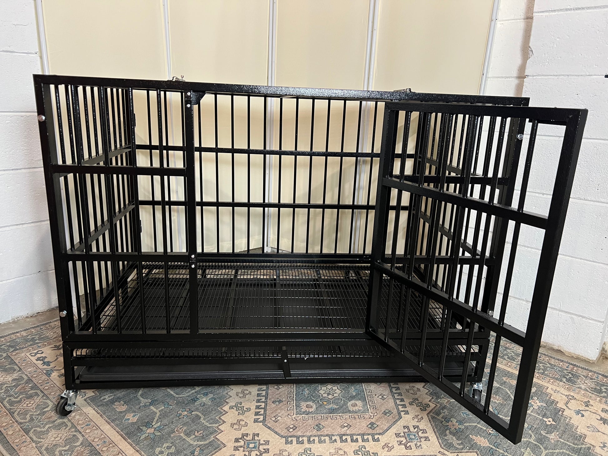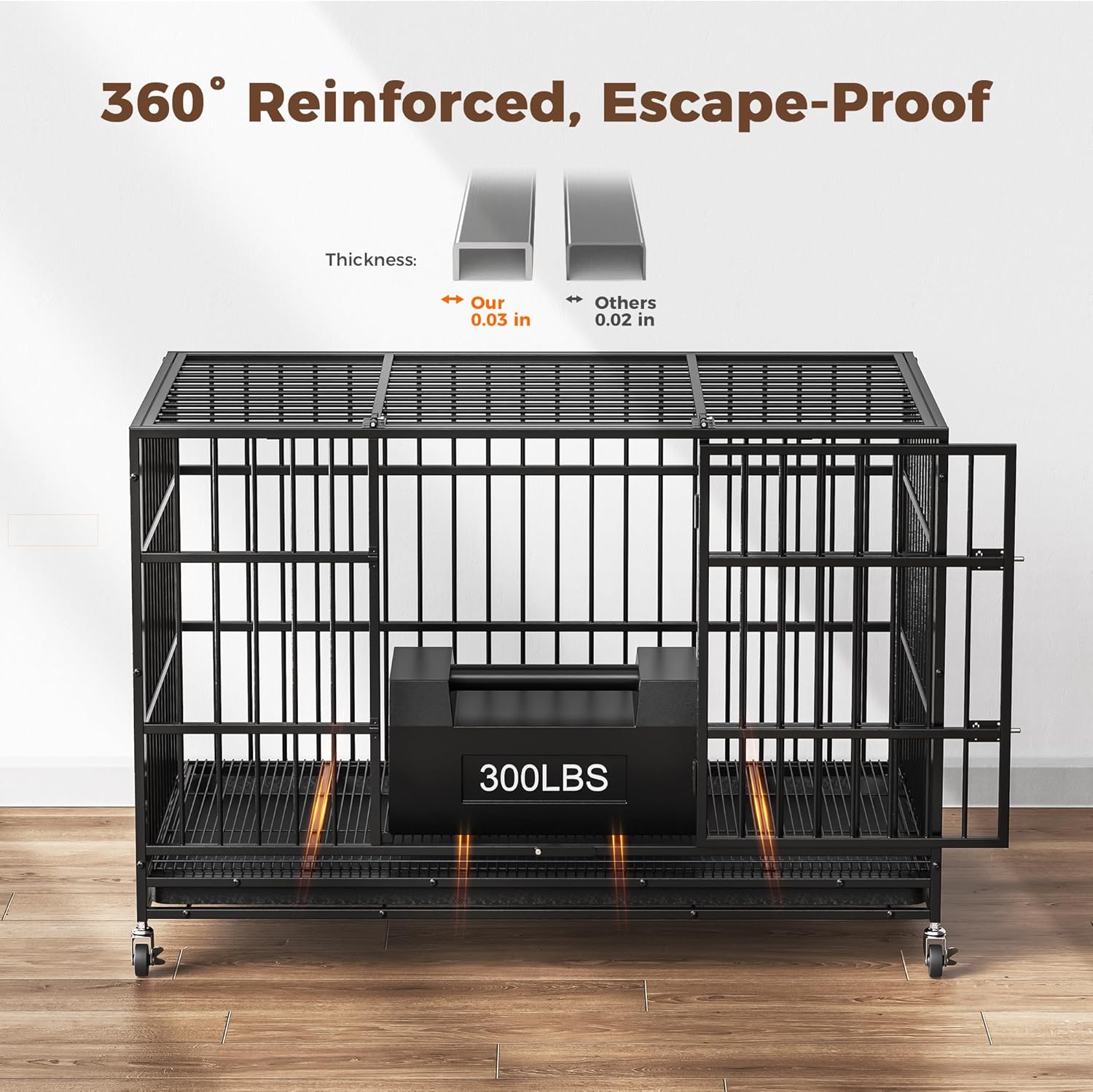 48" Heavy Duty Dog Crates for Large Dogs, Upgraded 4 Lockable Wheels, Removable Door, Dog Kennel Indoor, Max Load 300Lbs, Easy to Clean, Removable Tray, XL Dog Cage for Large and Medium Dogs