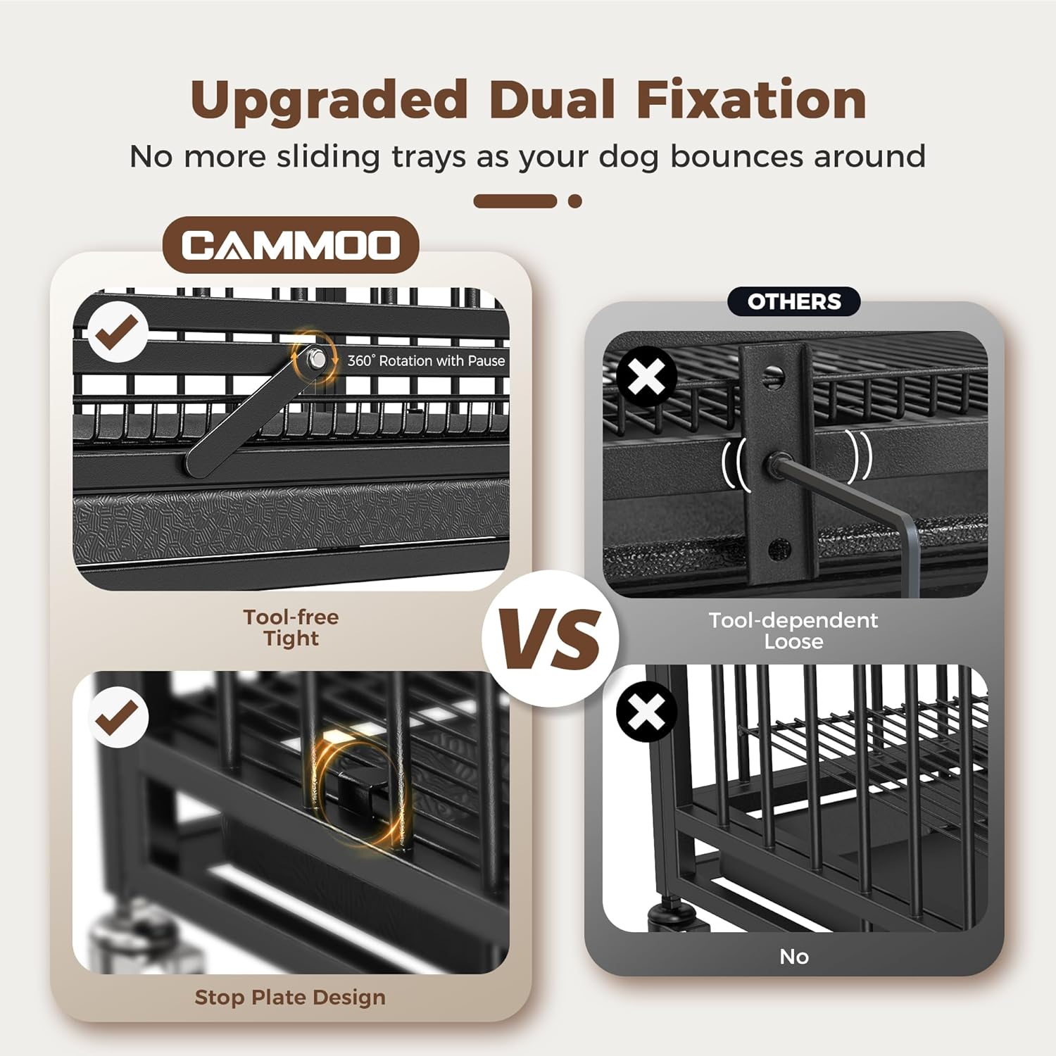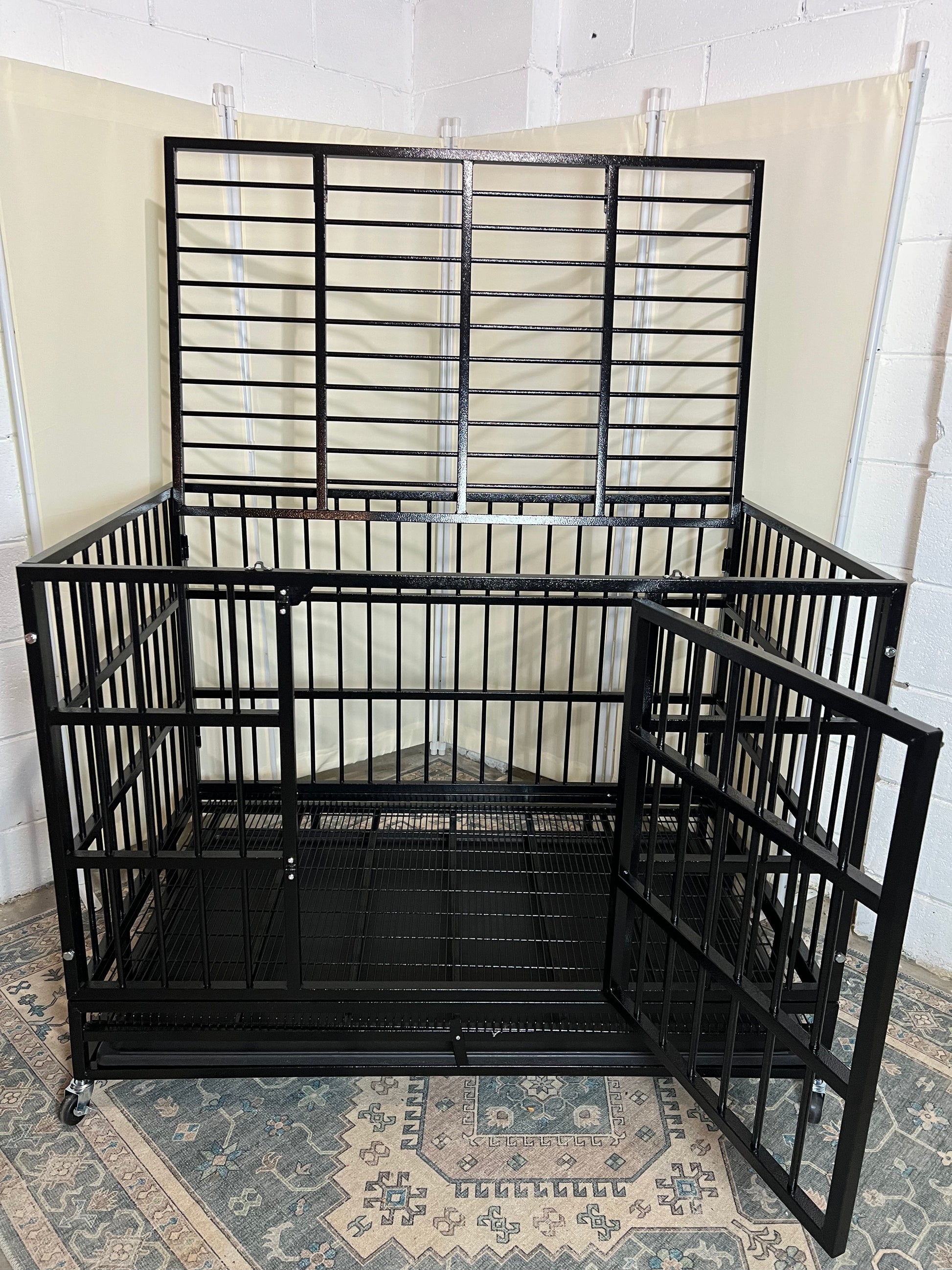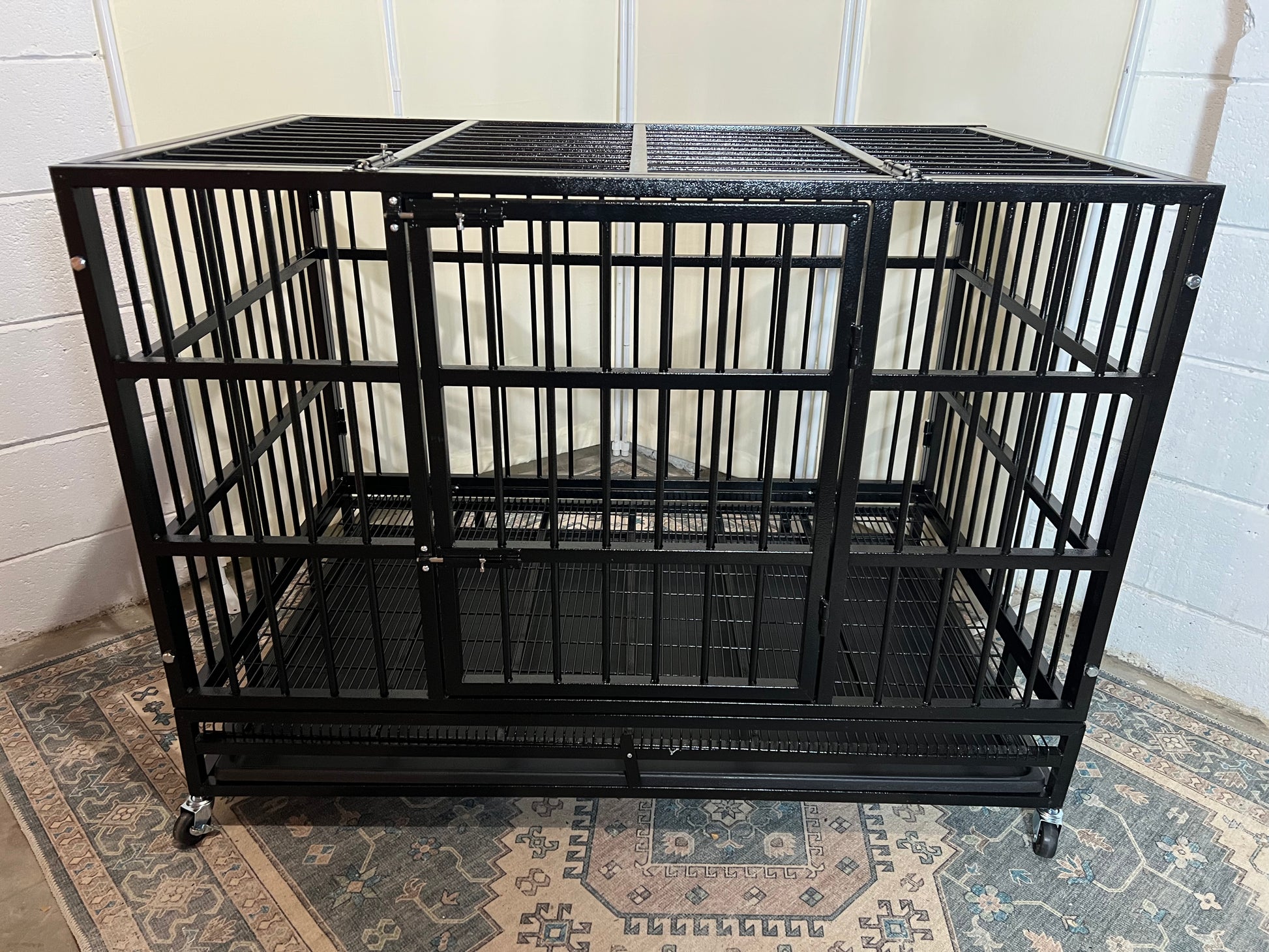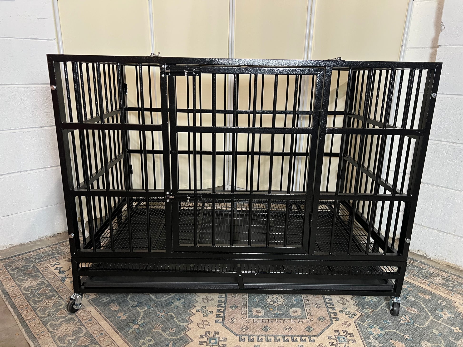 48" Heavy Duty Dog Crates for Large Dogs, Upgraded 4 Lockable Wheels, Removable Door, Dog Kennel Indoor, Max Load 300Lbs, Easy to Clean, Removable Tray, XL Dog Cage for Large and Medium Dogs