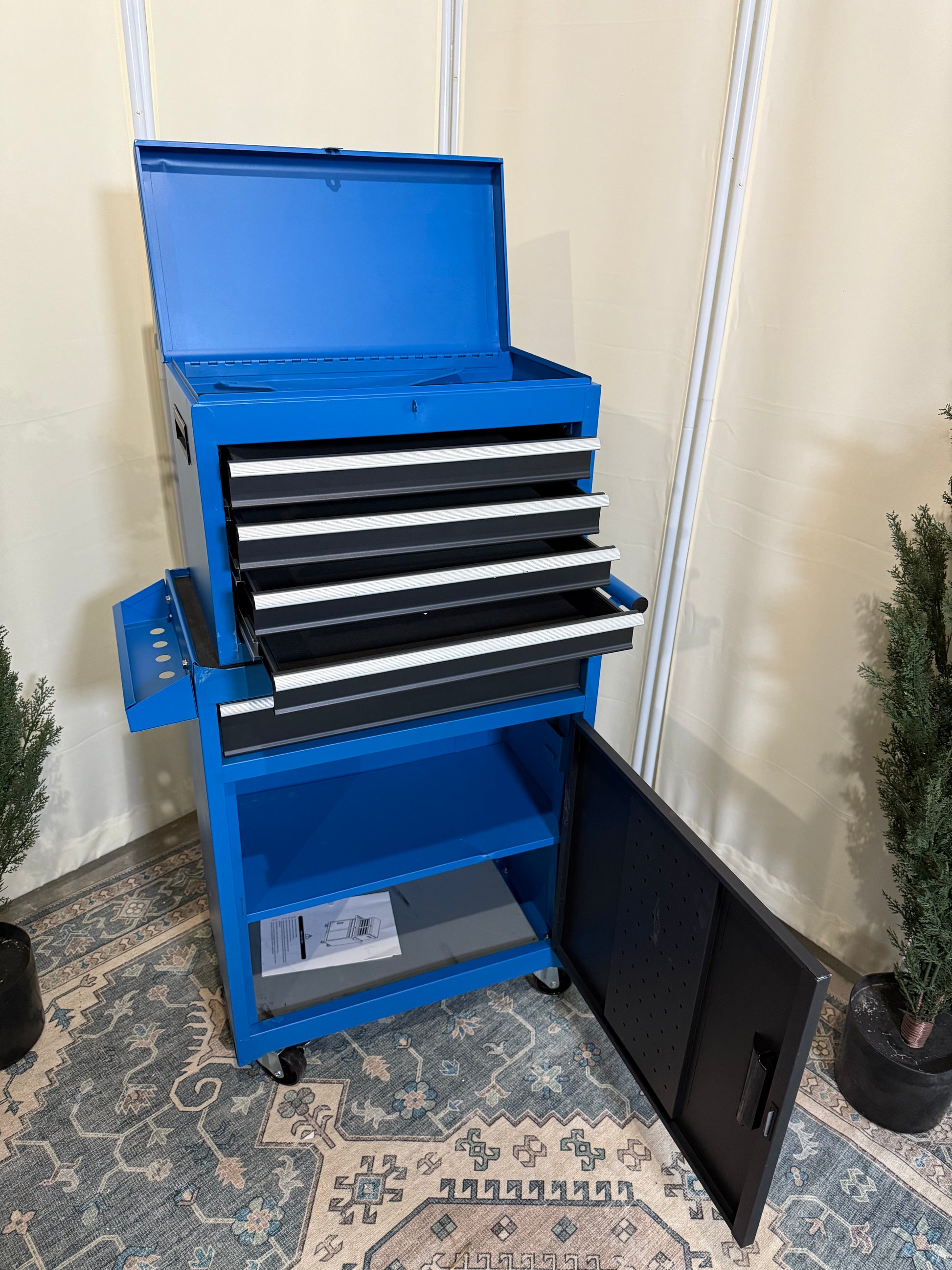 - This versatile tool storage solution comes with a detachable toolbox, offering a practical 2-in-1 design. The chest includes a four-drawer unit and a rolling cabinet, both of which can be used separately or together. For added convenience, the top toolbox can be stored inside the lower cabinet to save space. Constructed from durable cold-rolled steel, this tool chest is built to last. The drawers are lined with protective padding to prevent tools from getting scratched or damaged.