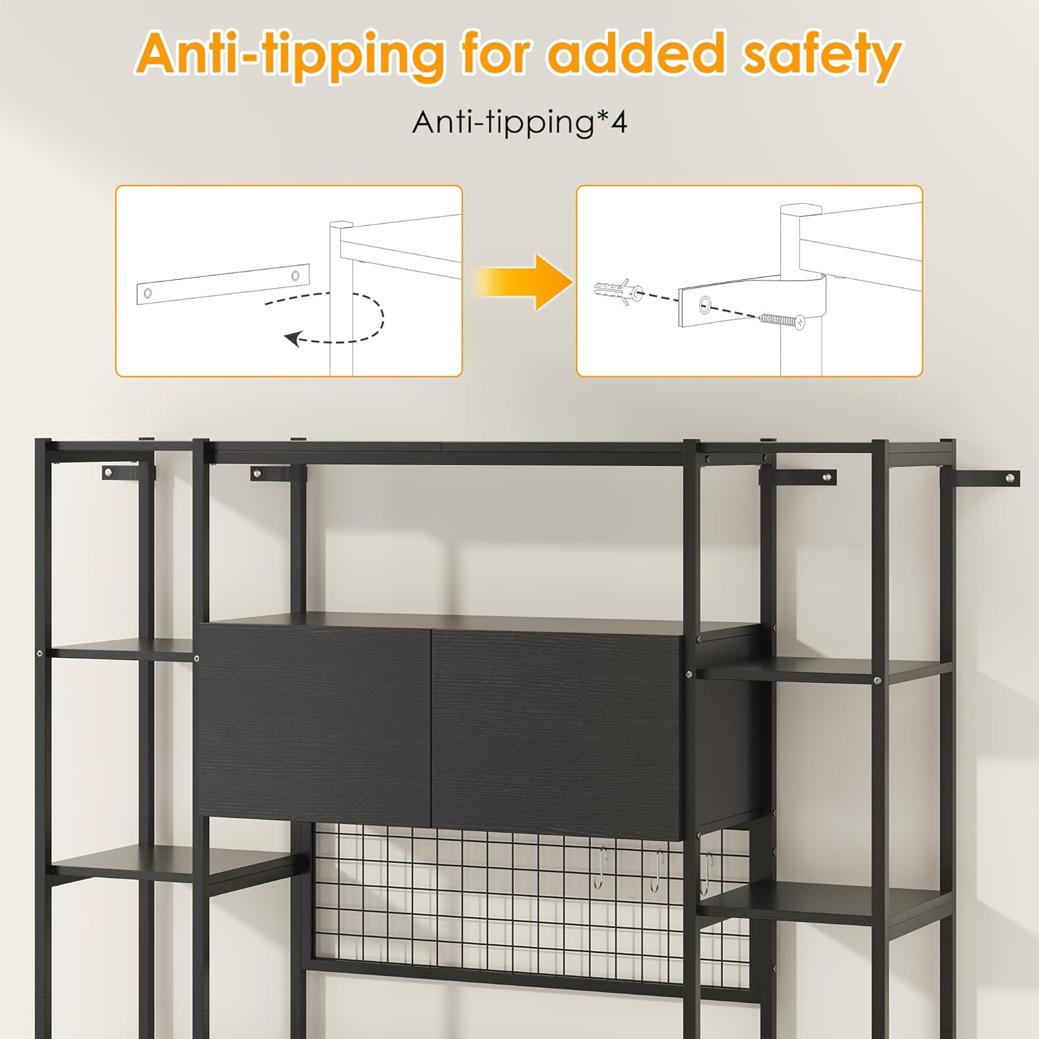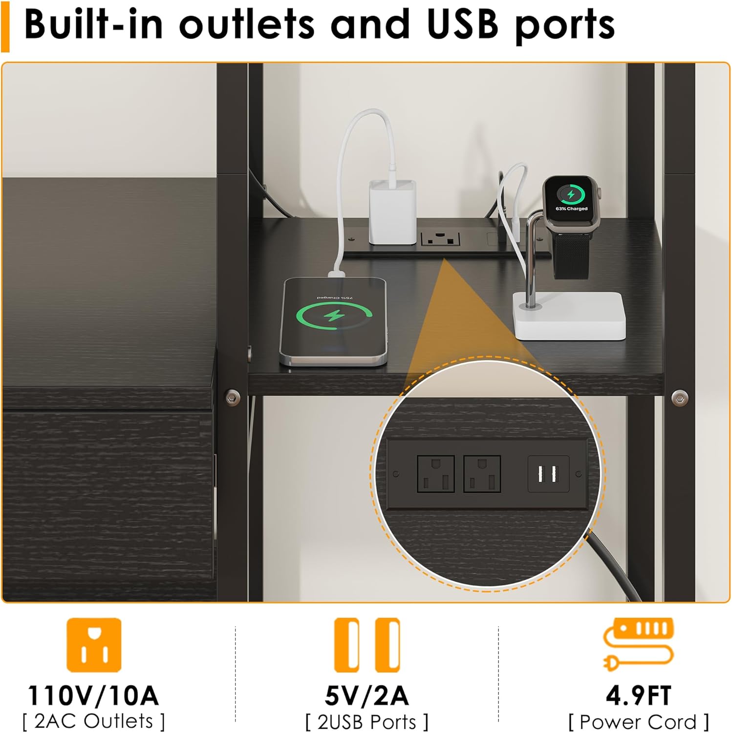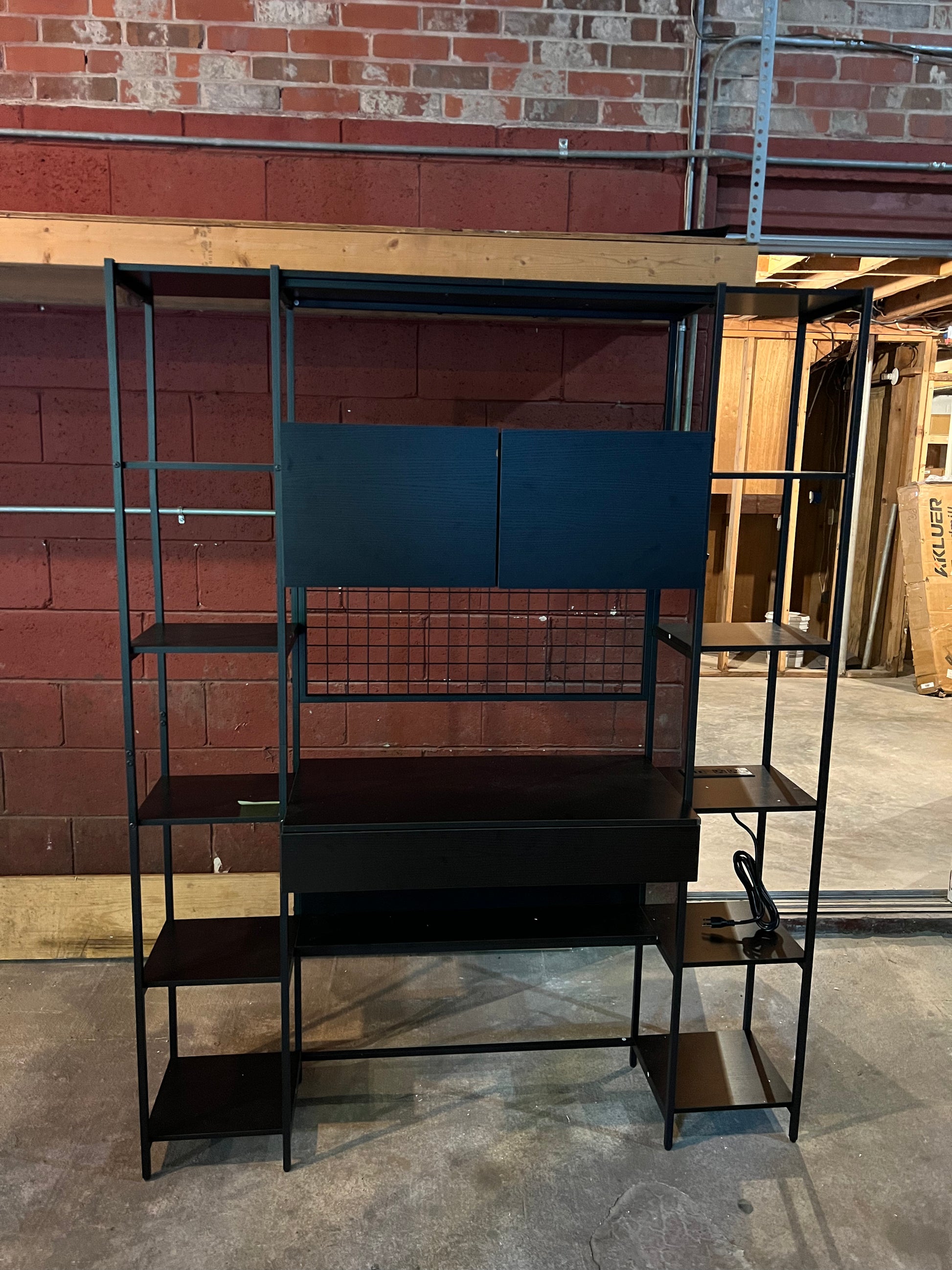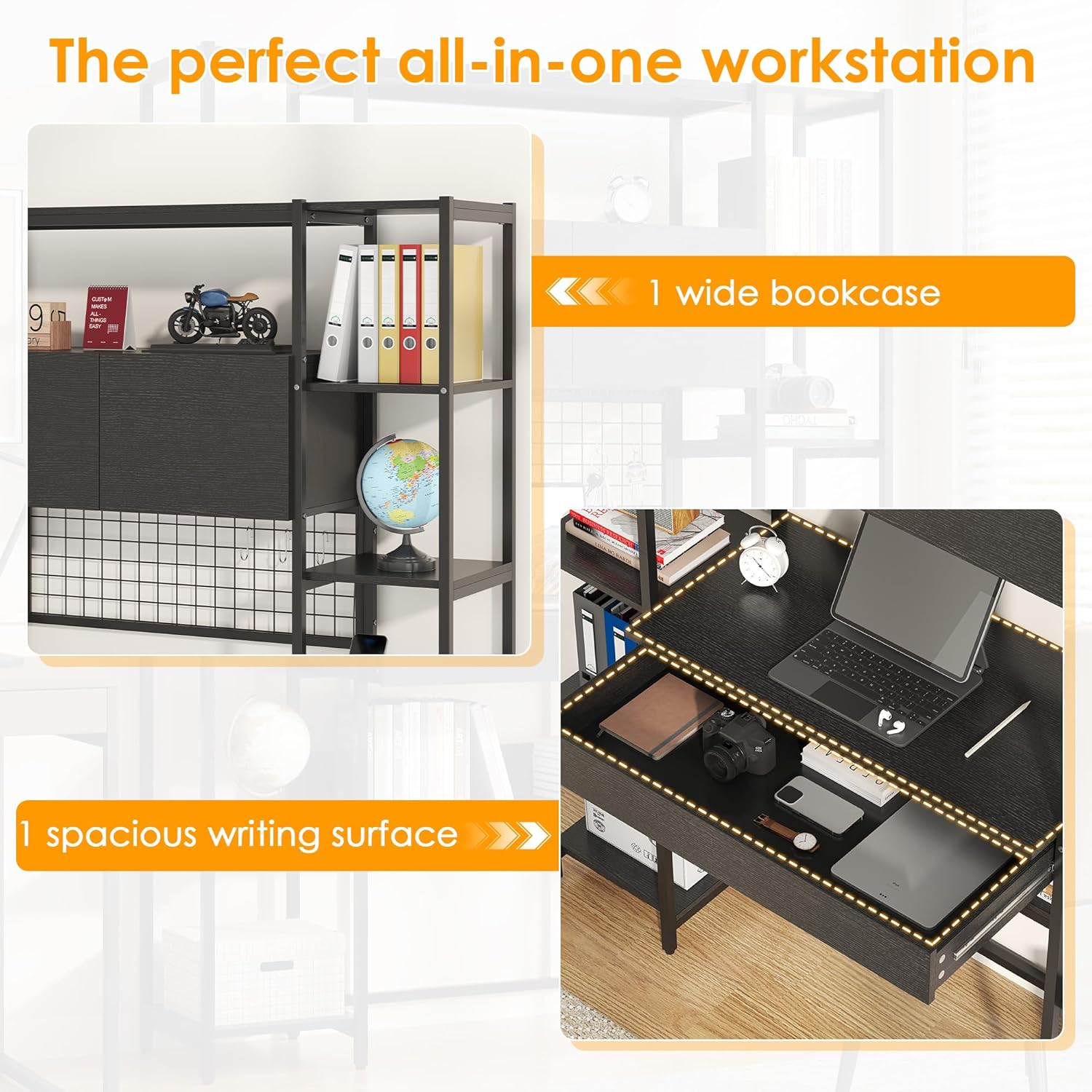 5 Tiers Black Bookshelf with Home Office Desk and RGB Lights and Power Outlet, 71.1" Tall Book Shelf with Drawer & Storage Cabinet & 12 Storage Shelves, Large Bookcase with 2 Doors, Black