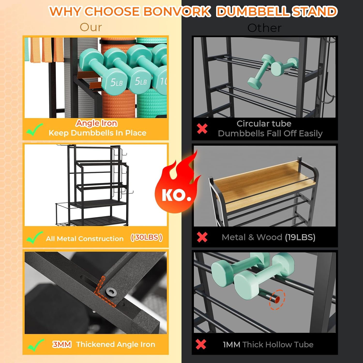 600LBS Dumbbell Rack Weight Stand - Bonvork Adjustable Weight Rack for Dumbbells, Home Gym Storage Rack for Yoga Mat Foam Roller Kettlebells, Workout Equipment Storage Organizer With Wheels