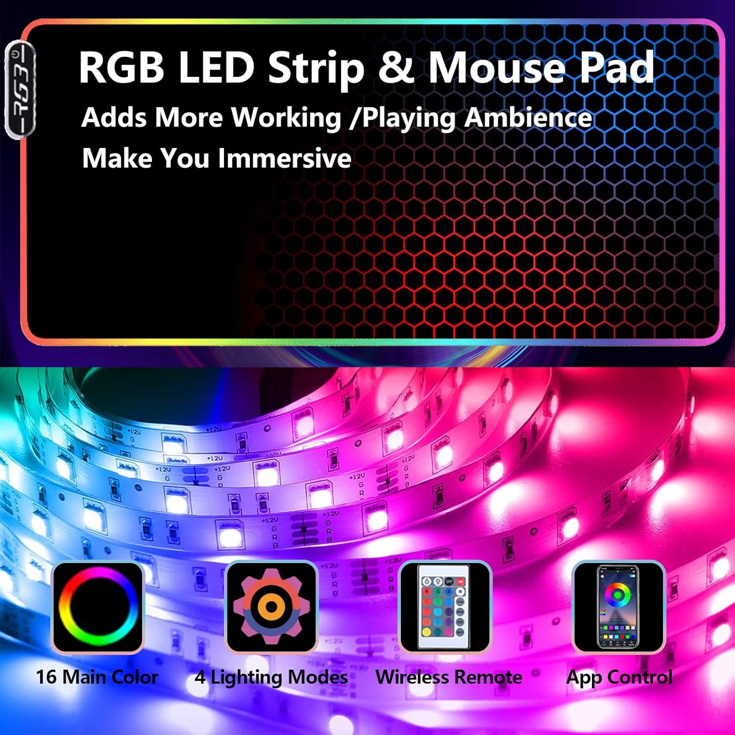 63" Computer Desk with Power Outlet & LED Light, Wing-Shaped Gaming Desk with Shelves, Full Monitor Stand,Wireless Charging,RGB Mouse Pad,Headphone Hook, Home Office Desk (Black)