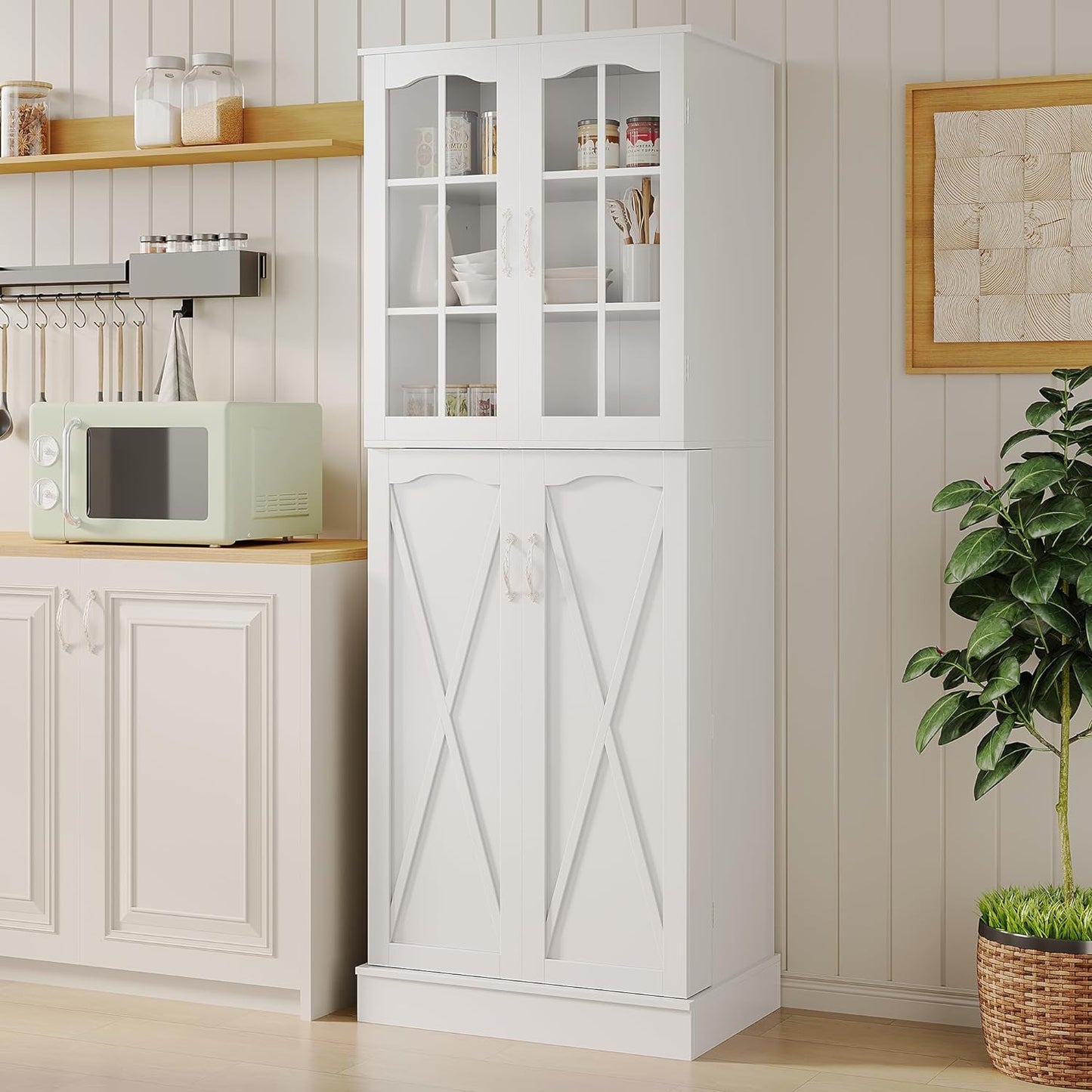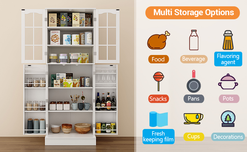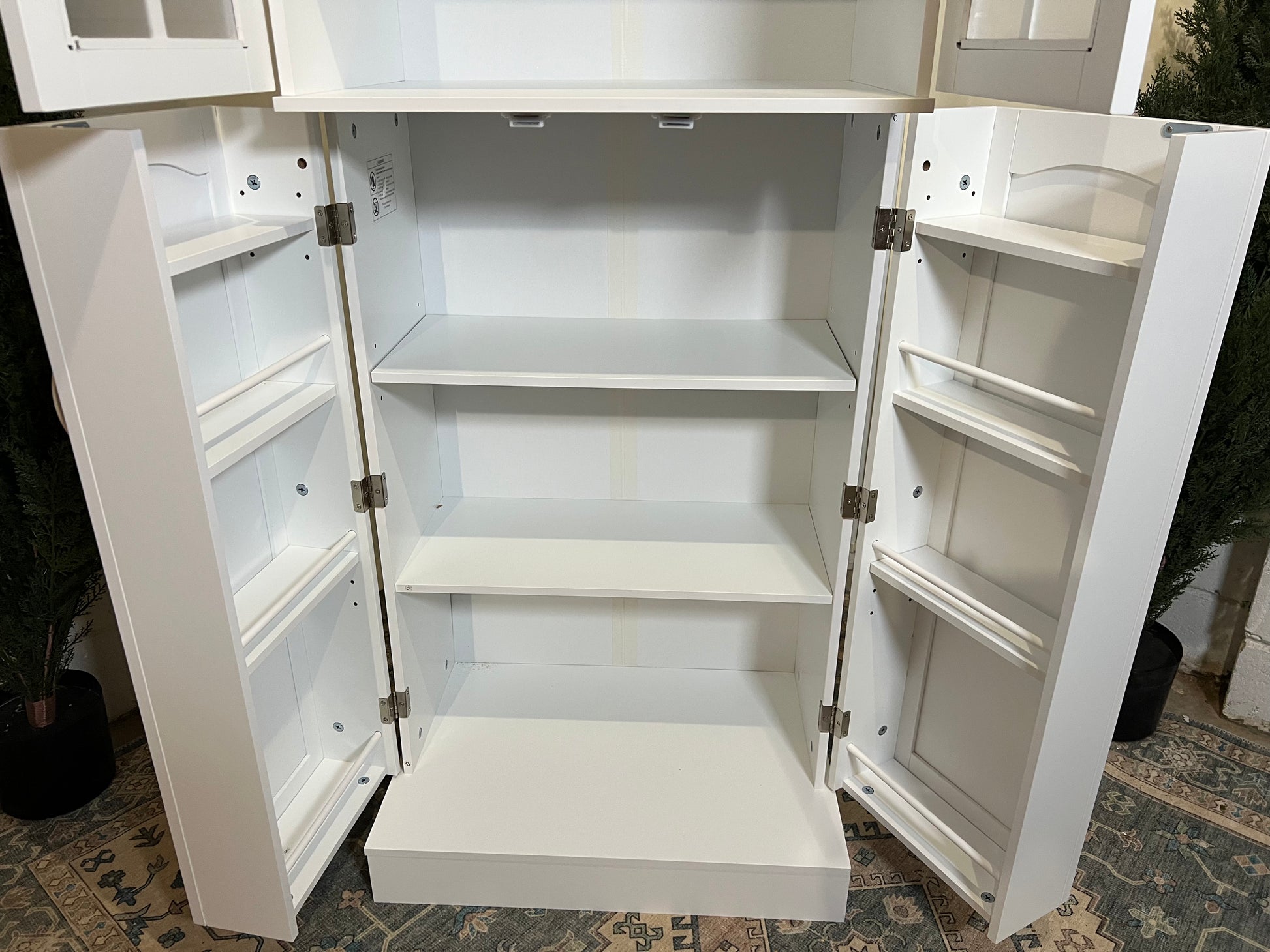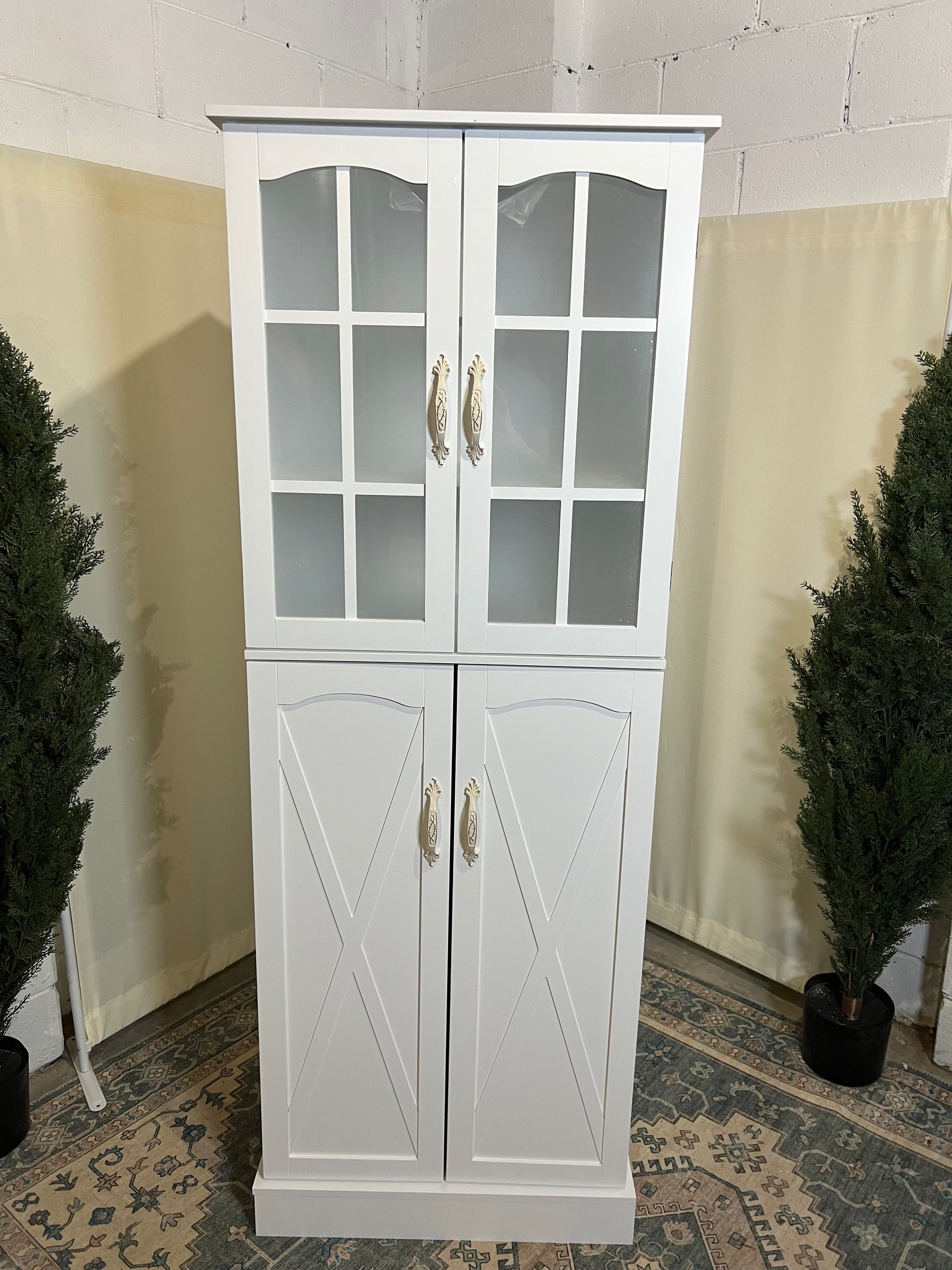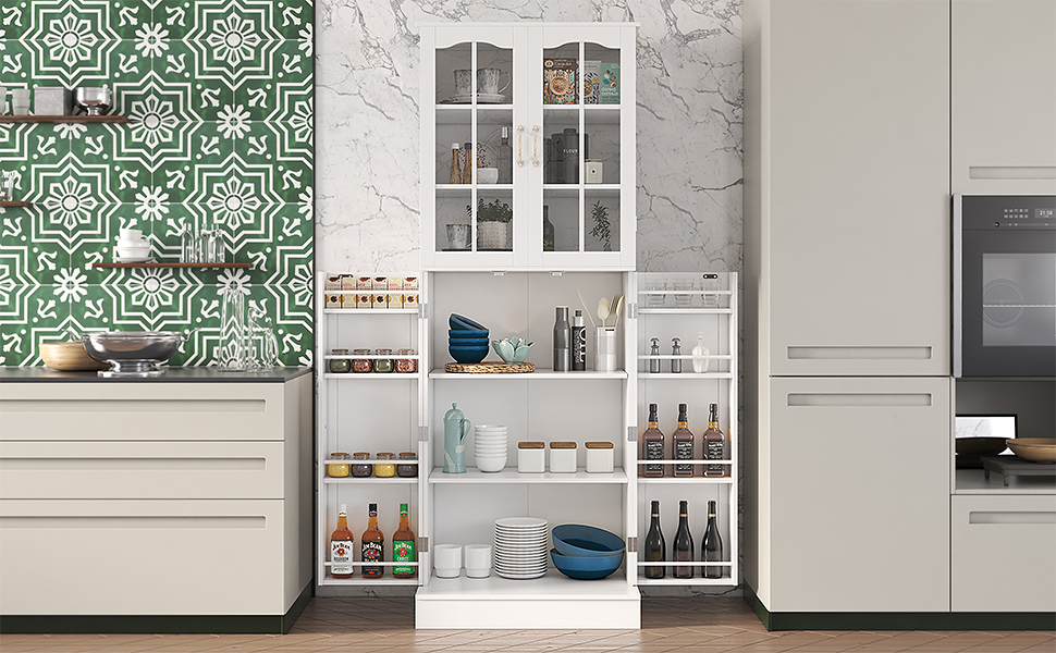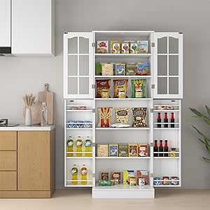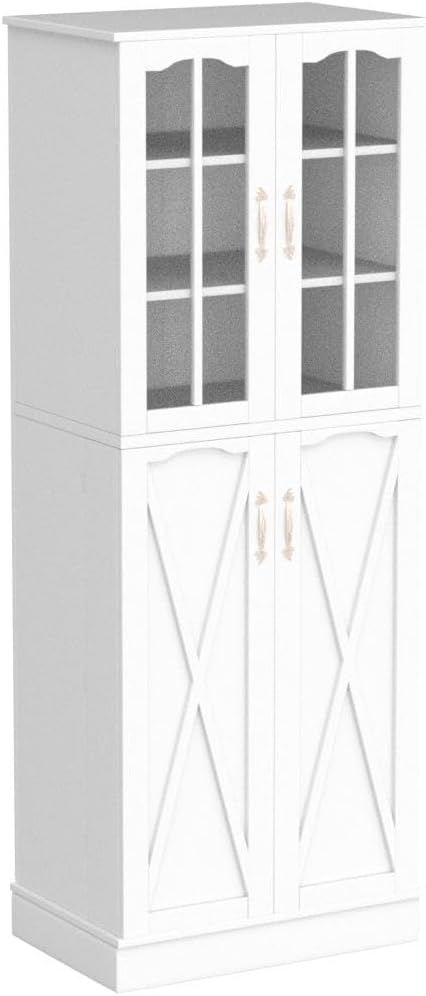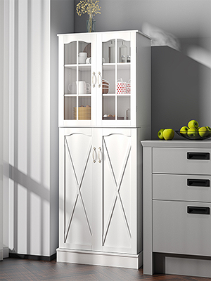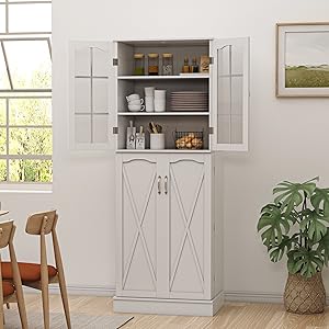 - Sturdy Construction: Farmhouse pantry cabinet is crafted from laminated fiberboard, it features a clean-lined silhouette and a neutral solid finish for a versatile addition to any ensemble.