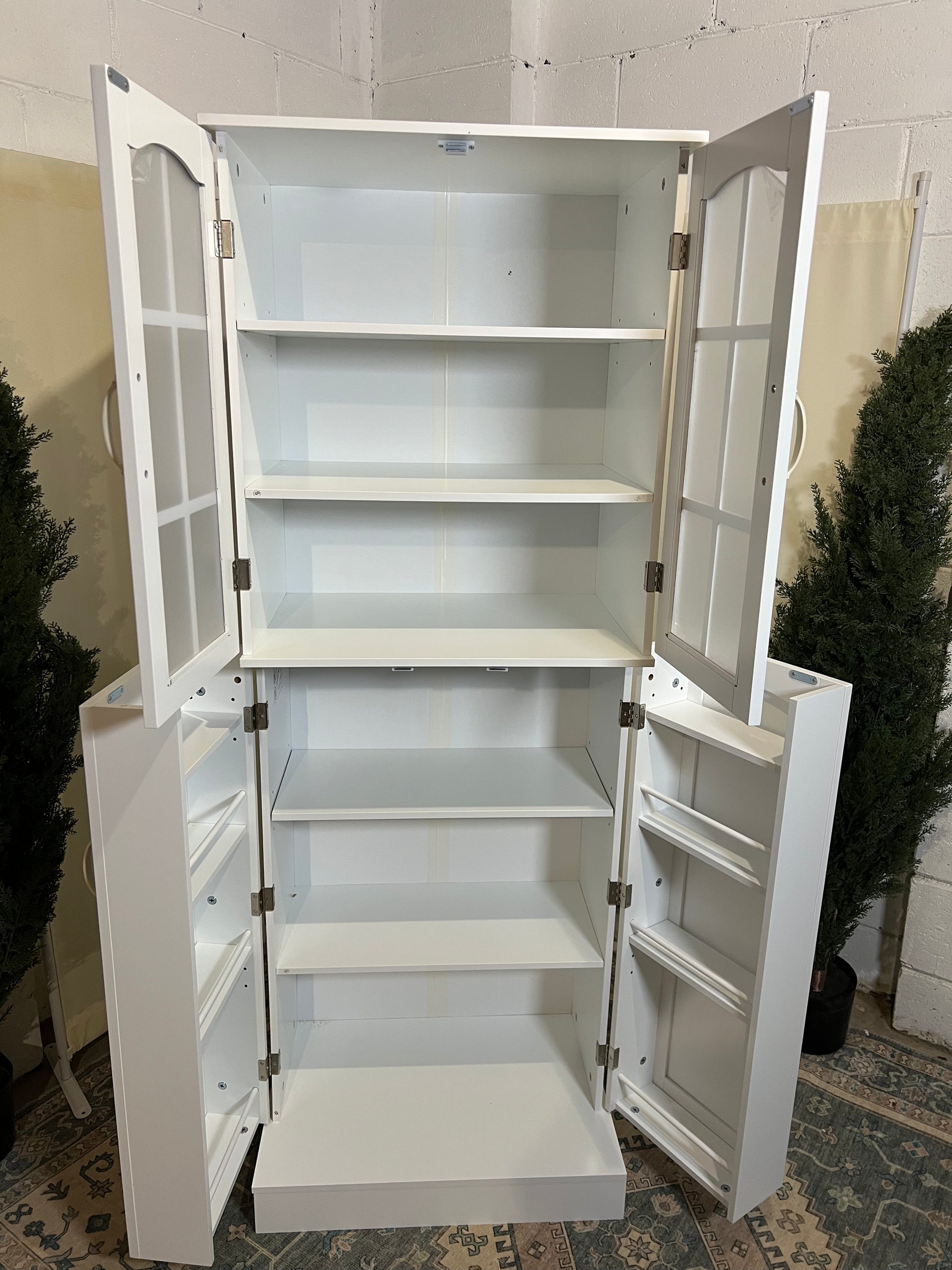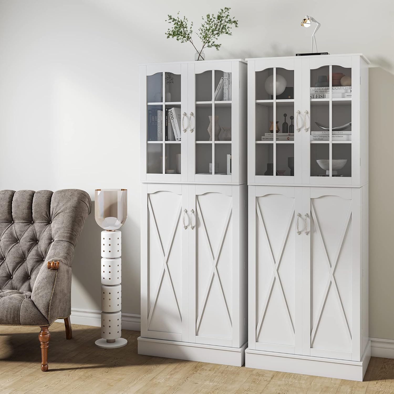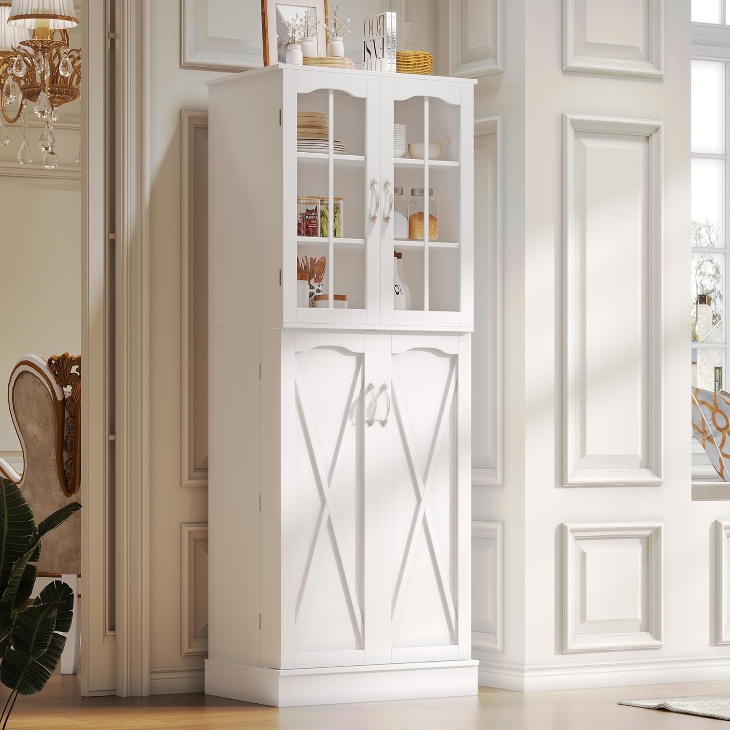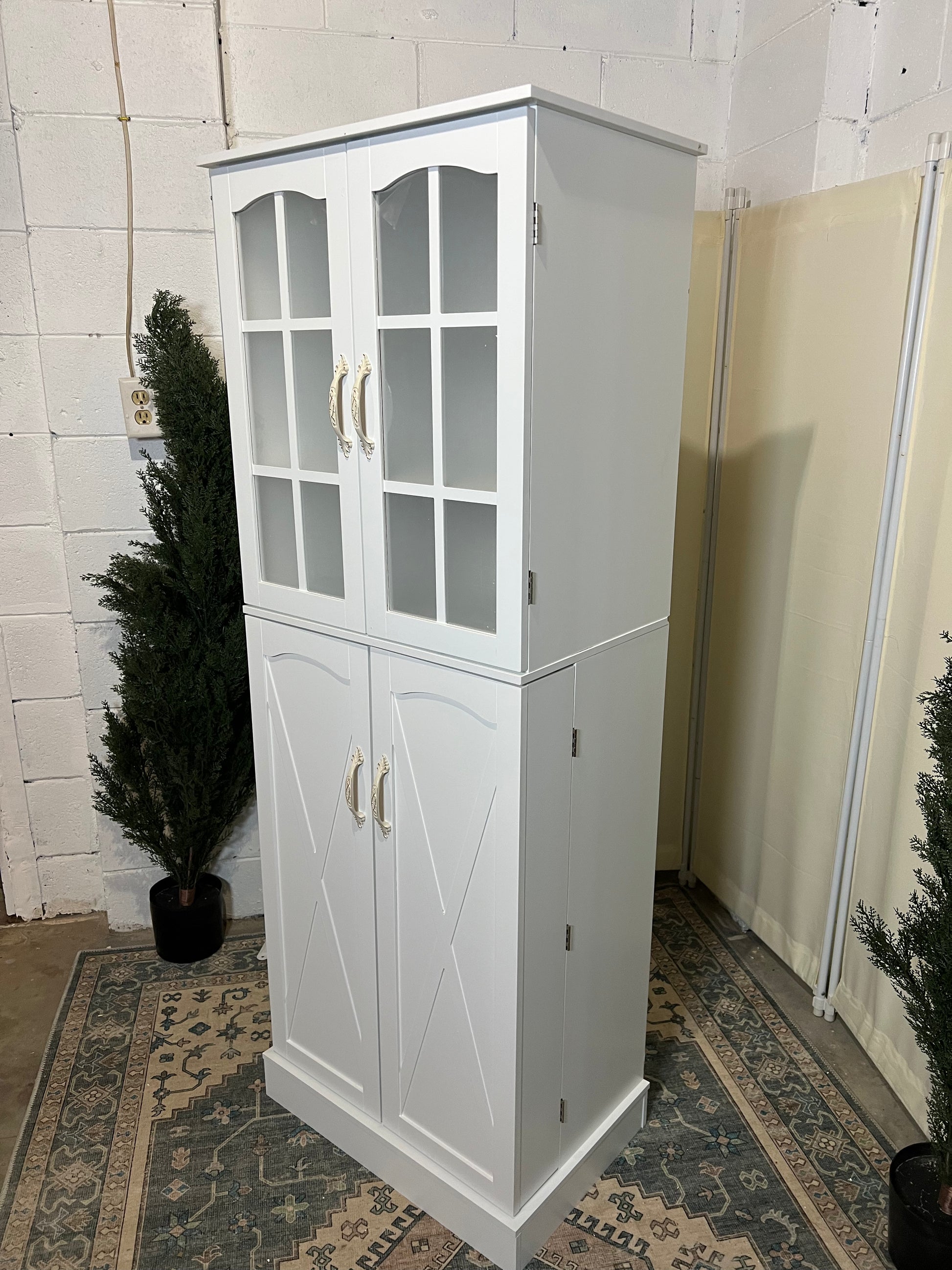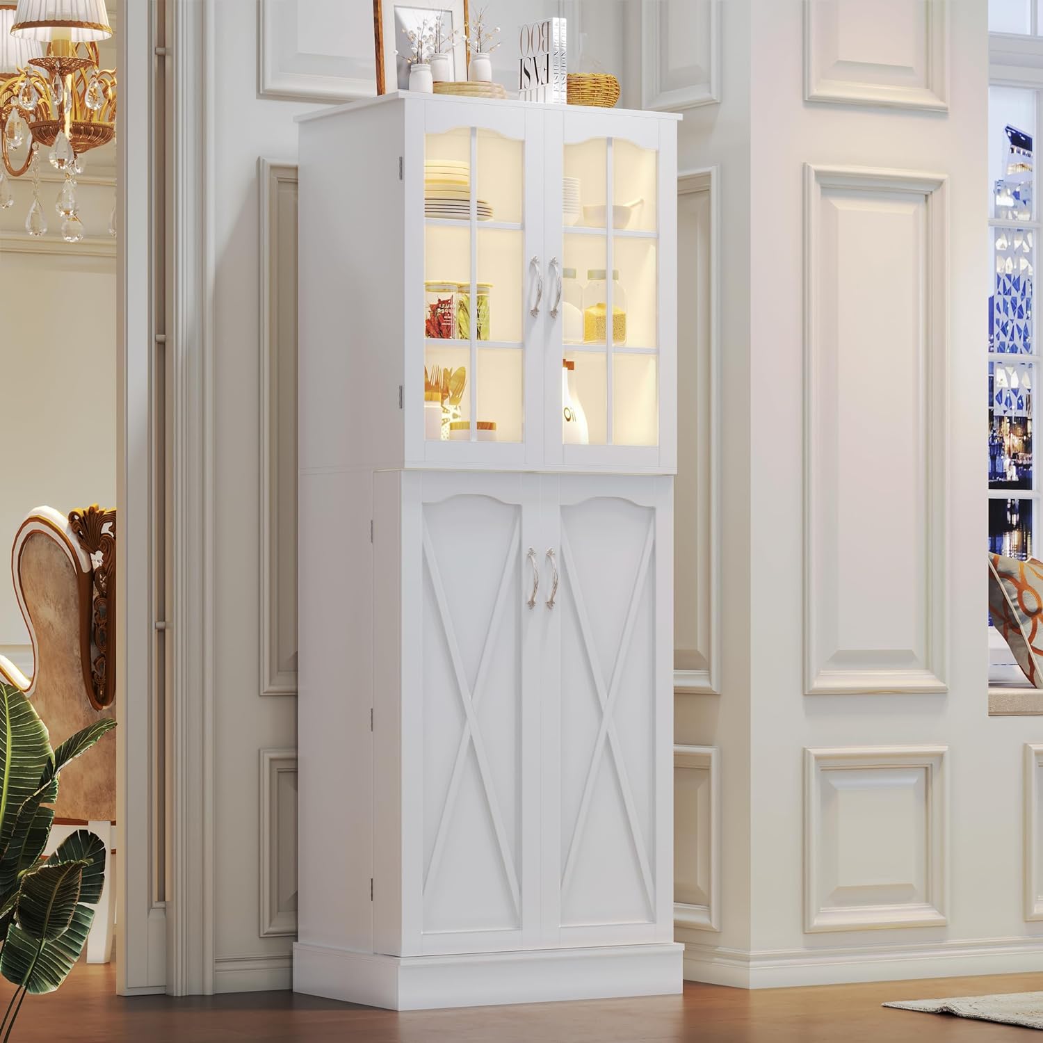 - Sturdy Construction: Farmhouse pantry cabinet is crafted from laminated fiberboard, it features a clean-lined silhouette and a neutral solid finish for a versatile addition to any ensemble.