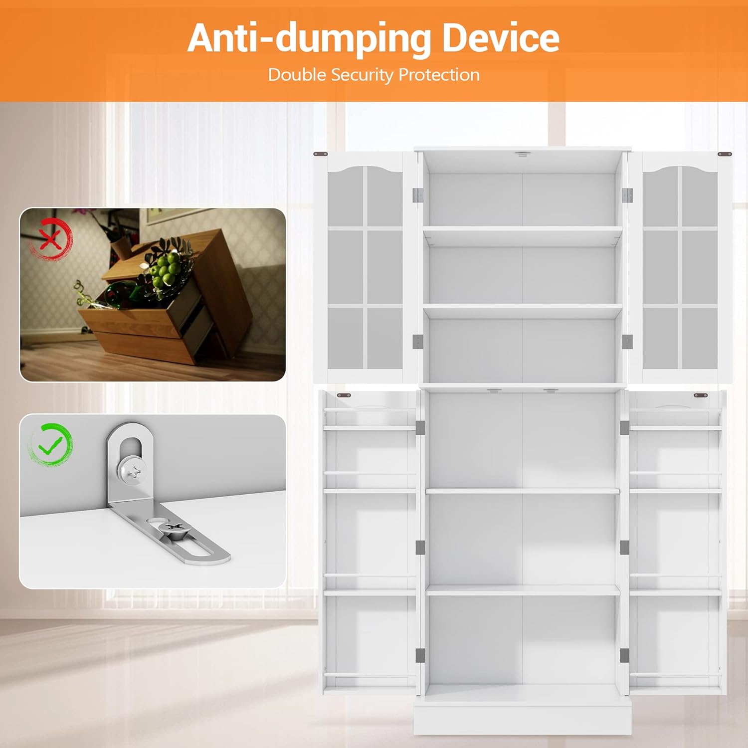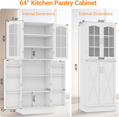 64” Kitchen Pantry Cabinets, White Freestanding Kitchen Pantry Storage Cabinet with Adjustable Shelves & Doors, Buffet Cupboards Sideboard Tall Storage Cabinet for Home Office Use