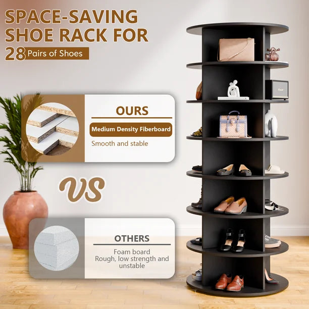 7 Tier Rotating Shoe Rack Tower, 360° Spinning Shoe Display Lazy Susan, Free Standing Shoe Organizer, Black