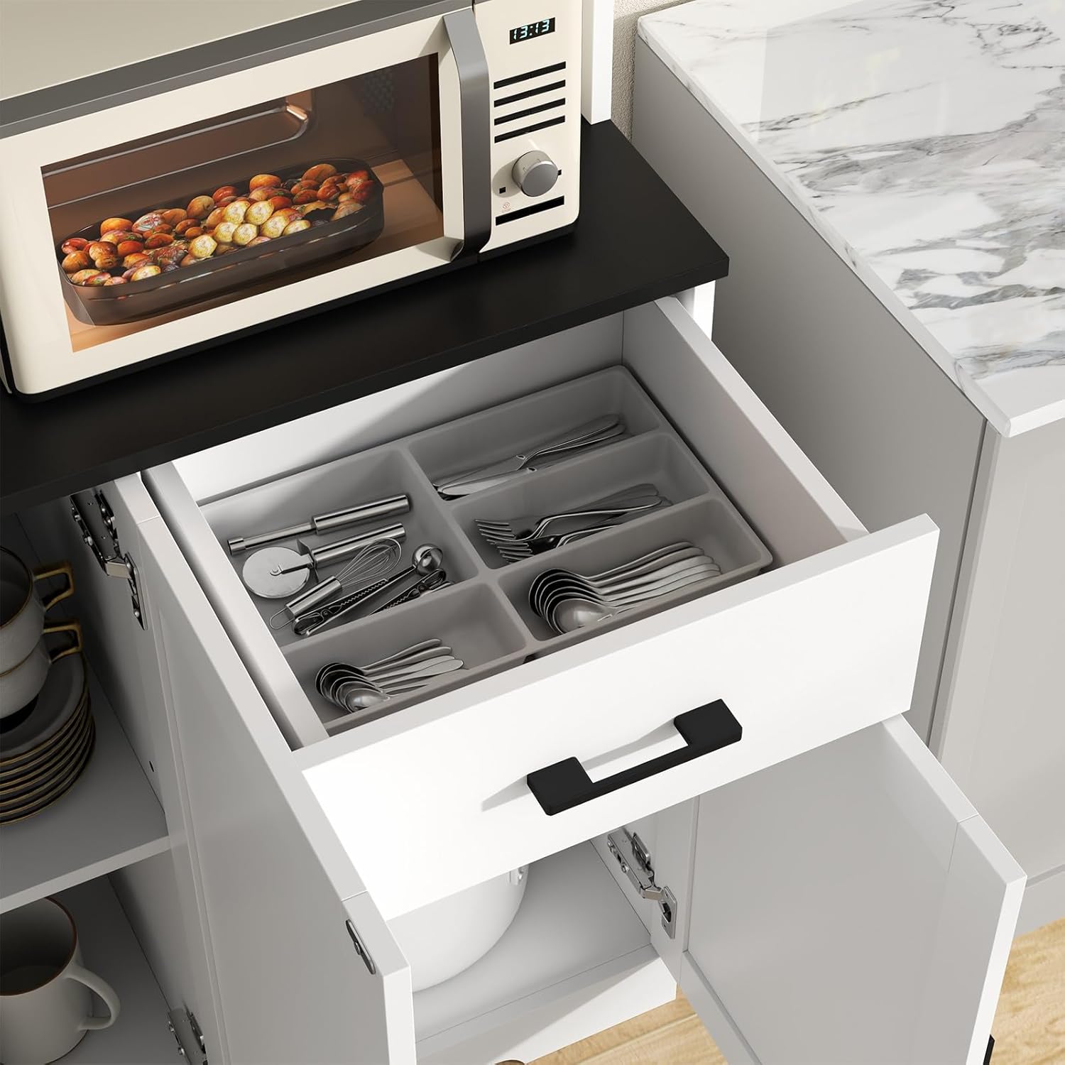 Both of Upper Cabinets Can Adjust the Shelves for More Larger Size Items
