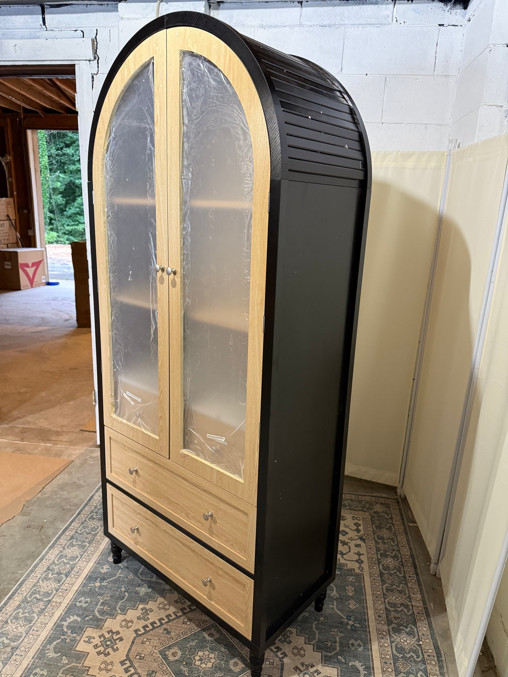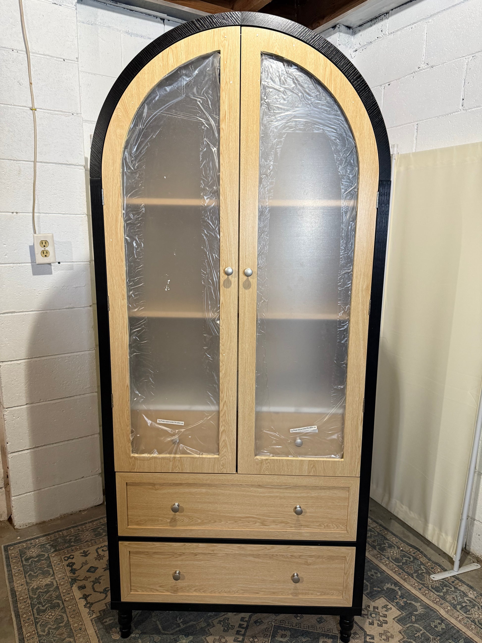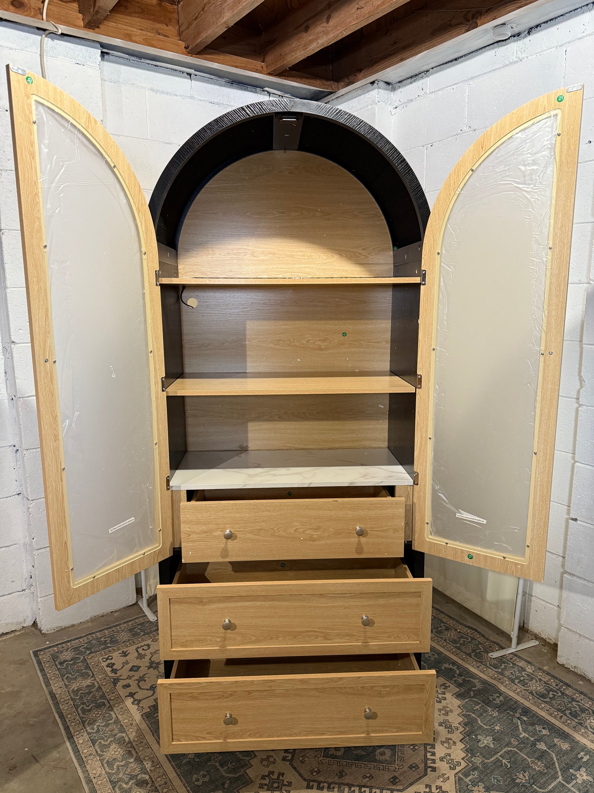 73 Inch Tall Arched Cabinet with Doors, Arched Storage Cabinet, Black-Oak Kitchen Pantry, LED Lighted Display Case, Boho Arch Bookshelf for Kitchen Dining Room Living Room, Black