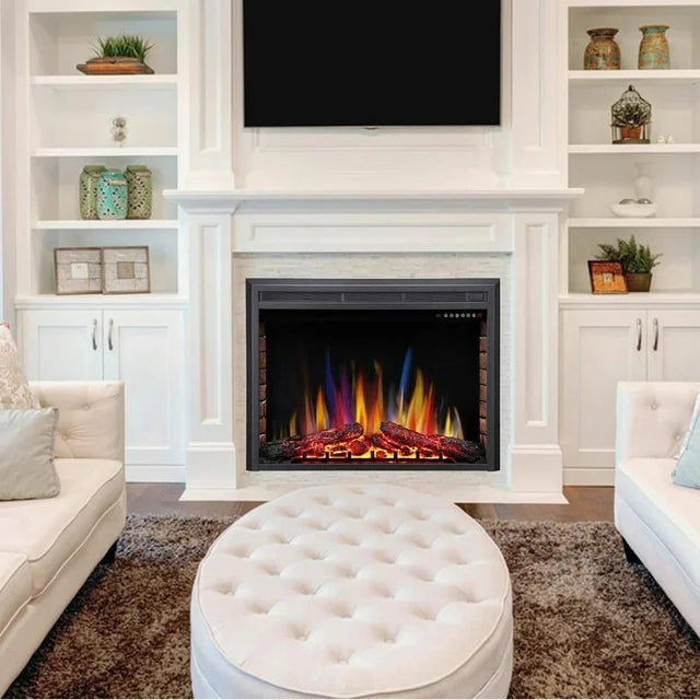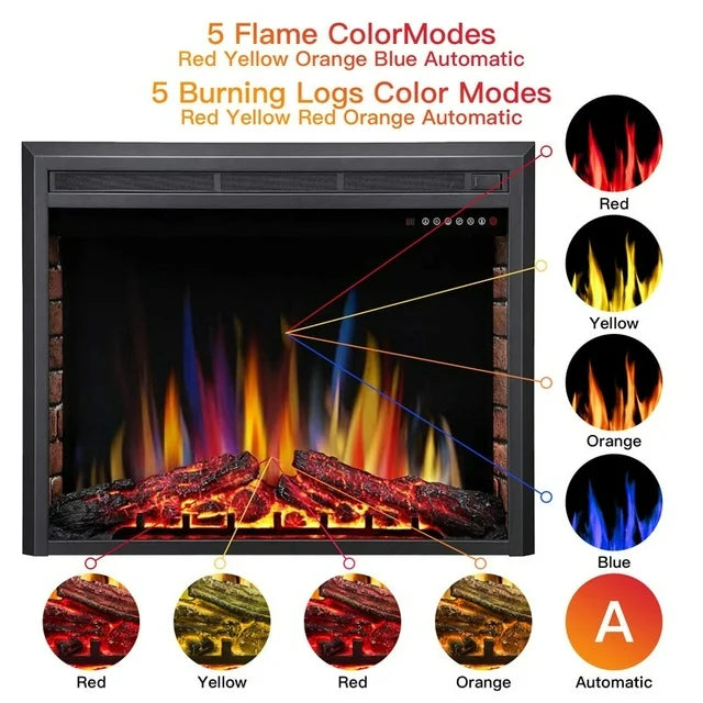 A-36" Electric Fireplace Insert ,Recessed Electric Stove Heater,Touch Screen,Remote Control,750W-1500W with Timer & Colorful Flame Option(36" X 27")