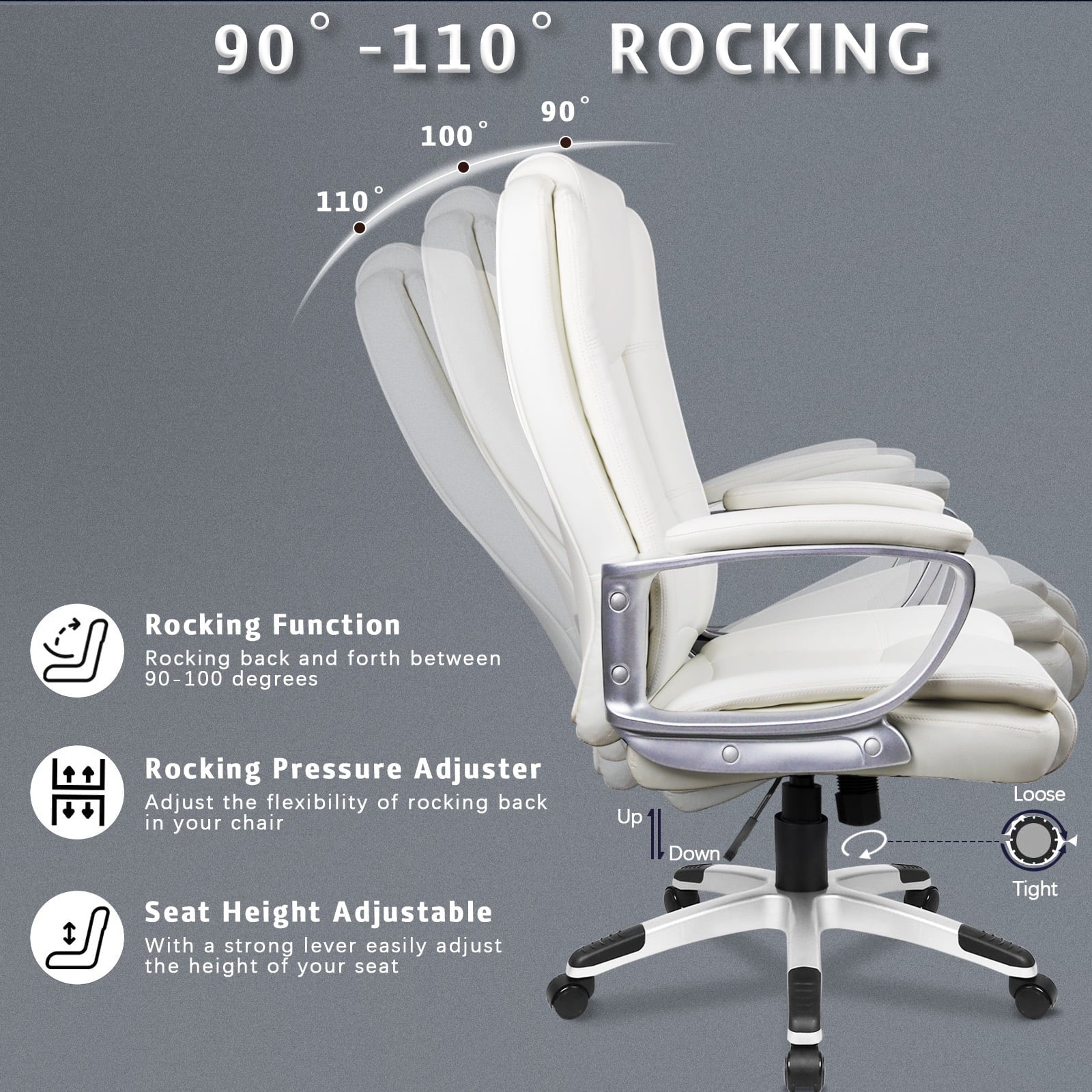 - ✨【Adjustable Height With Armrest】- This Chair has a Heavy duty nylon wheelbase, 4 inches height adjustable and 360° rolling wheels on our home office chair are flexible and suitable for your office environment. Backrest can be rocking up to 110°, SAFE AND COMFORT, are ready for your office rest, perfect for home, office and boss desk!