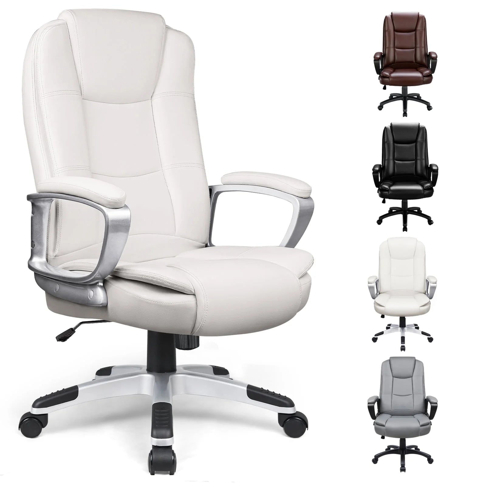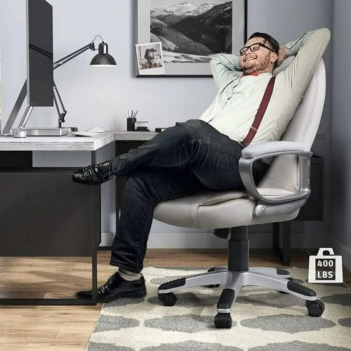 - ✨【Safety Leather Executive Chair】- Leather office chair cradles your body with soft leather and a double padded foam seat cushion, 400 pound weight capacity, padded armrest for an upscale look and max comfort you can sink into it,this executive chair will improve your work efficiency, work and rest go together.