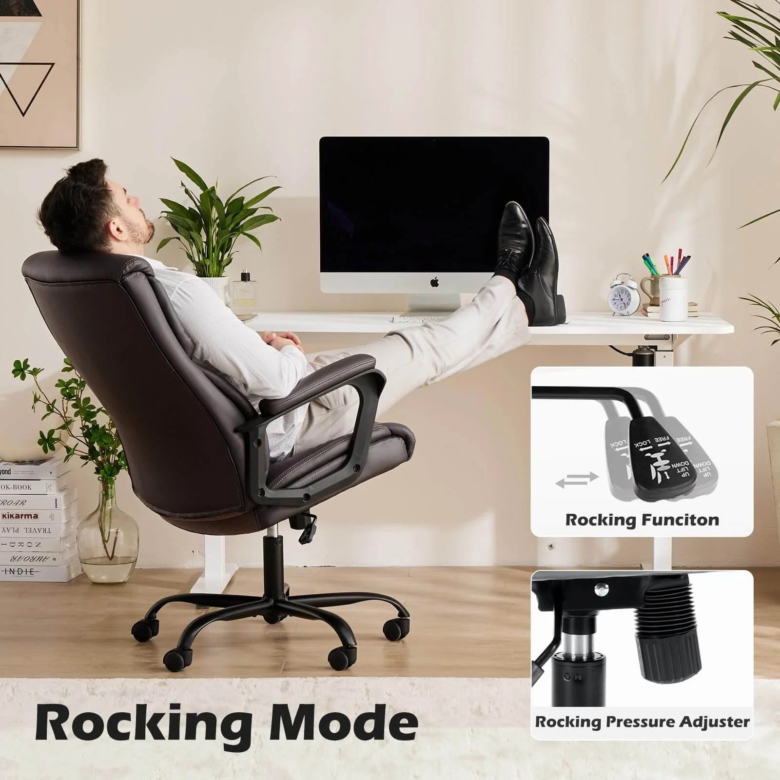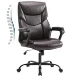 Big and Tall Office Chair Desk Chair 275lbs Wide Seat with Non-Adjustable Armrest and Lumbar Support PU Leather High Back Executive Task Ergonomic Computer Chair for Back Pain,Brown