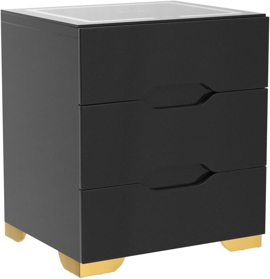 Made of good MDF board, this nightstand with drawer has an elegant smooth high gloss finish with graceful flowing lines that exude a sophisticated elegance that adds glamour and beauty to your home decor. The tempered glass tabletop is not only noble, but also has the characteristics of high temperature resistance, waterproof and wear resistance.