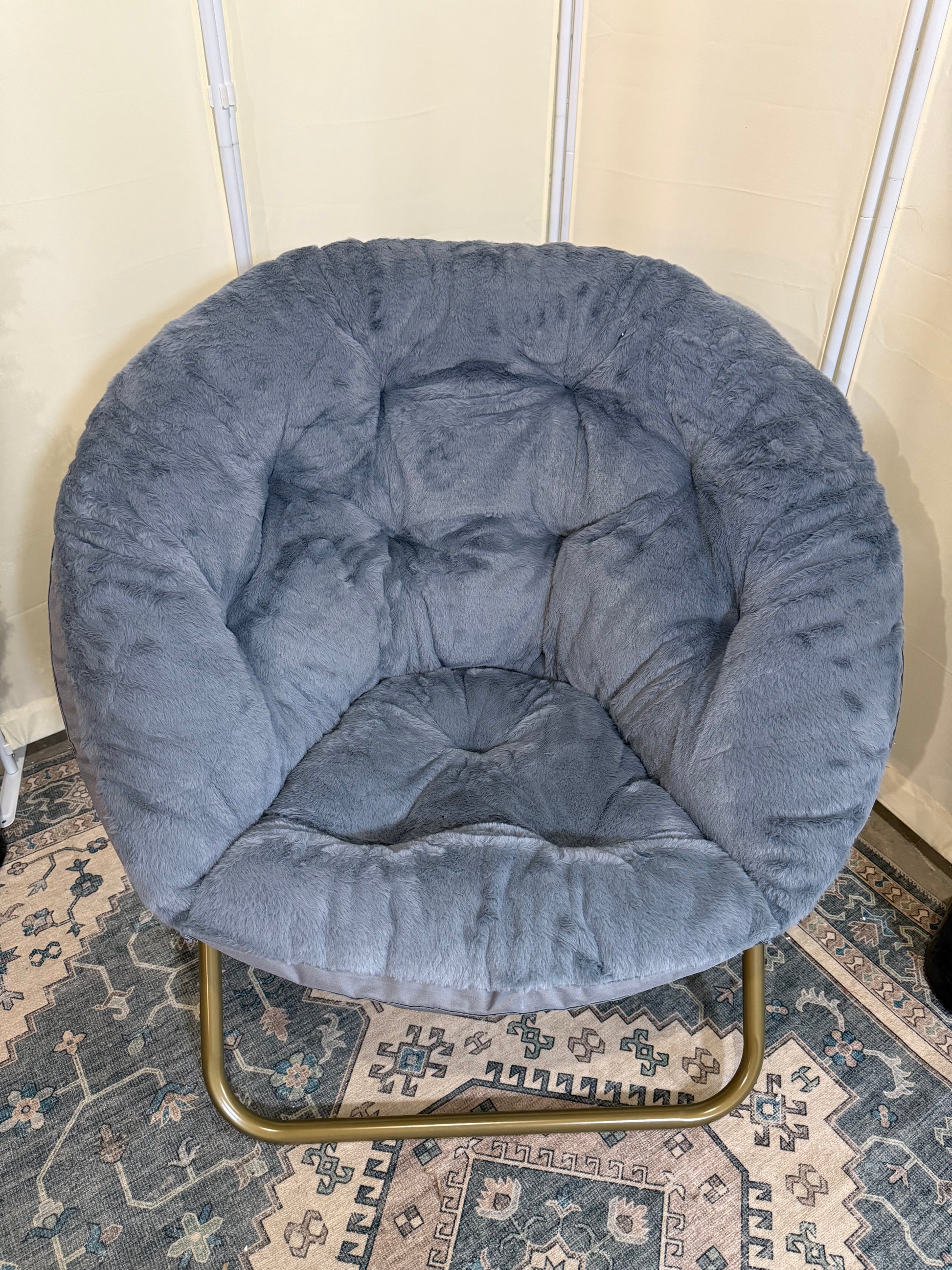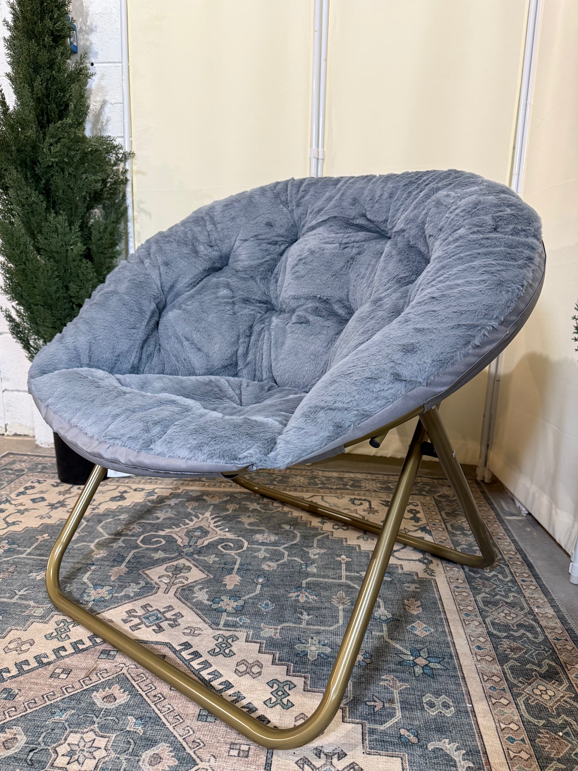 Comfy Saucer Chairs for Adults, Cozy Folding Round Lounge Chair for Dorm Rooms Bedroom Living Room, Sofa Lazy Moon Reading Chair for Teens Kids, Gray