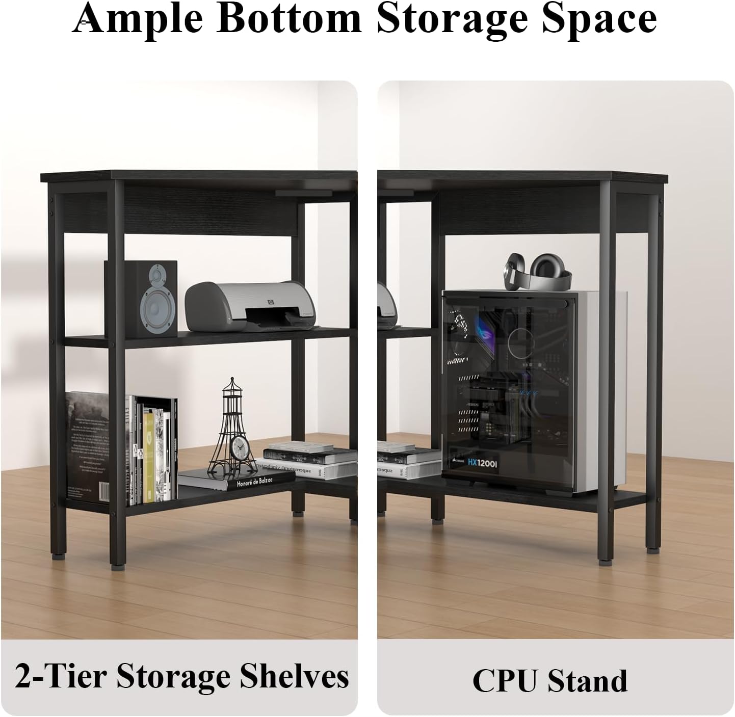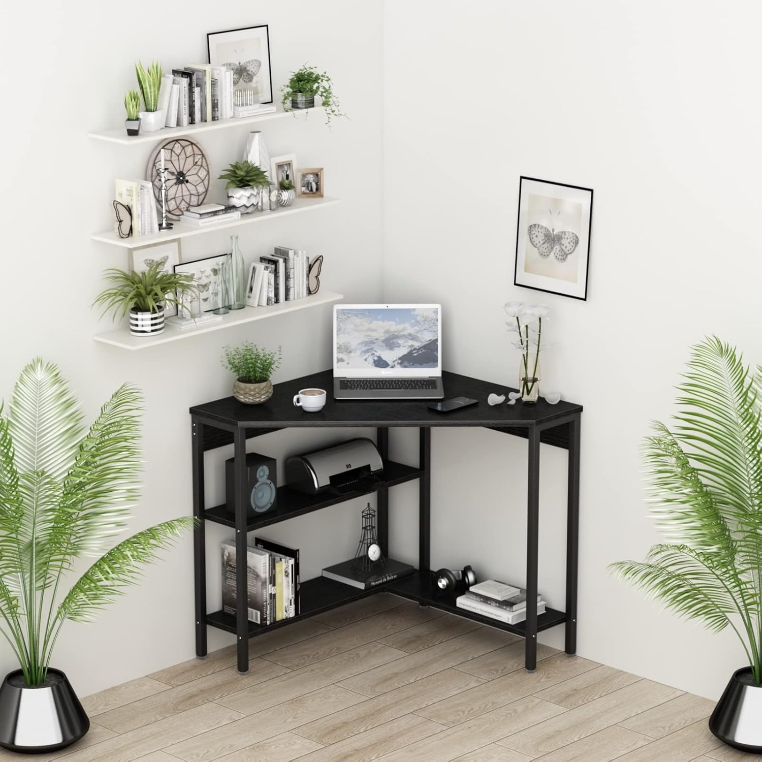 This corner desk has 3 open shelves that provide plenty of extra storage space.