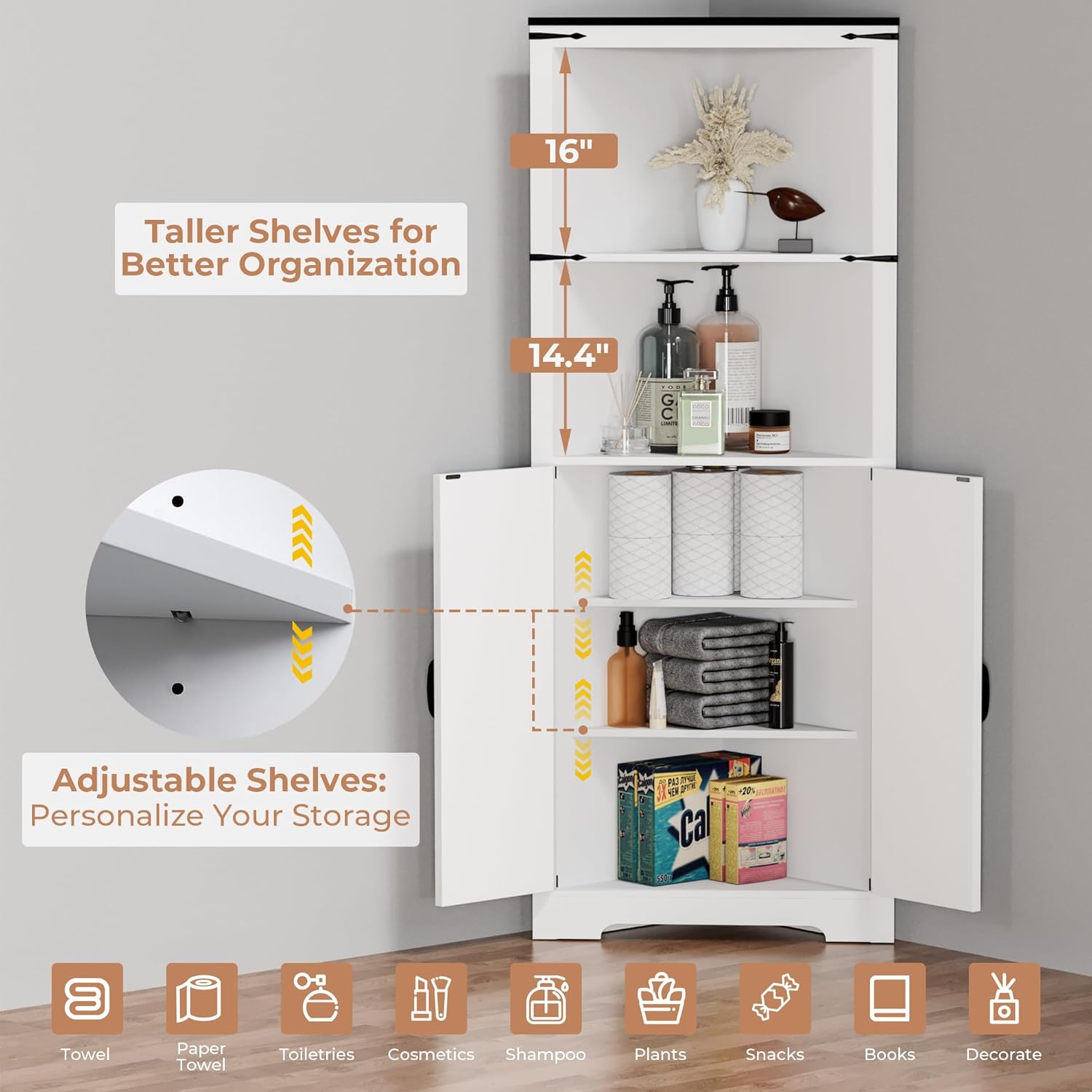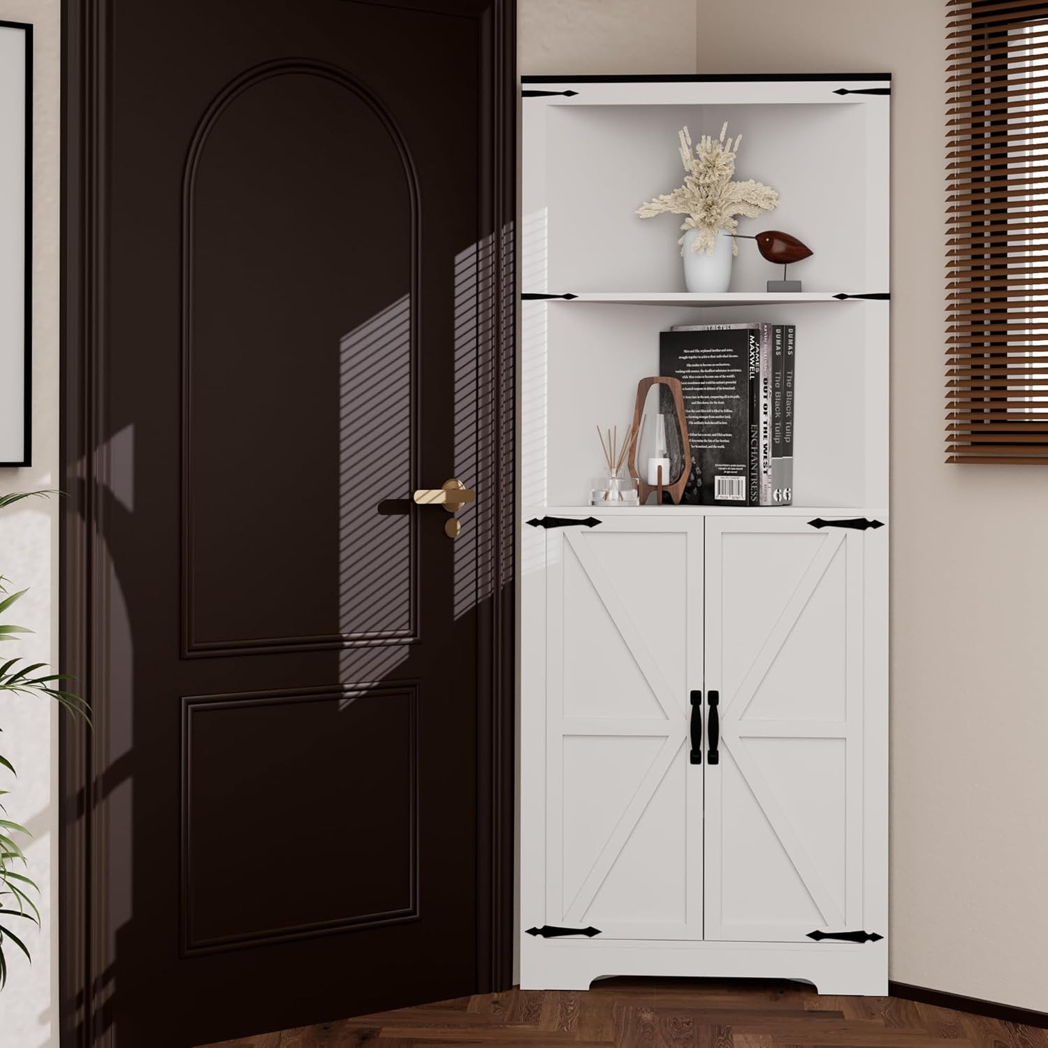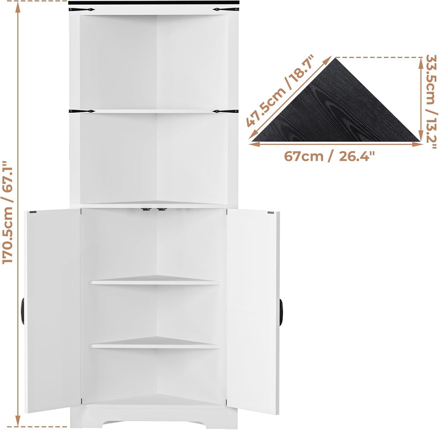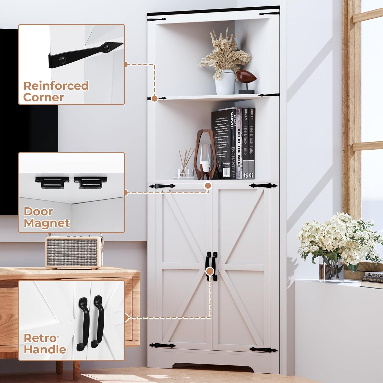 Corner Storage Cabinet 67 Tall, Freestanding Linen Cabinet with 1 Drawer and 4 Doors, Adjustable Shelves for Kitchen, Living Room - Farmhouse Style