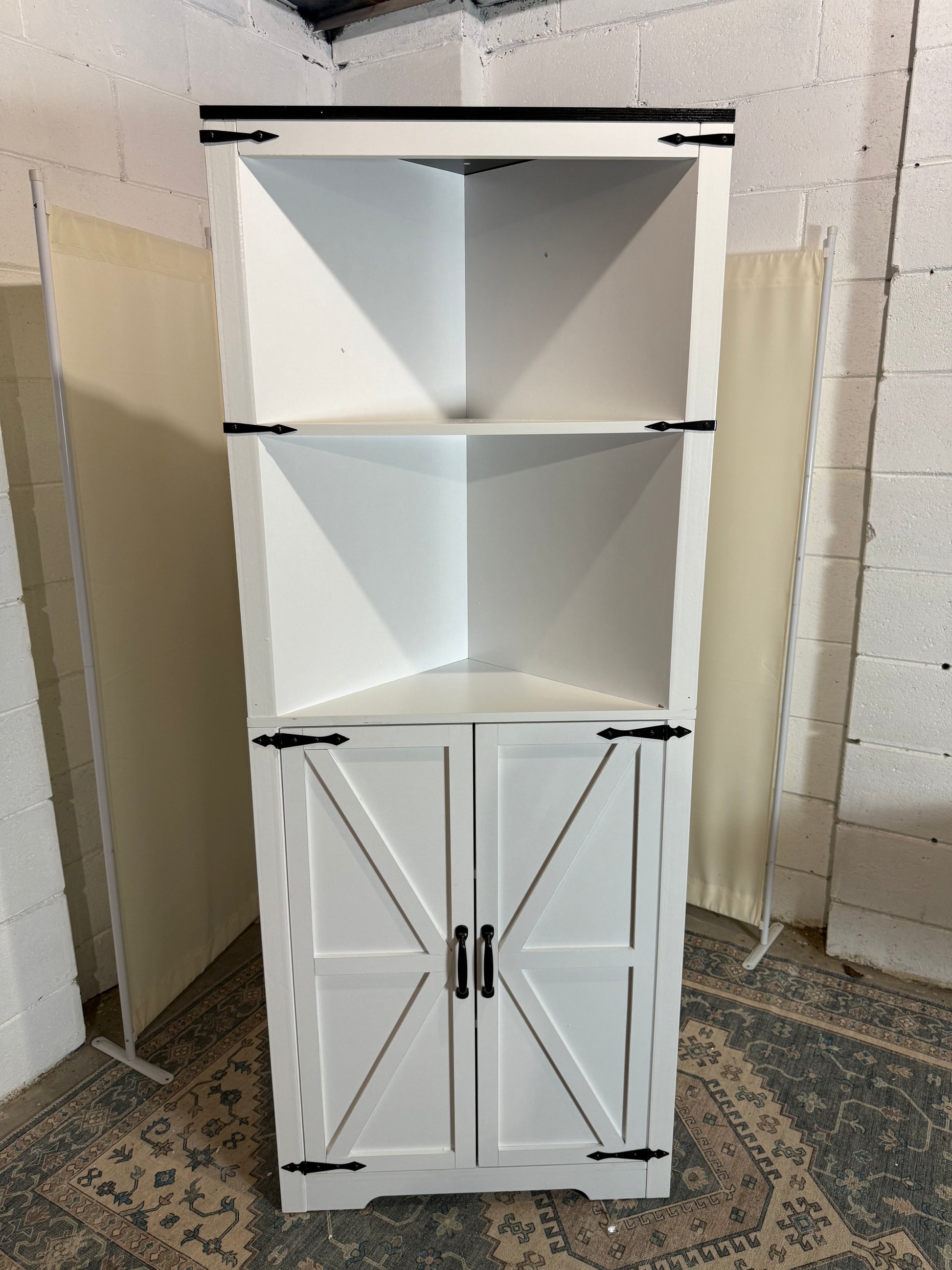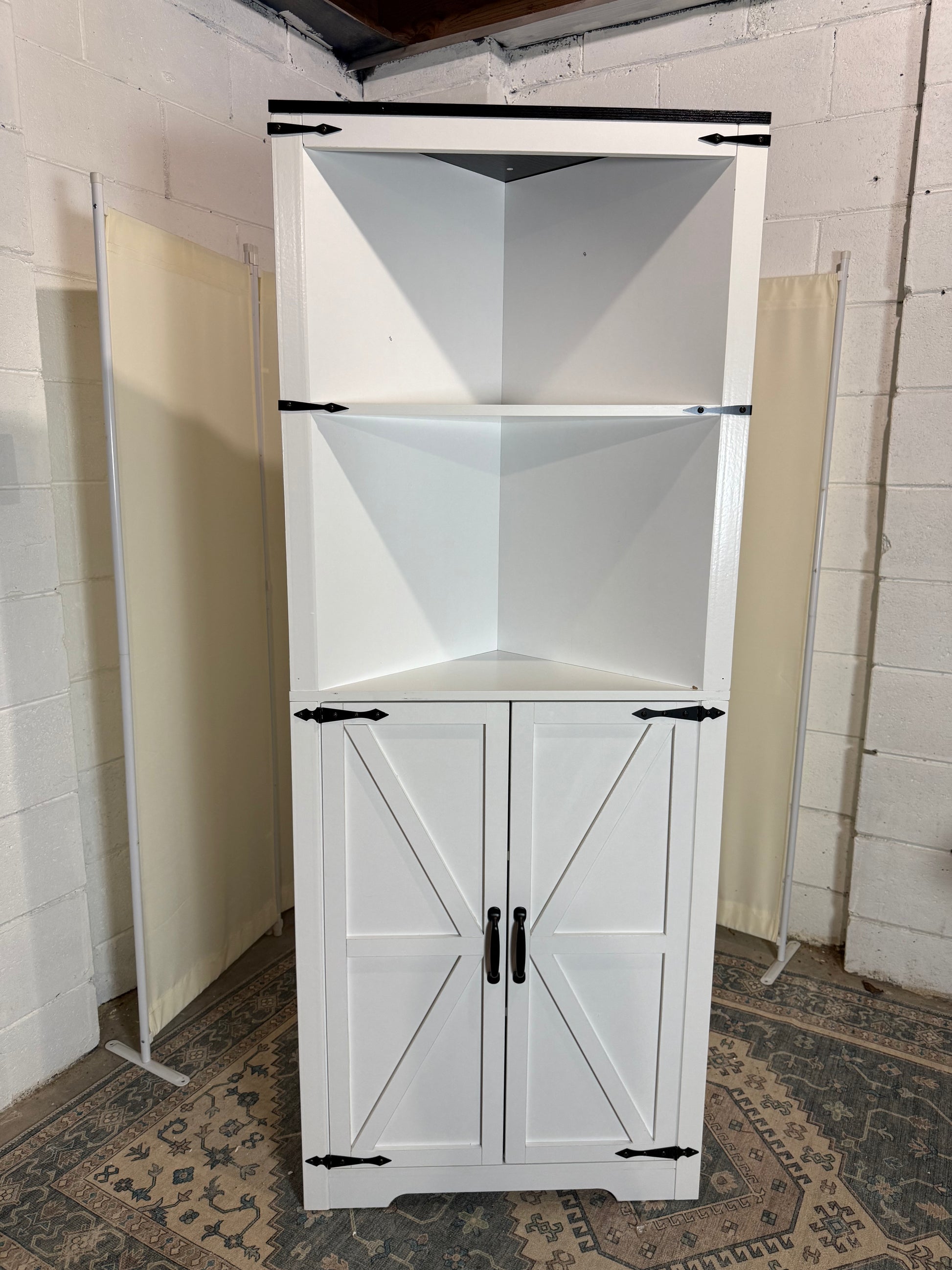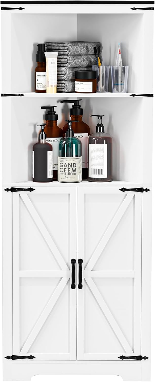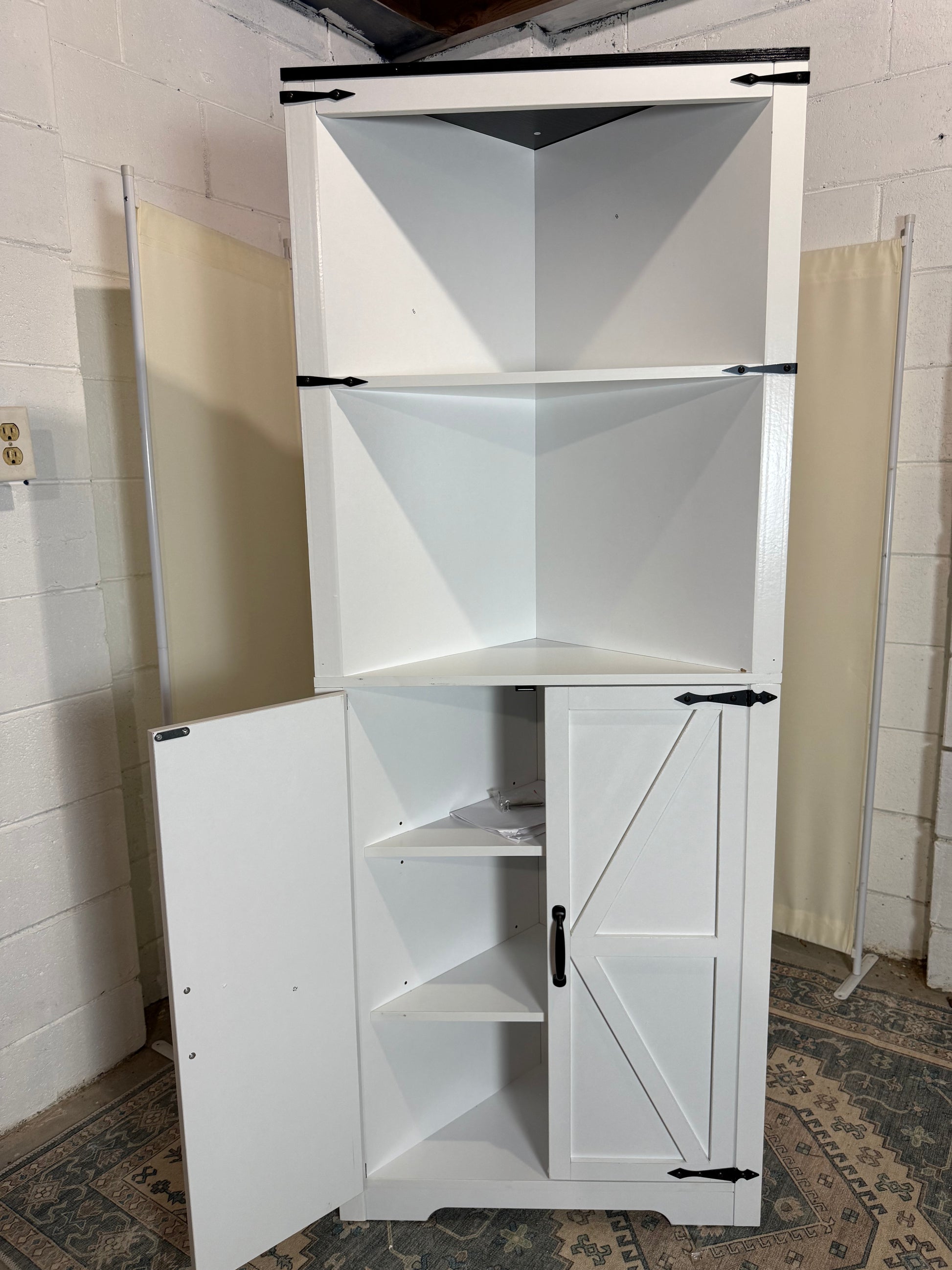 Corner Storage Cabinet 67 Tall, Freestanding Linen Cabinet with 1 Drawer and 4 Doors, Adjustable Shelves for Kitchen, Living Room - Farmhouse Style
