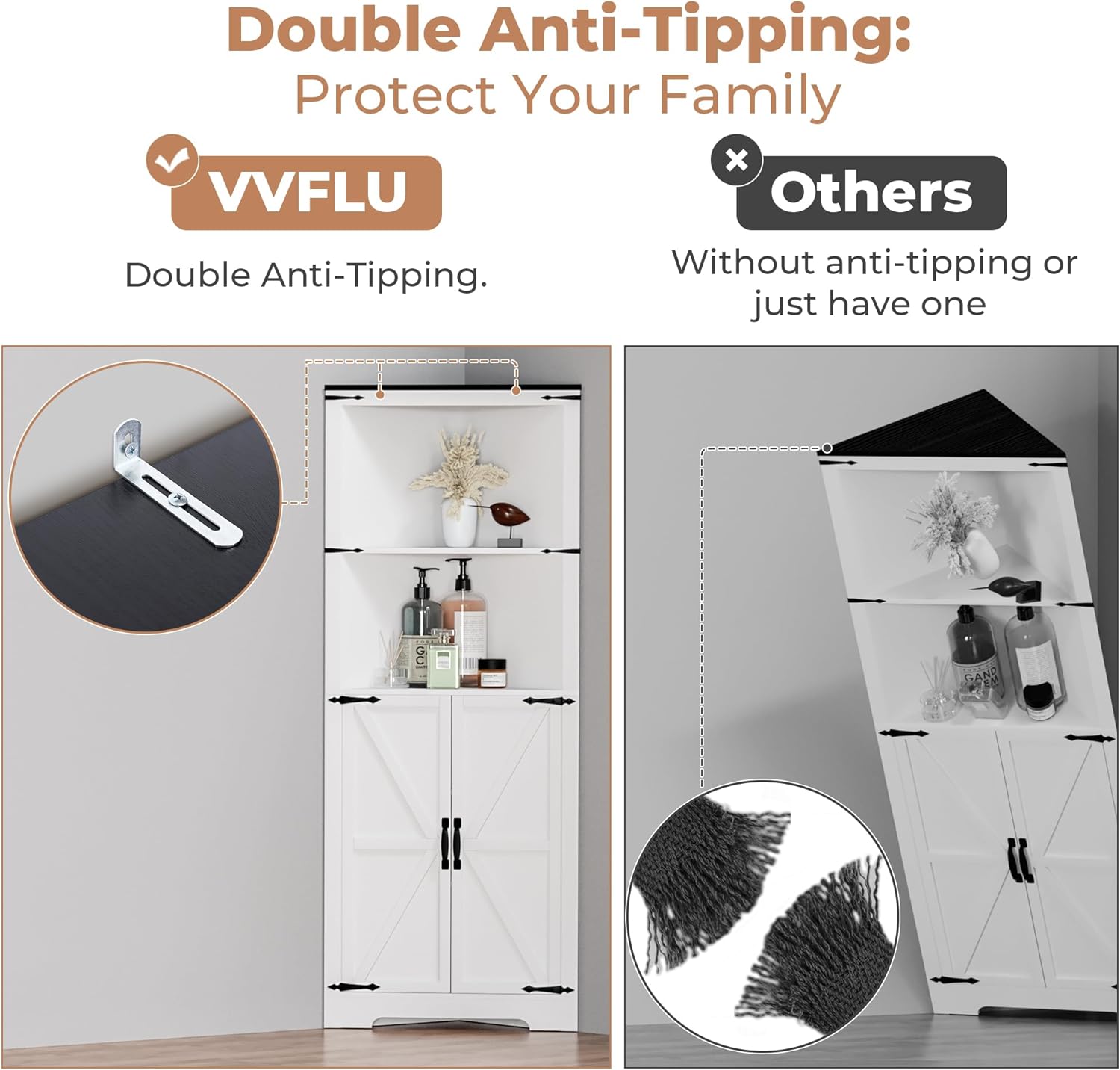 【Safety Features】Designed with double anti-tipping measures, this bathroom cabinet is securely anchored to the wall to prevent accidents. Your family’s safety is our top priority, and you can trust that this cabinet will stay in place.
