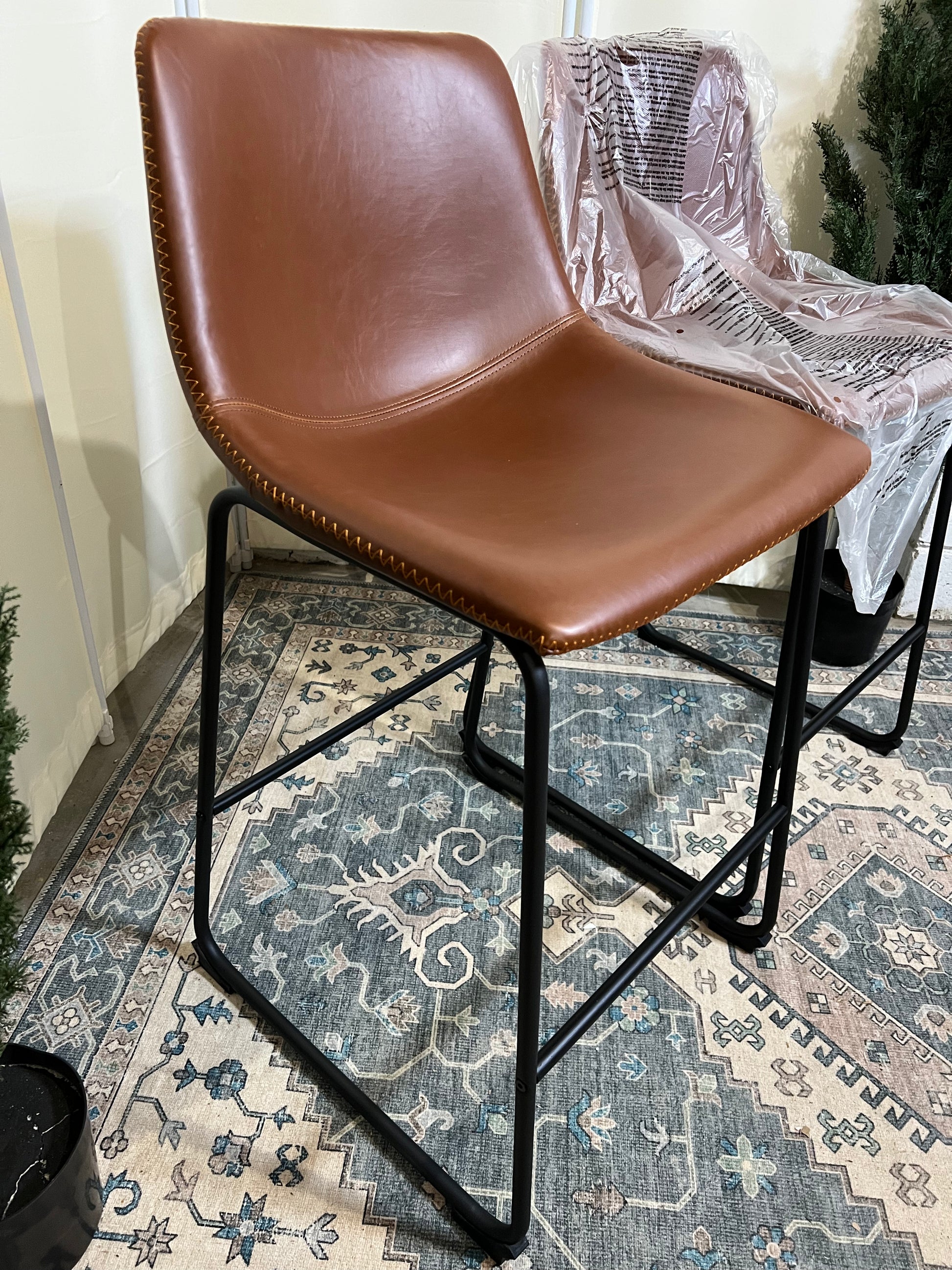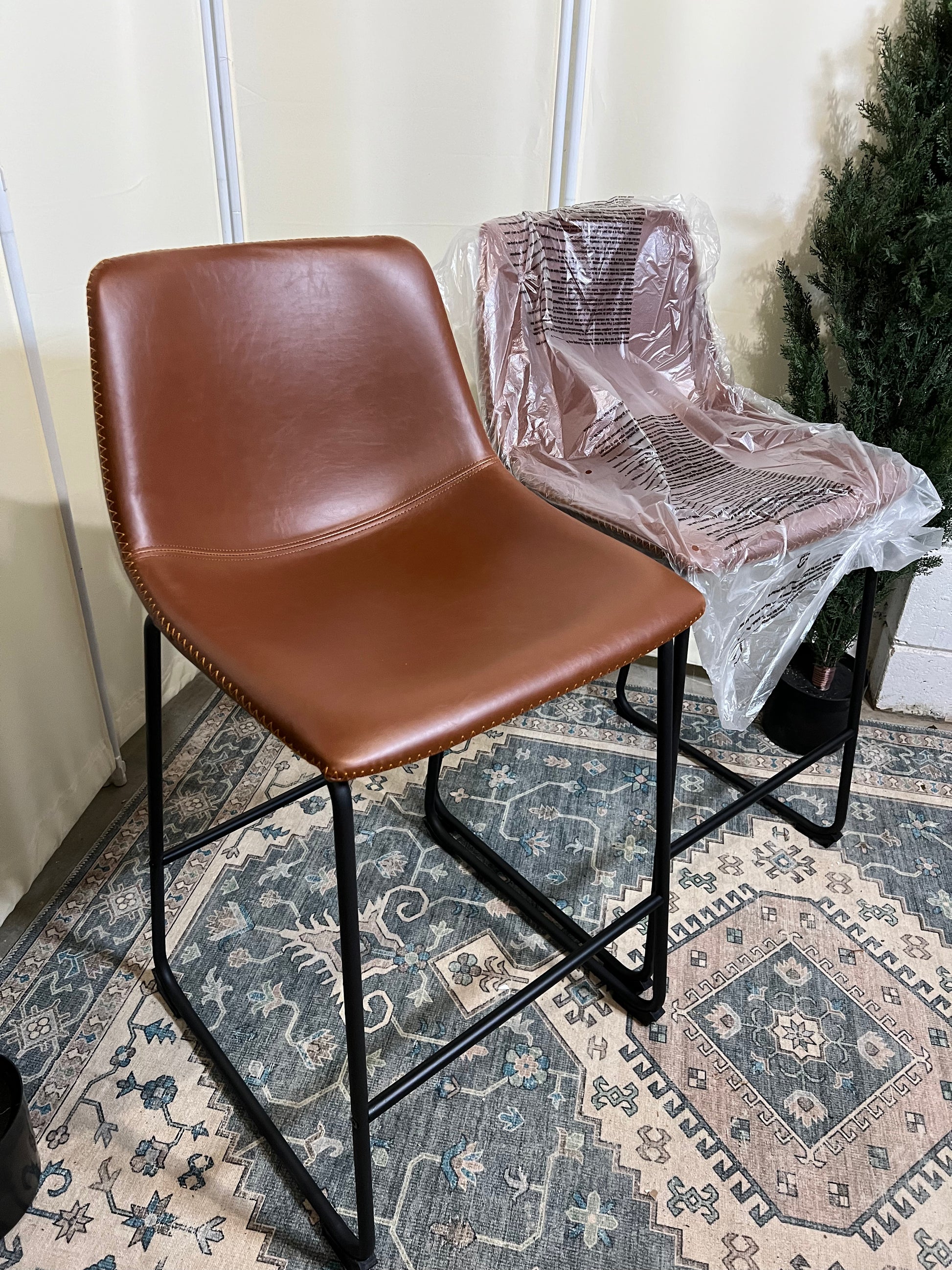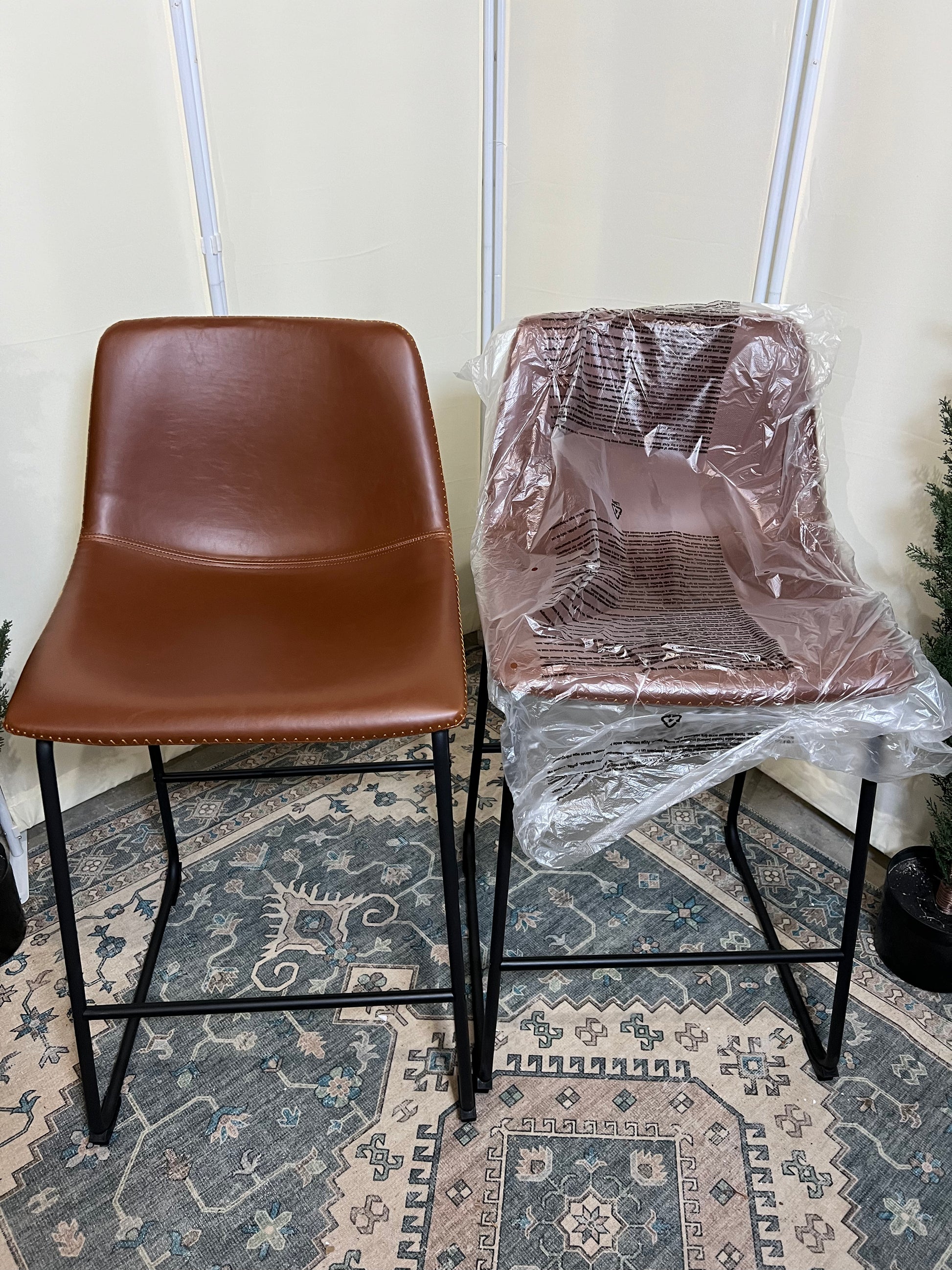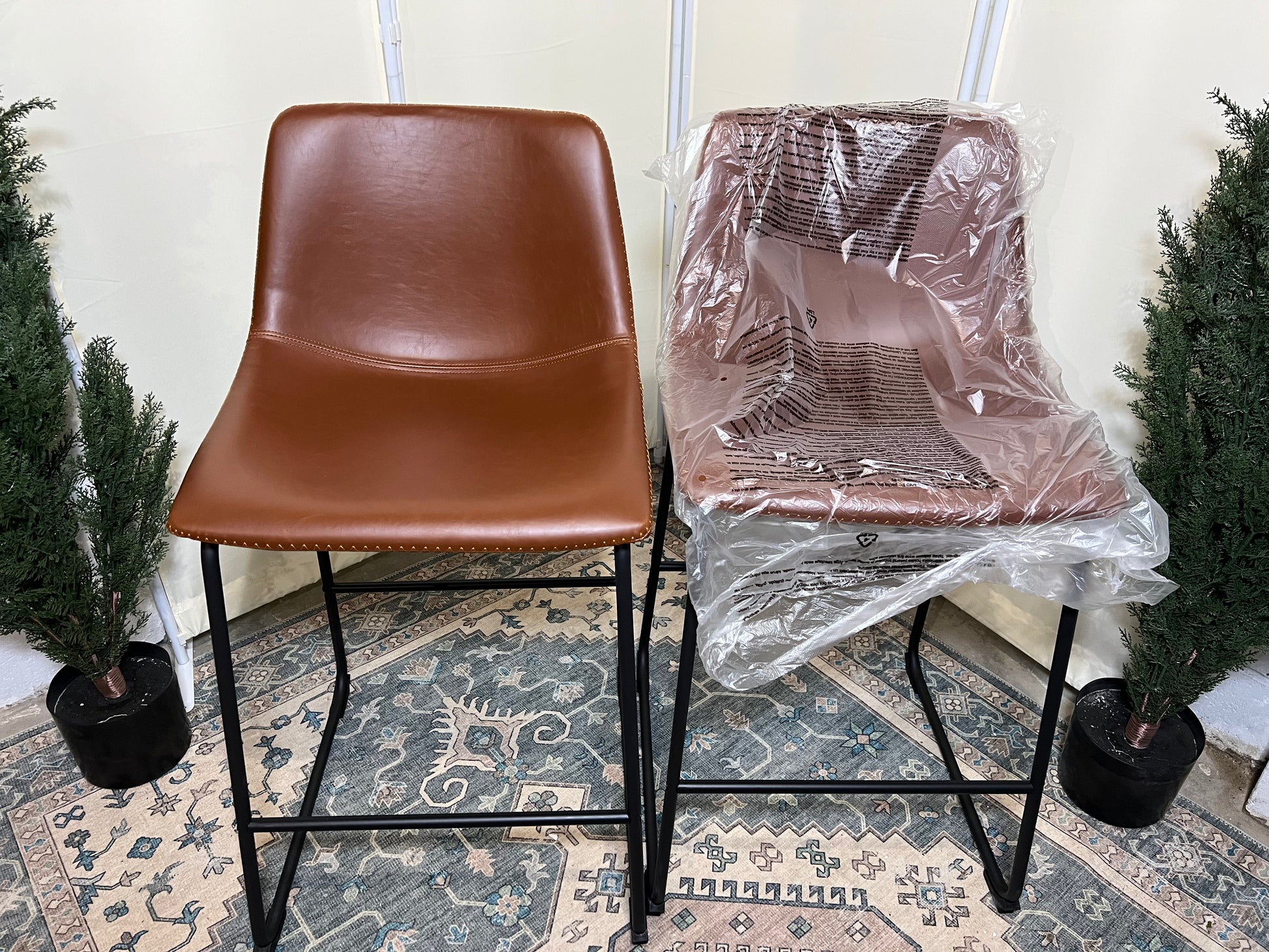 Counter Height Bar Stools Set of 2, Modern Counter Stool Faux Leather Barstools with Back, 26 inch Seat Height Island Stools Countertop Comfortable Brown Bar Chairs with Metal Legs