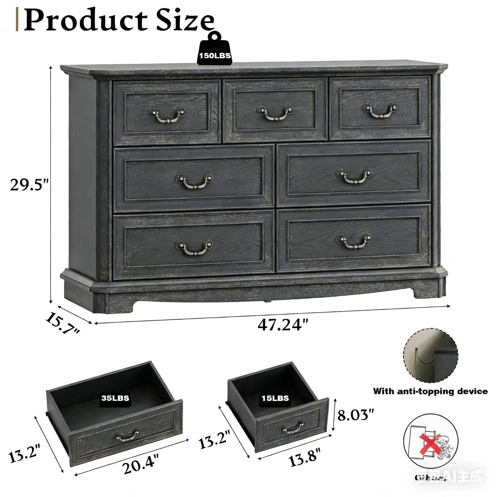 [Ample Storage Capacity] This dresser for closet comes with 7/8 deep drawers, offering plenty of room to neatly organize your clothes, bedding, cosmetics, or jewelry. It helps you keep your items in order and makes storage a breeze. - [Versatile Usage] This isn't just a wooden dresser for the bedroom. It can also serve as a console table or TV stand in your living room. Additionally, this chest of drawers bedroom dresser can be used as a nightstand or side table. This storage cabinet fits well in multiple spaces like the living room, bedroom, hallway, entryway, and even the closet. Ideal for small spaces such as apartments or dorm rooms.