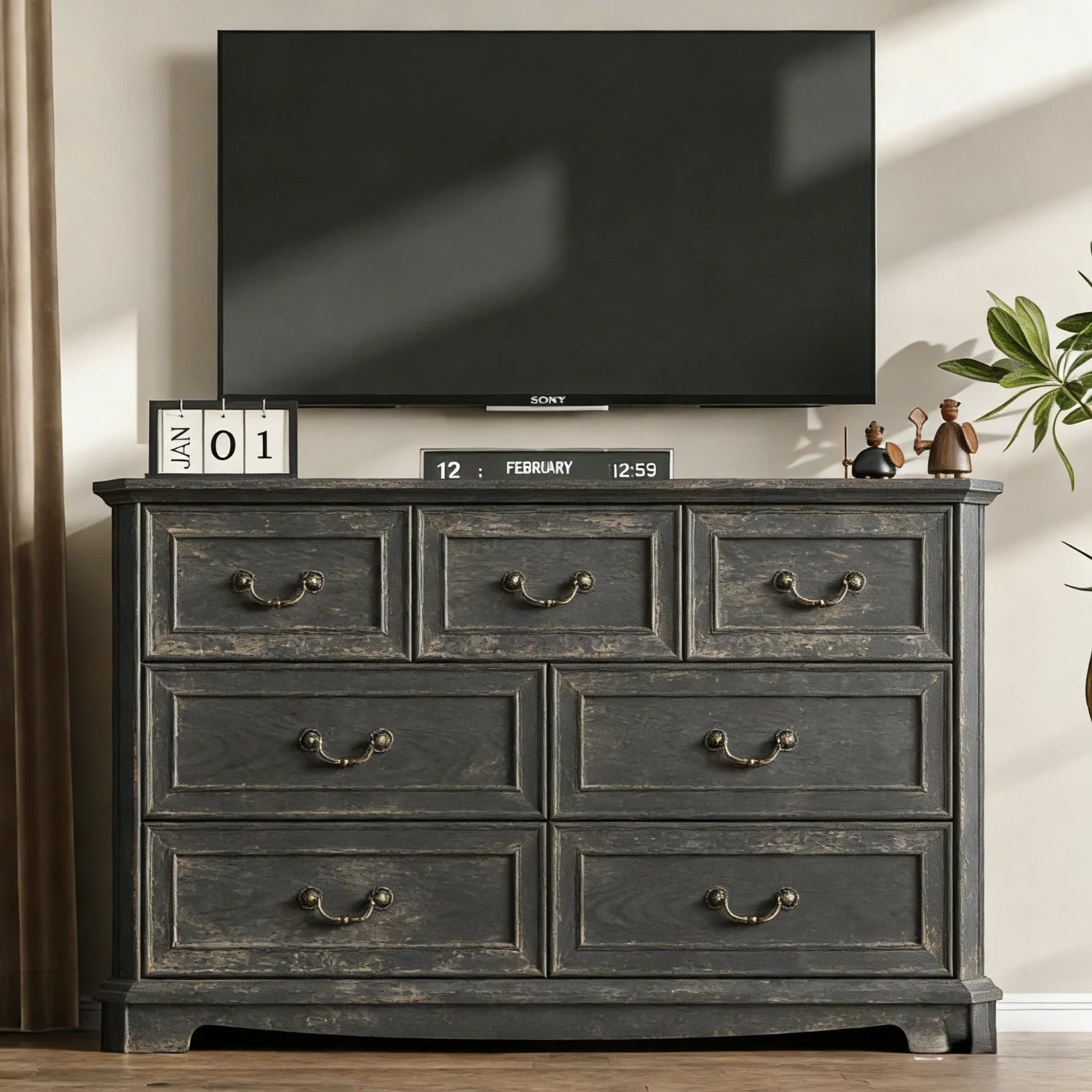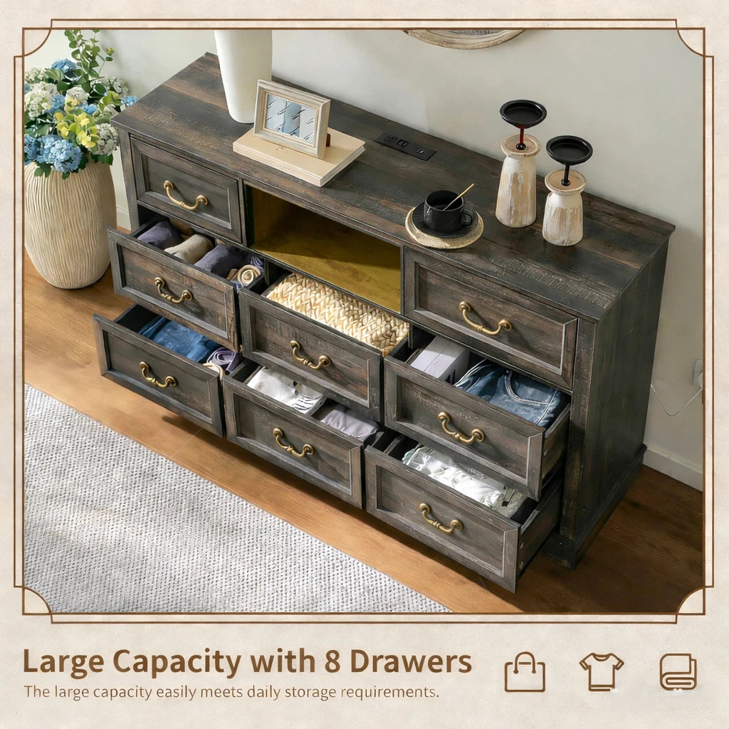 Farmhouse 7/8-Drawer Dresser, Vintage Rustic Wood Chest with Natural Texture