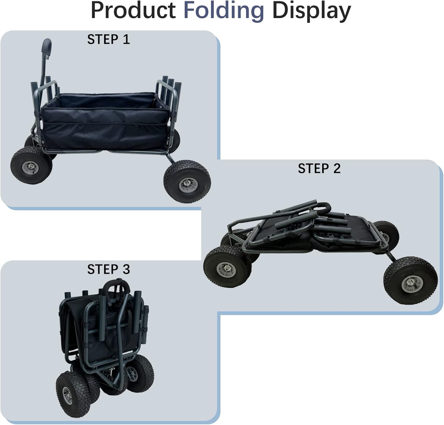 Fishing Cart Beach Carts Heavy Duty Foldable Collapsible Wagon with Big Wheels and Rod Holders 550 Pound Capacity 53.9"x26.4"x38.8"