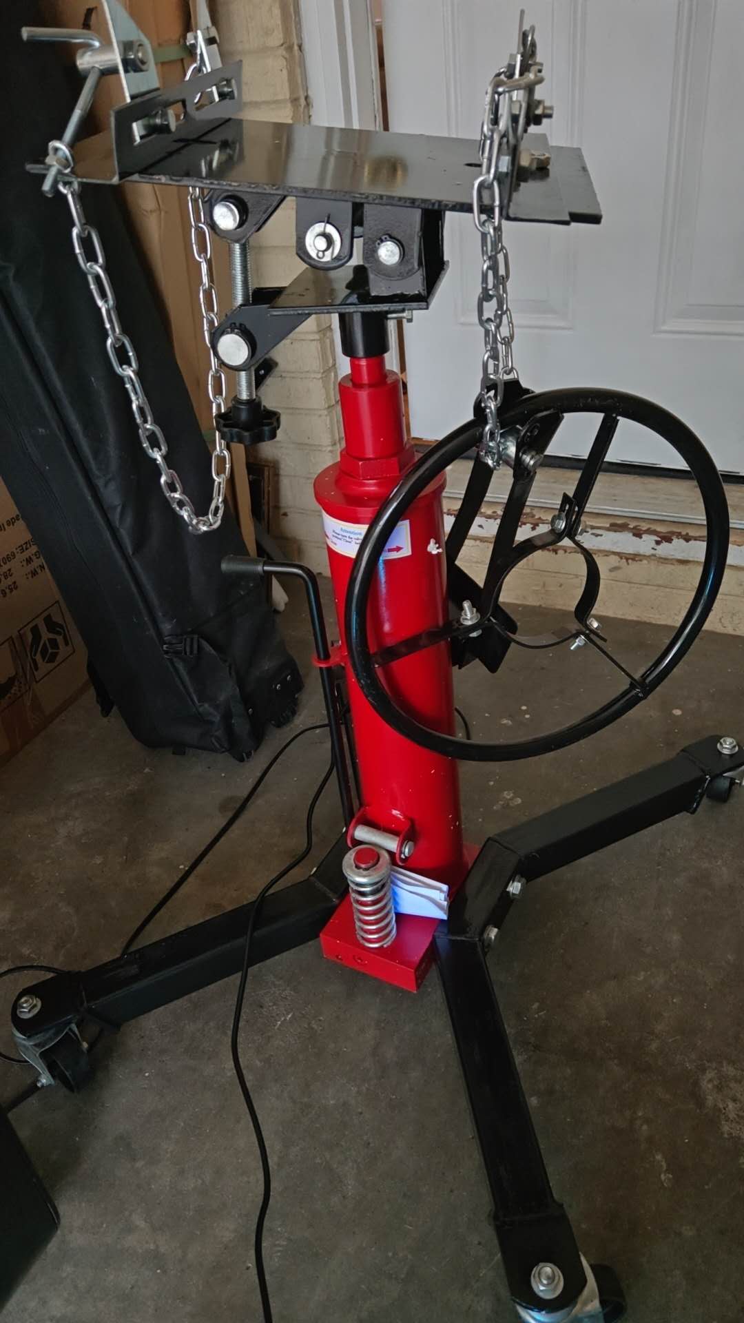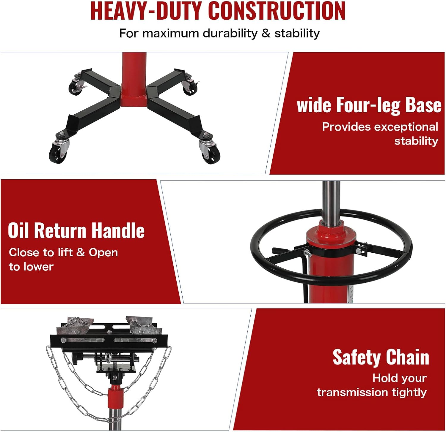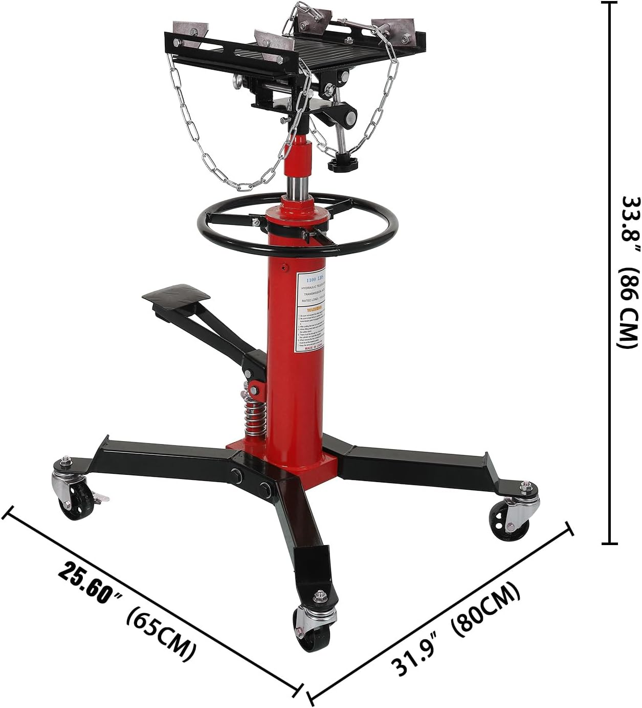 Hydraulic Transmission Jack 1100 Lbs (1/2 Ton) Capacity 33.8"-72.8" Lifting Height 2 Stage Hydraulic Telescoping Jack, Trans Jack Stand Heavy Duty with Foot Pedal and 360° Swivel Wheel, Red