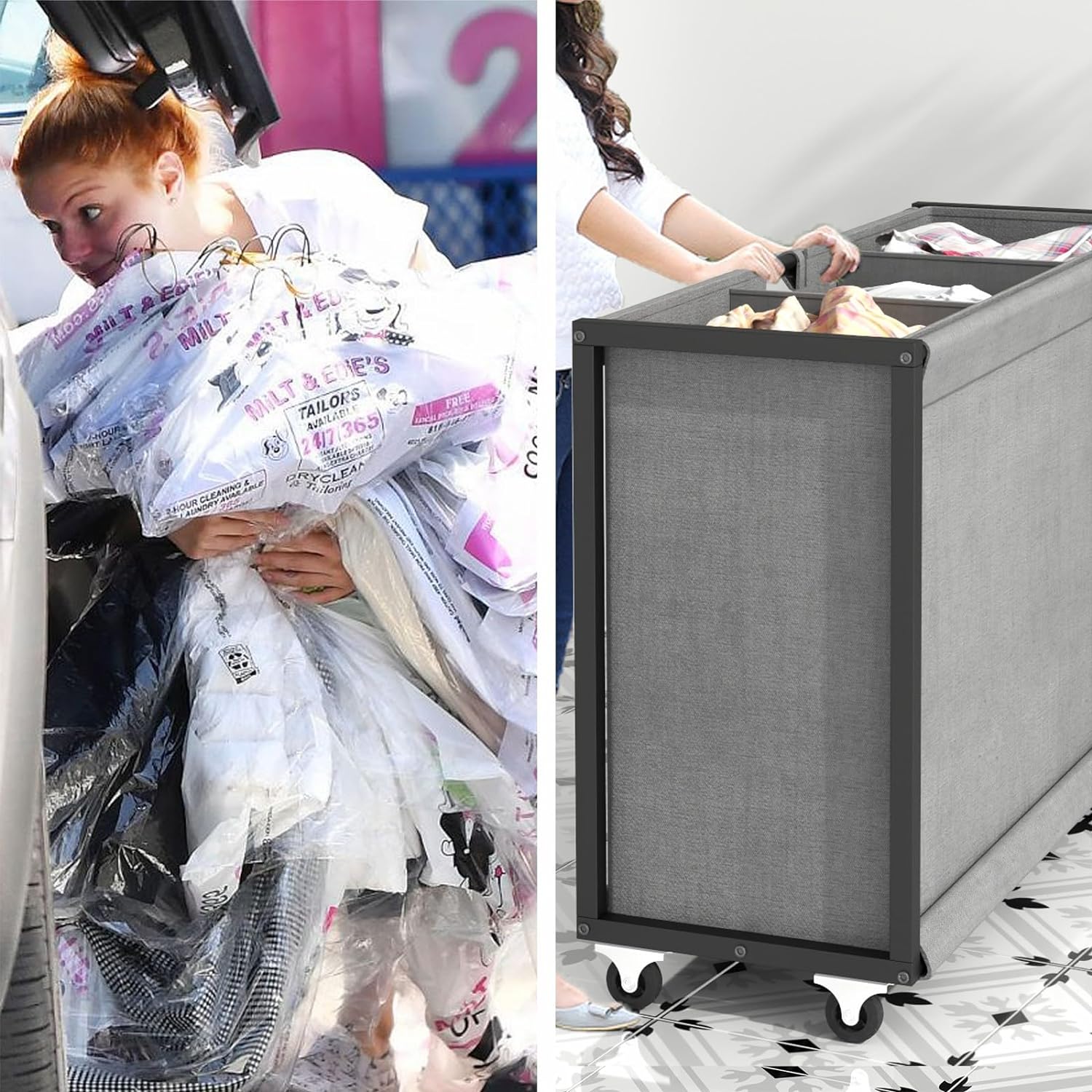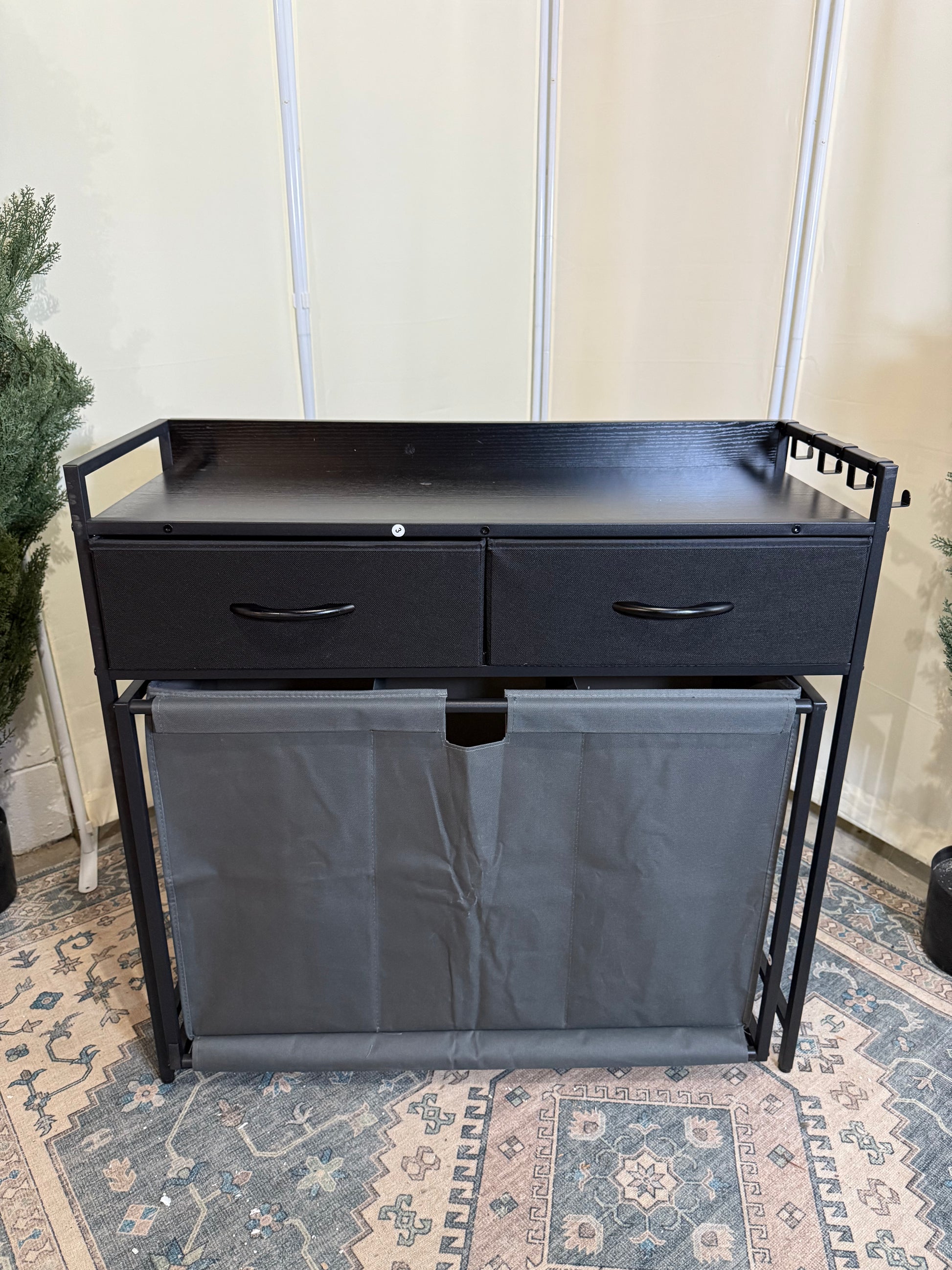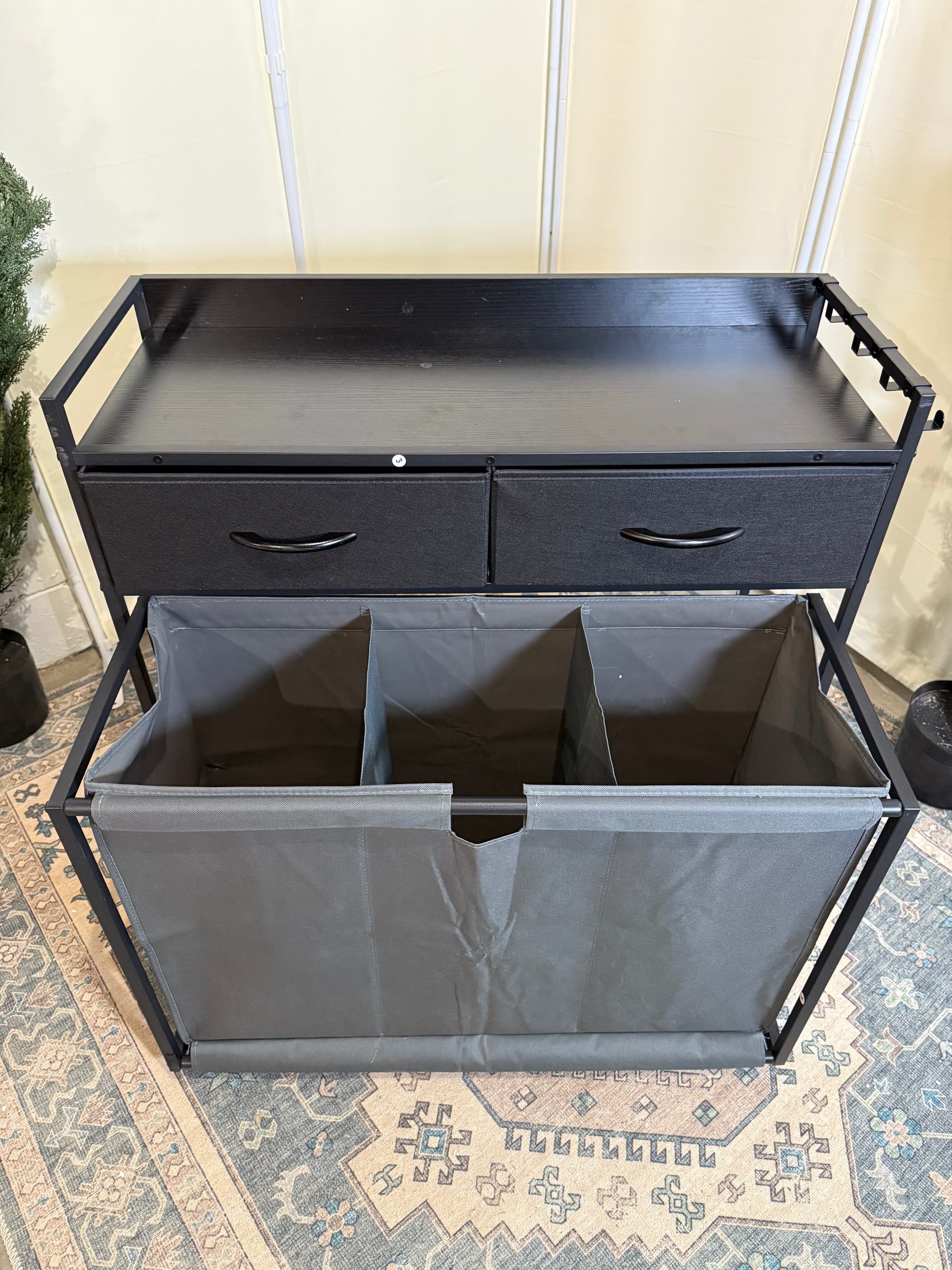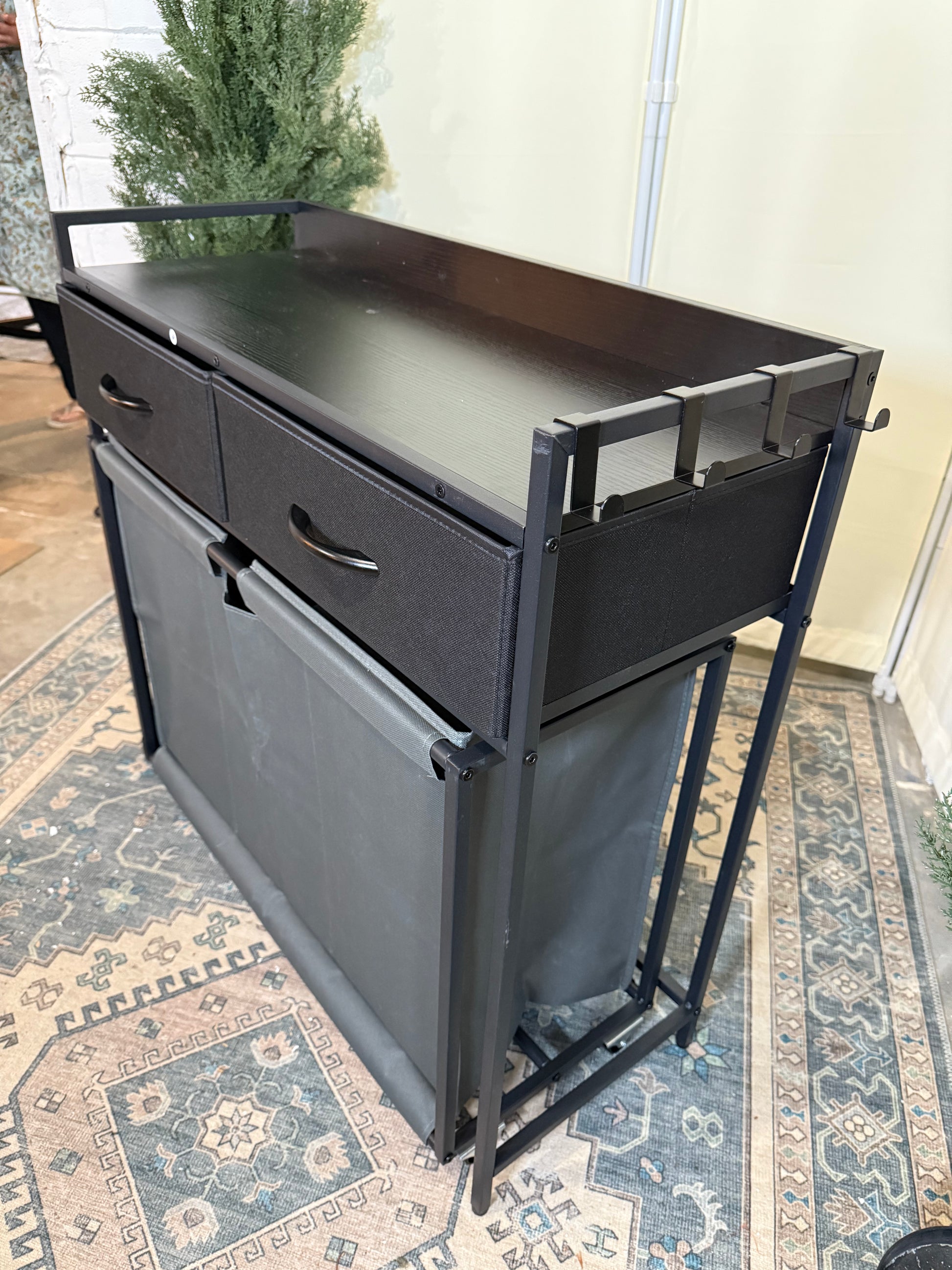 The Laundry Hamper from STIKELY Consists of a Console table and a 3 Section Laundry Basket