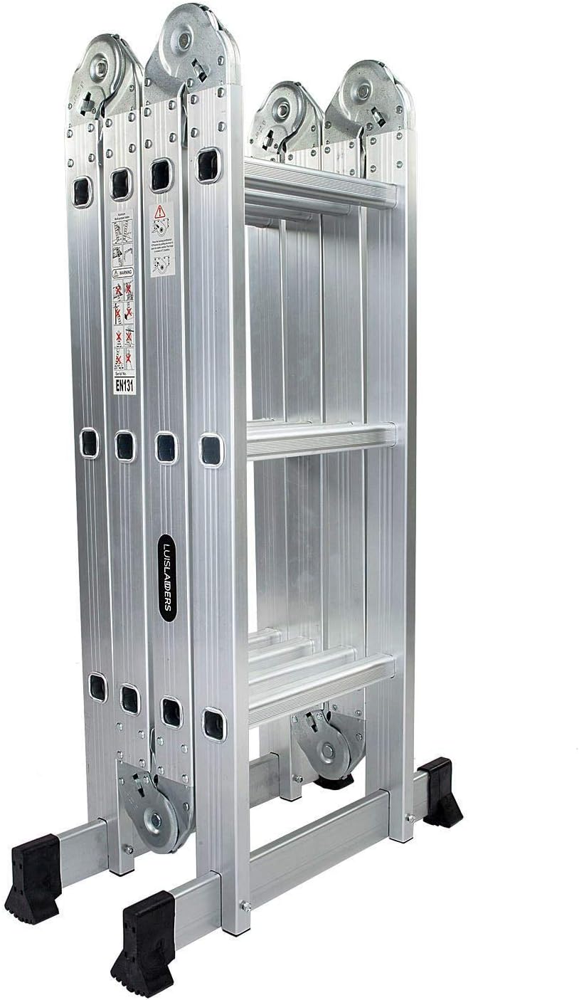 Luisladders 12.5 FT Folding Ladder Multi-Purpose Aluminium Extension 7 in 1 Step Heavy Duty Combination EN 131 Standard