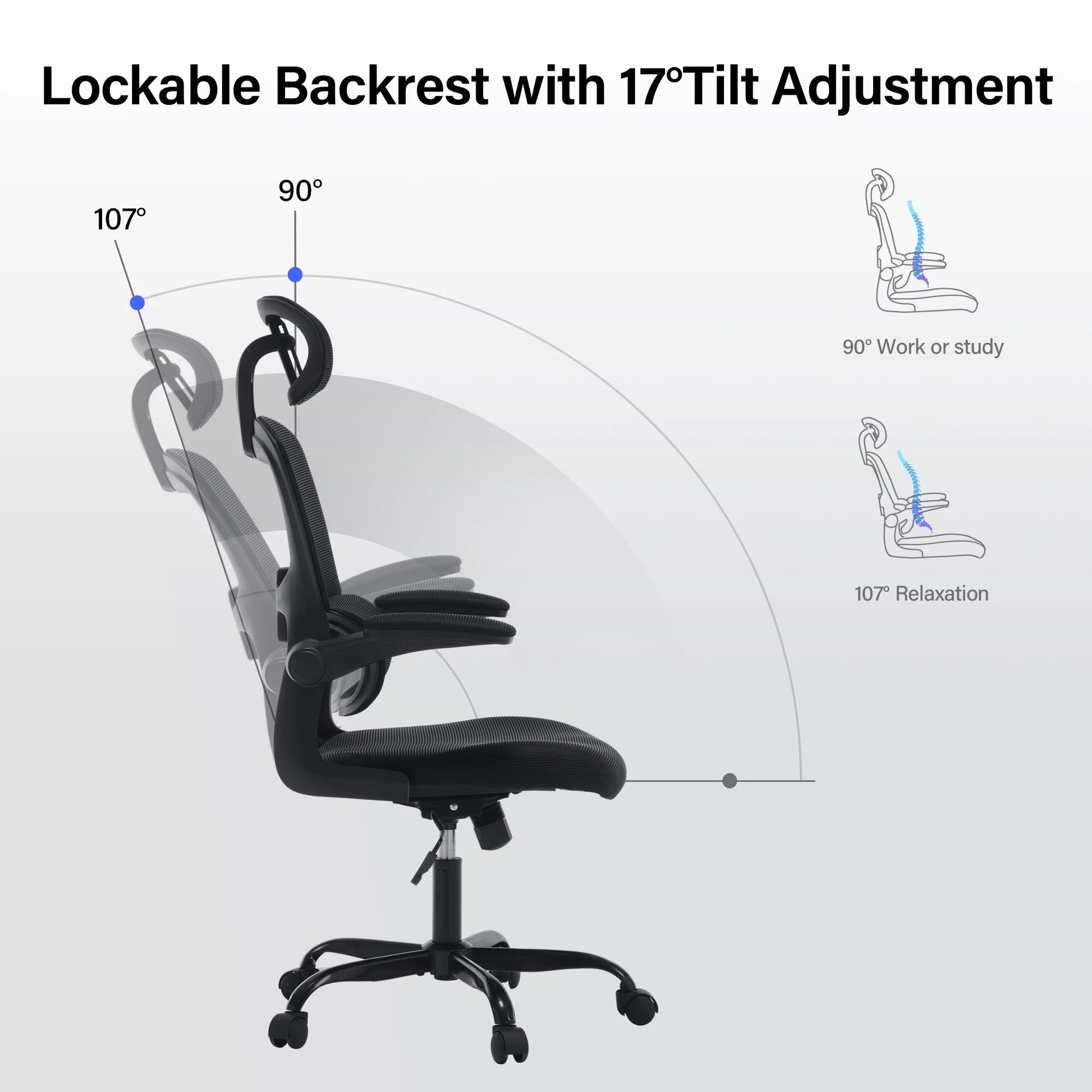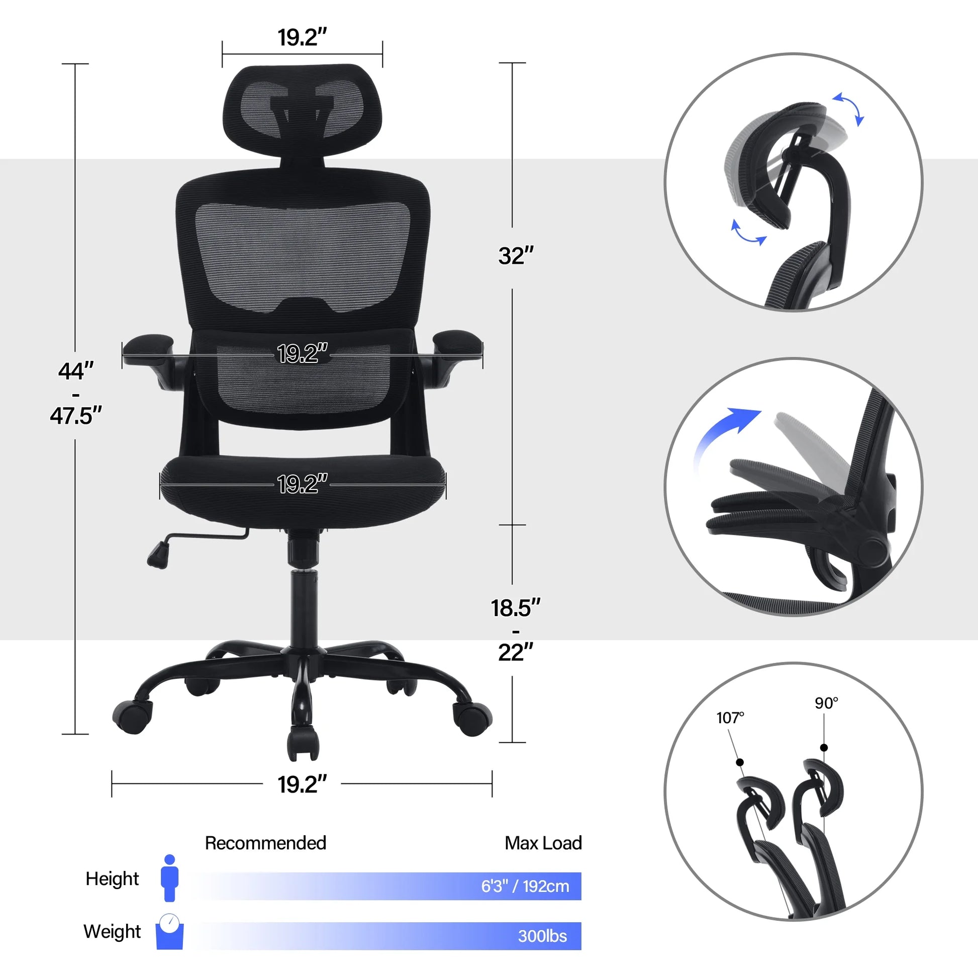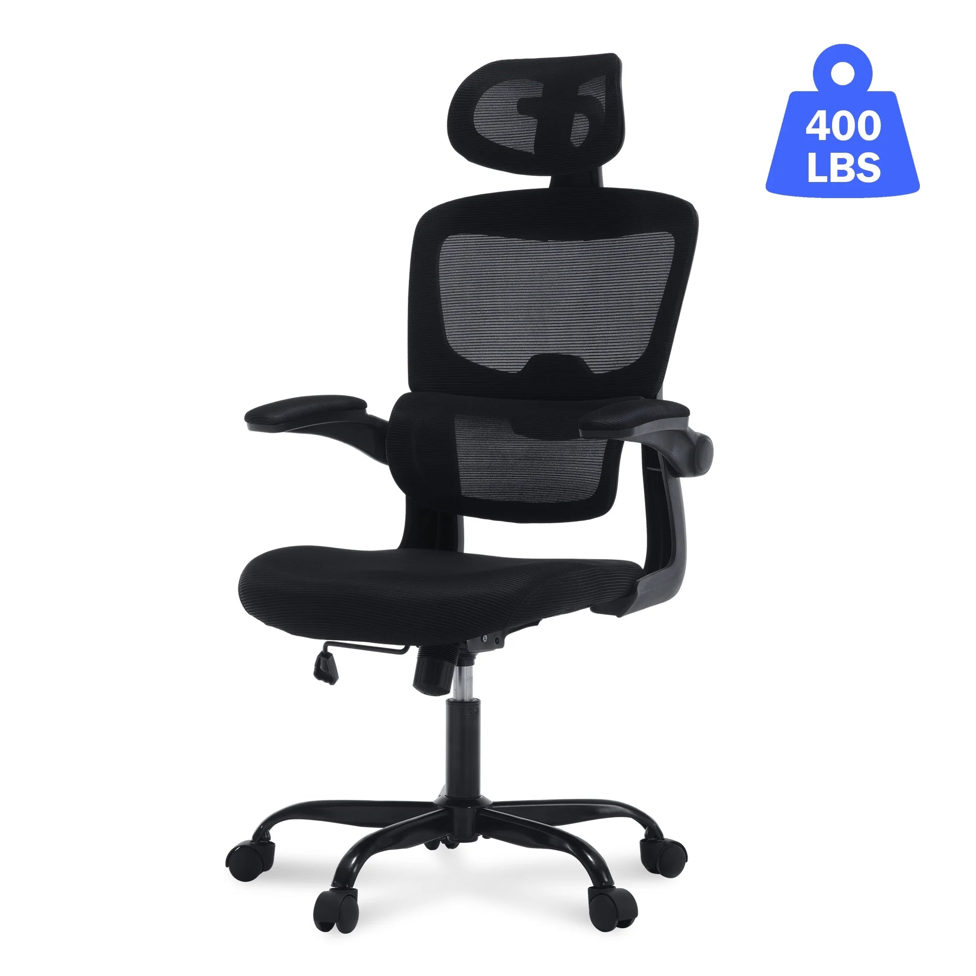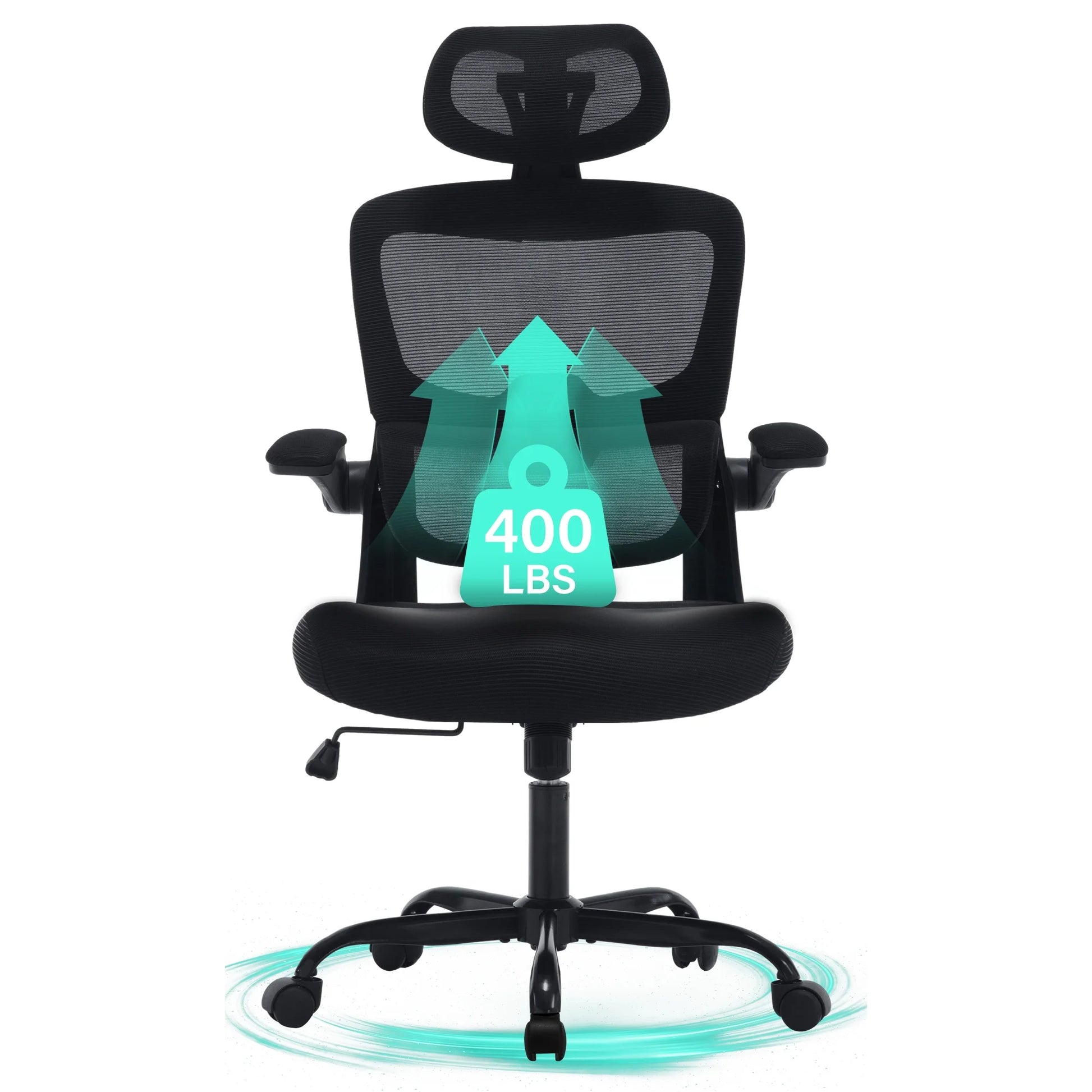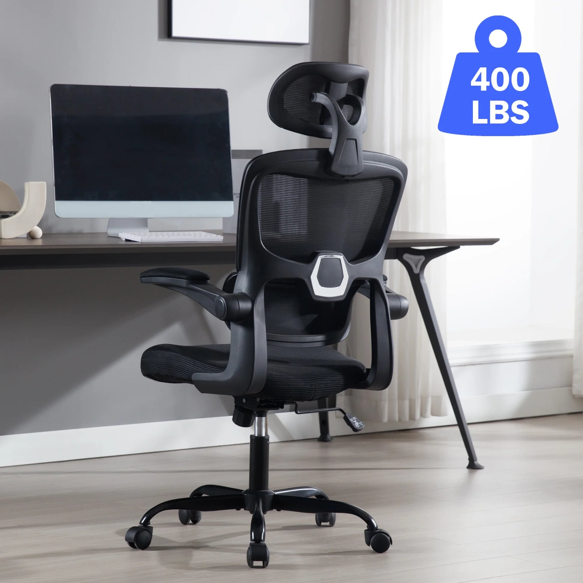 Office Chair, High Back Ergonomic Desk Chair, Mesh Desk Chair with Lumbar Support, headrest and Flip-up Armrests, 400lb, Black