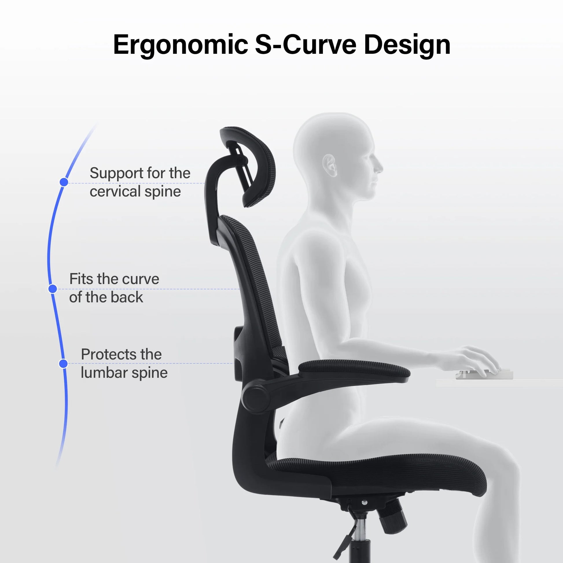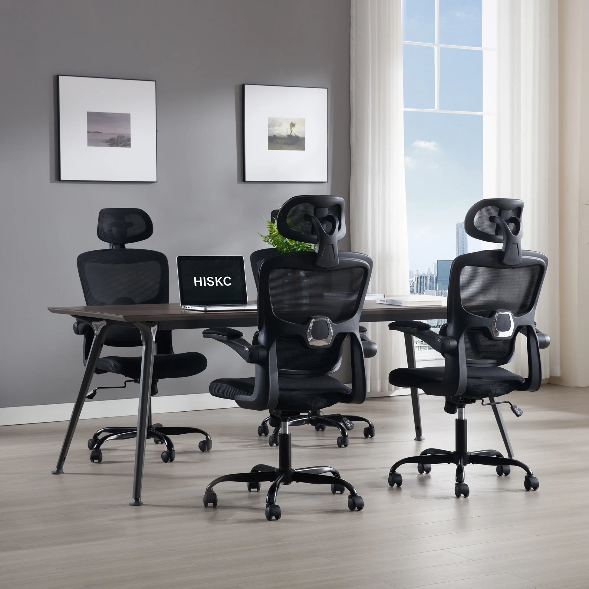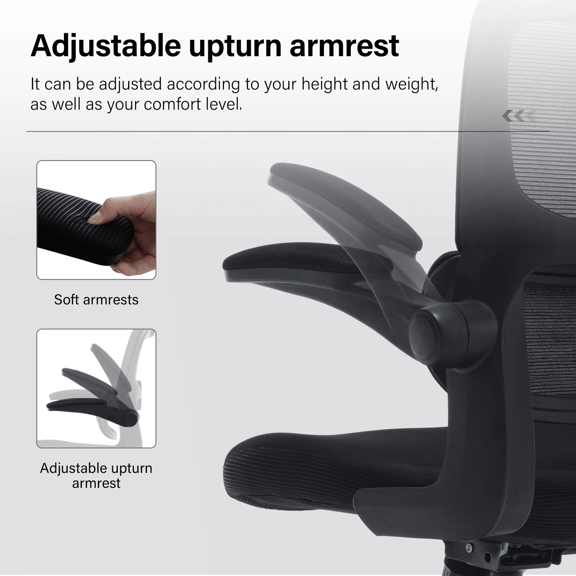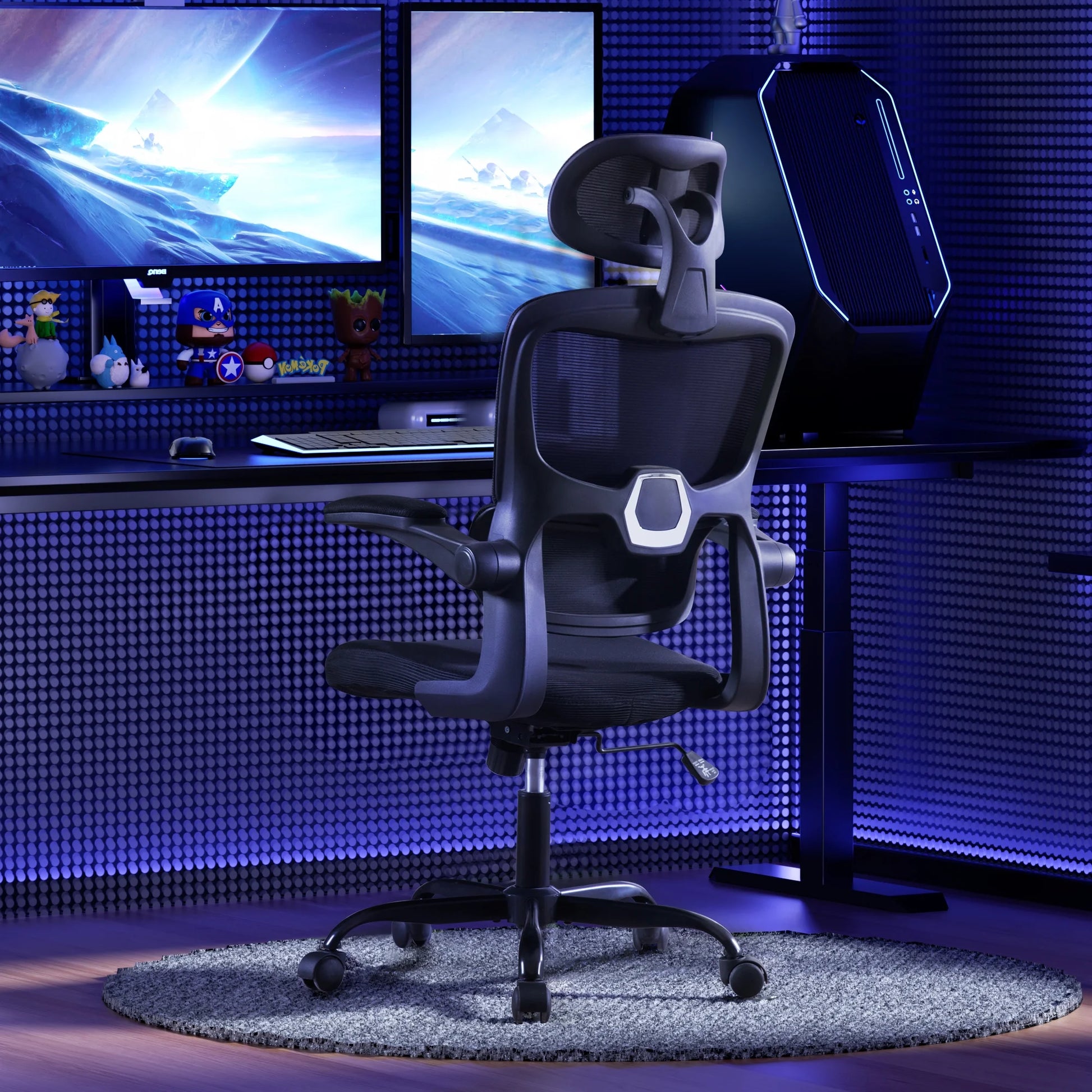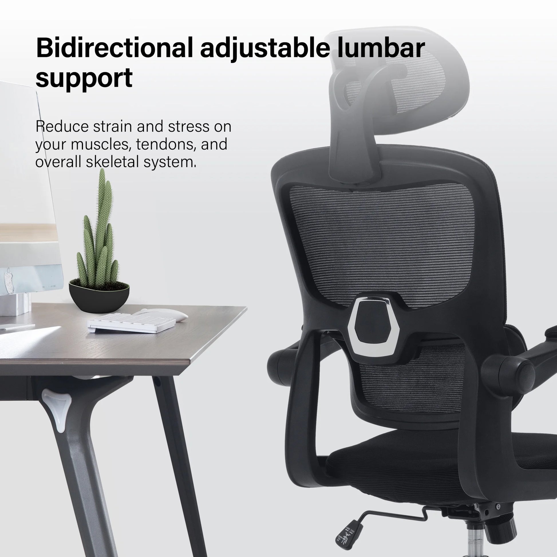 Office Chair, High Back Ergonomic Desk Chair, Mesh Desk Chair with Lumbar Support, headrest and Flip-up Armrests, 400lb, Black