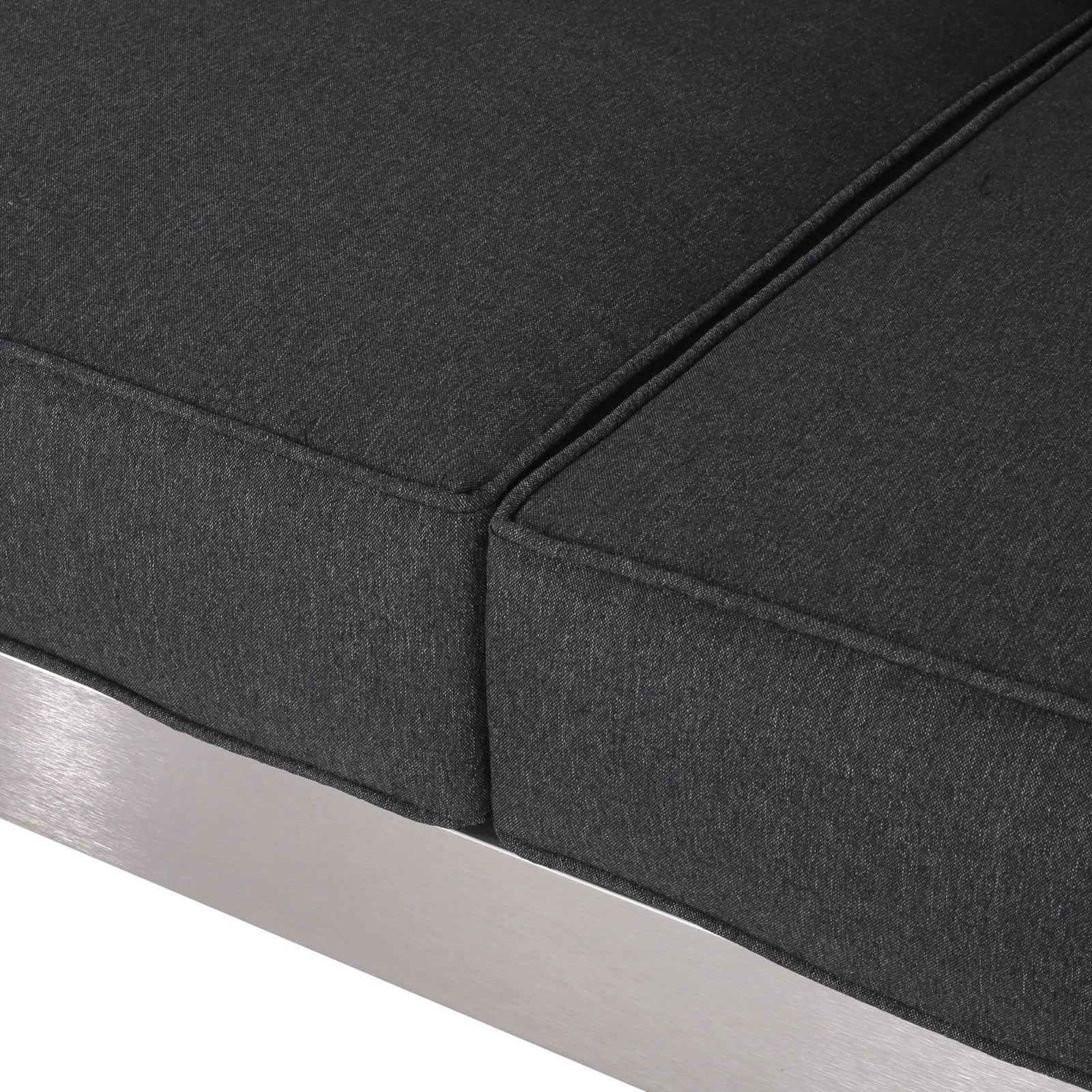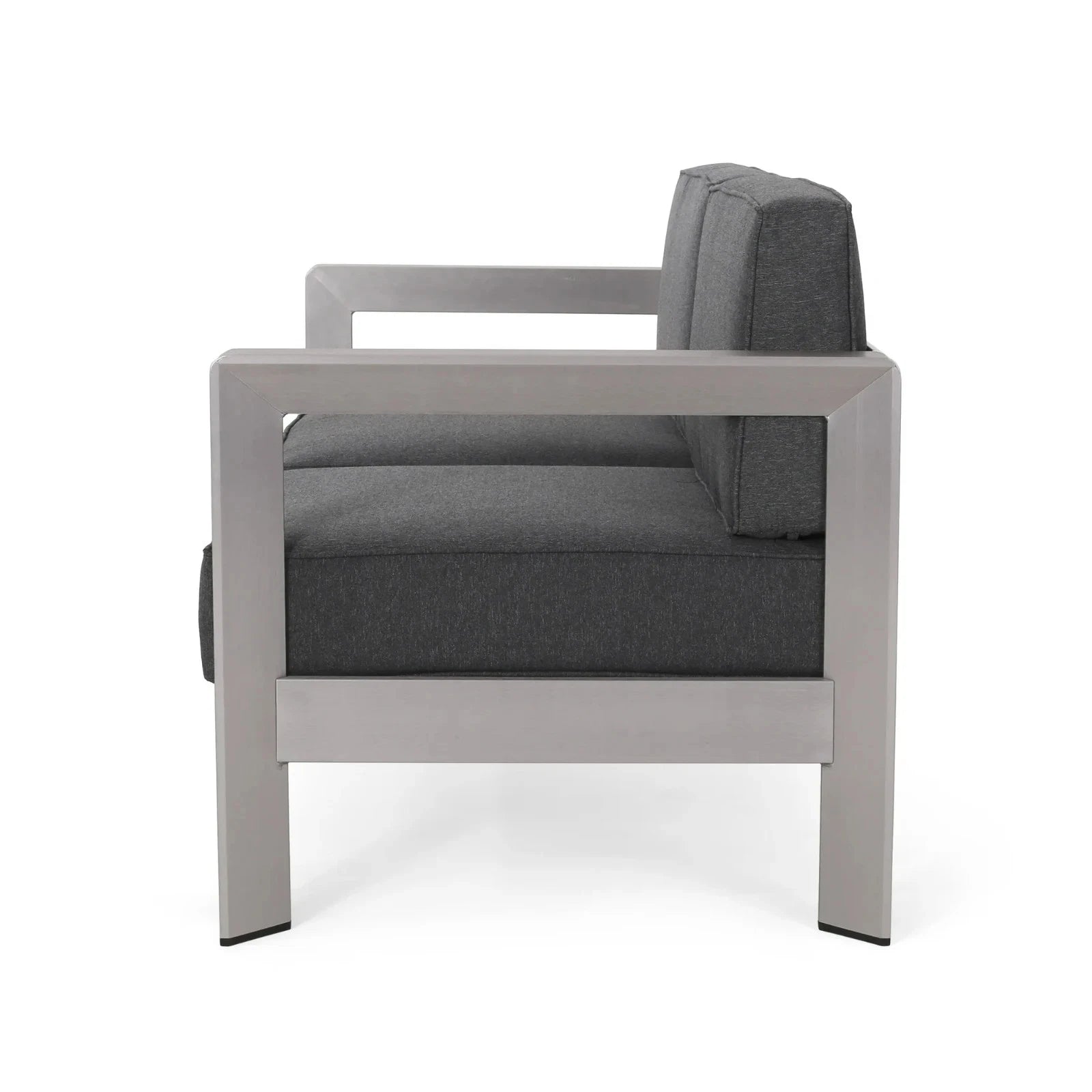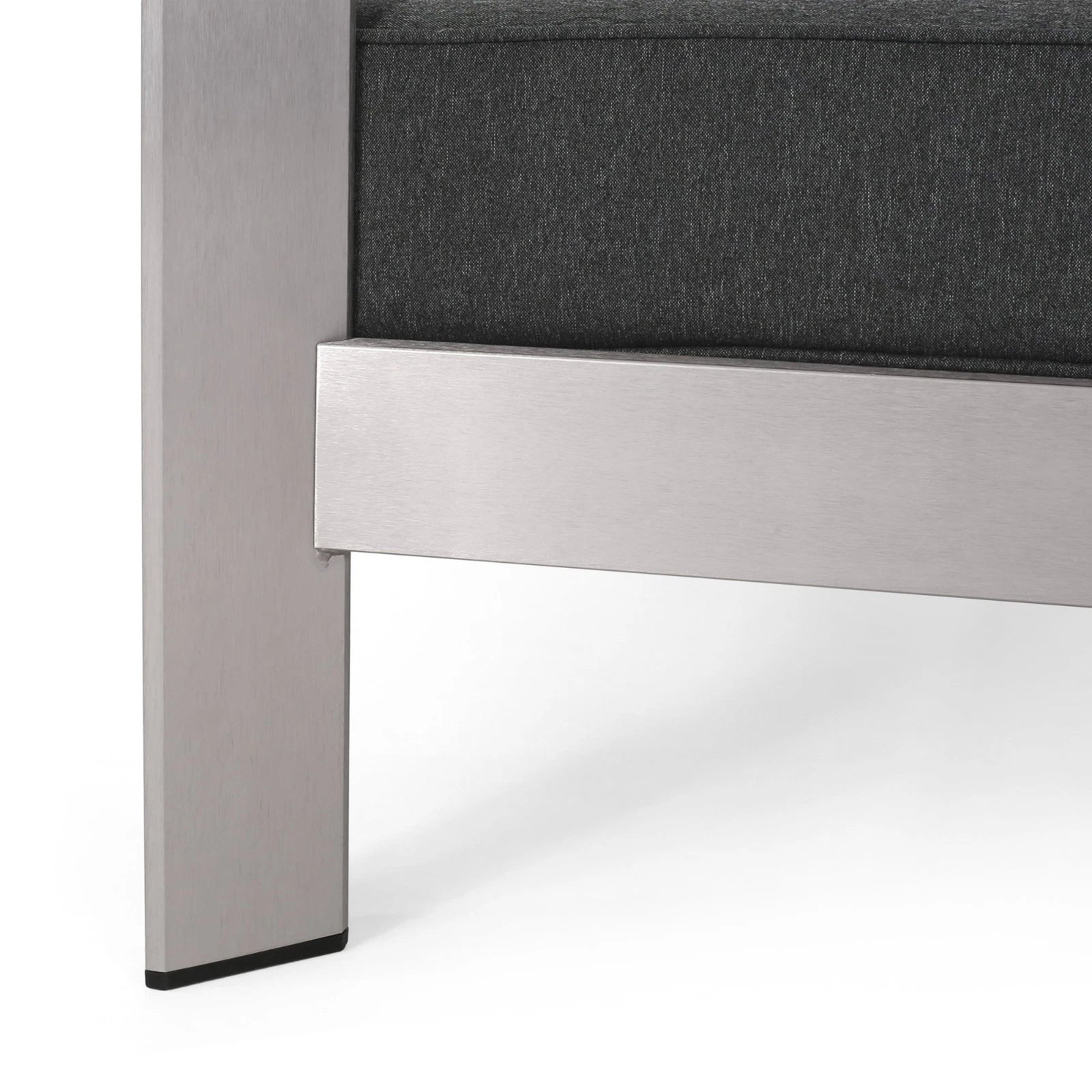 GDF Studio Alec Outdoor Aluminum Loveseat with Cushions, Silver, Charcoal: