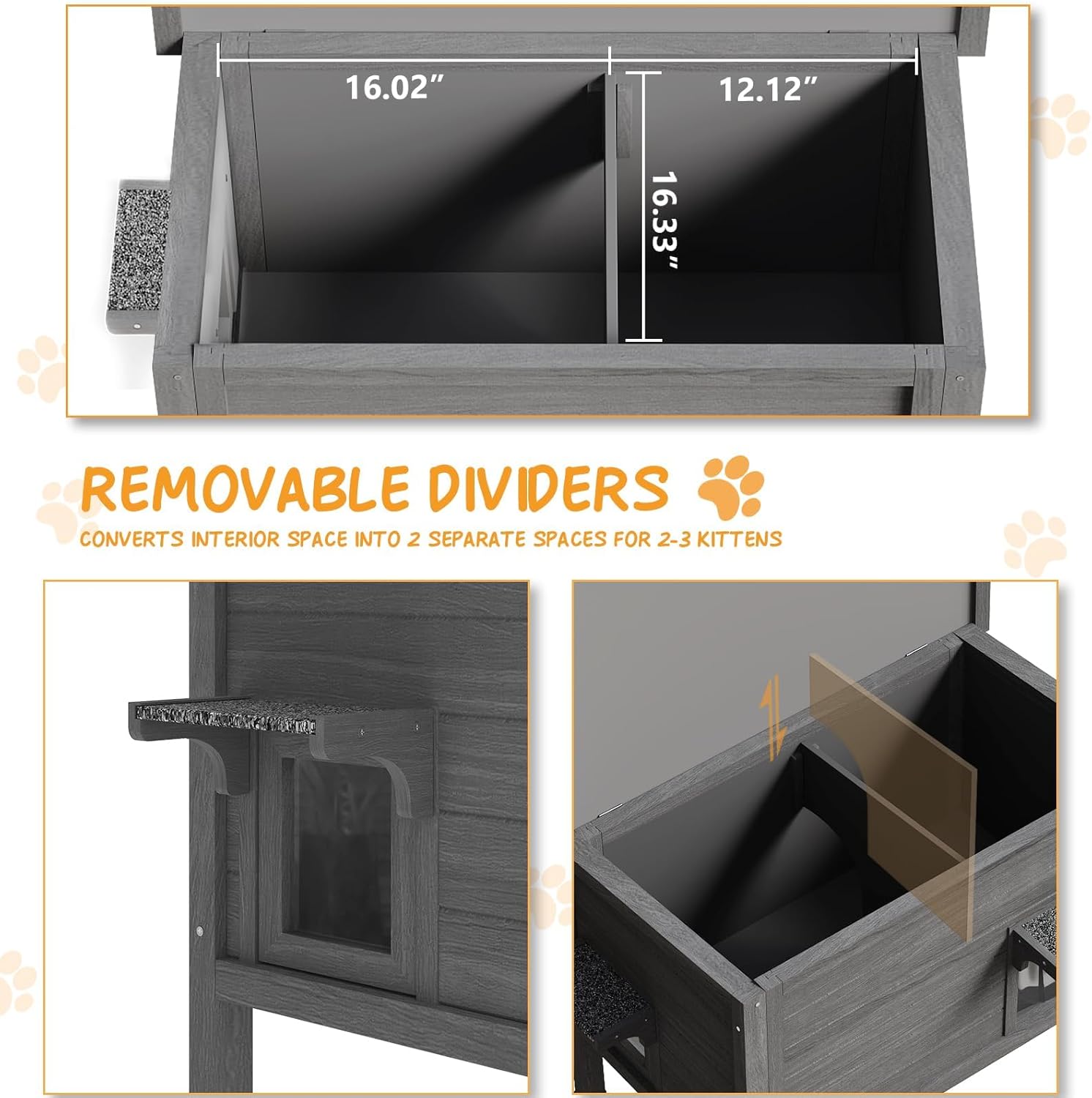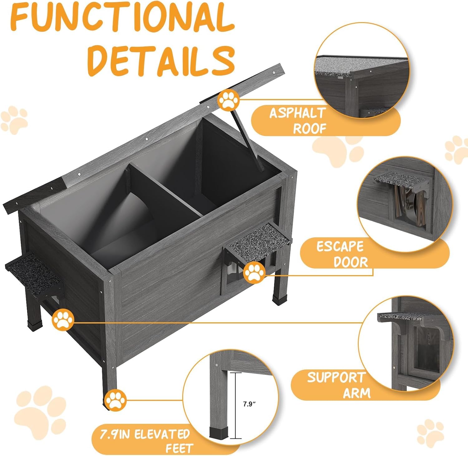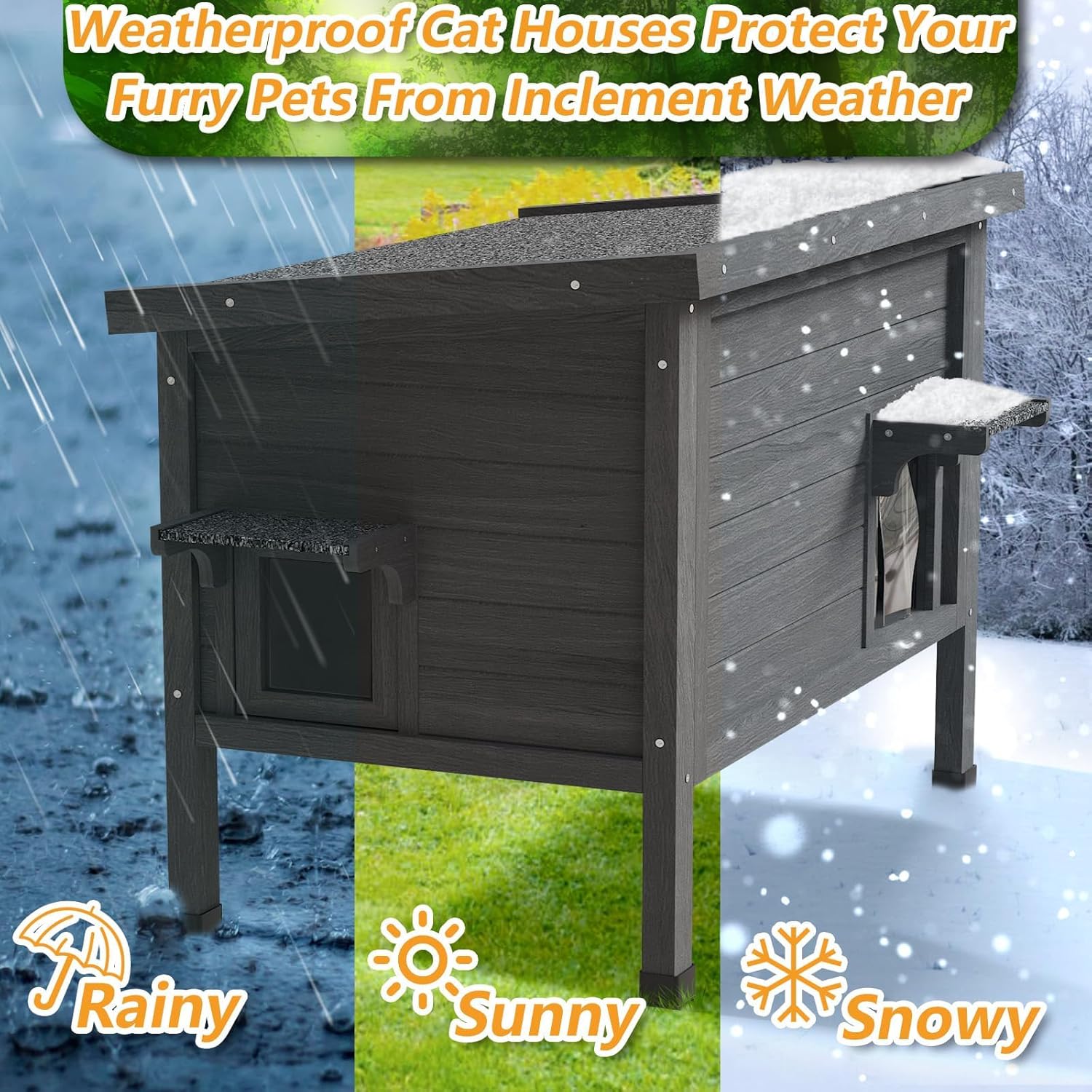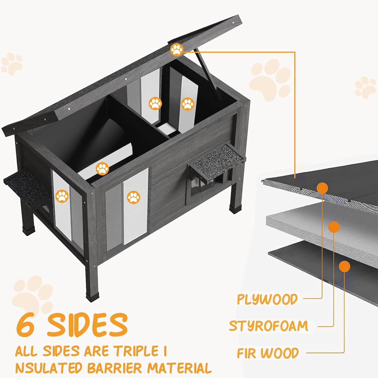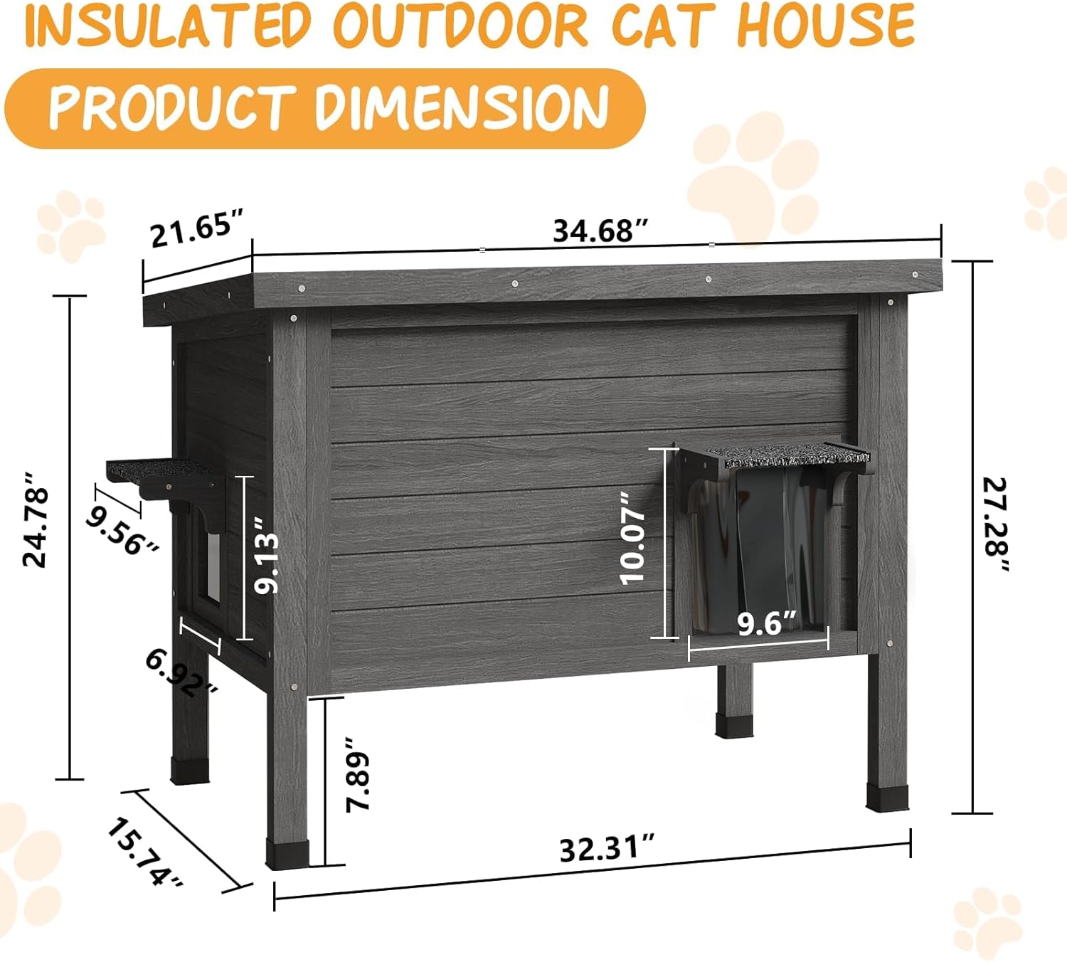 Outdoor Cat House Feral Cat Enclosure cat Houses for Cats Insulated with Escape Door All-Round Foam Weatherproof Winter Shelter-cat Houses Solid Wood Large Size 34.7" L*21.6" W*27.3" H