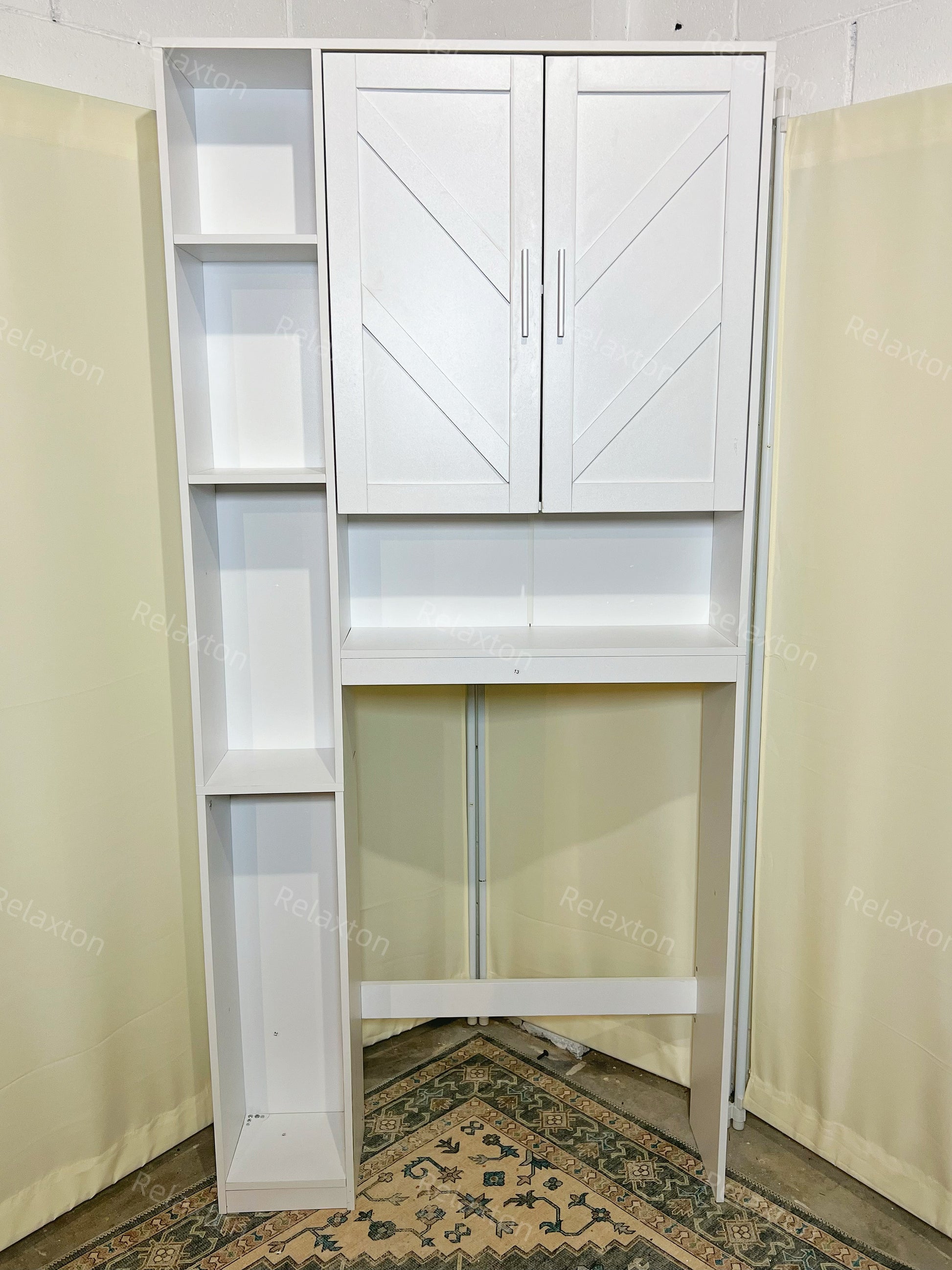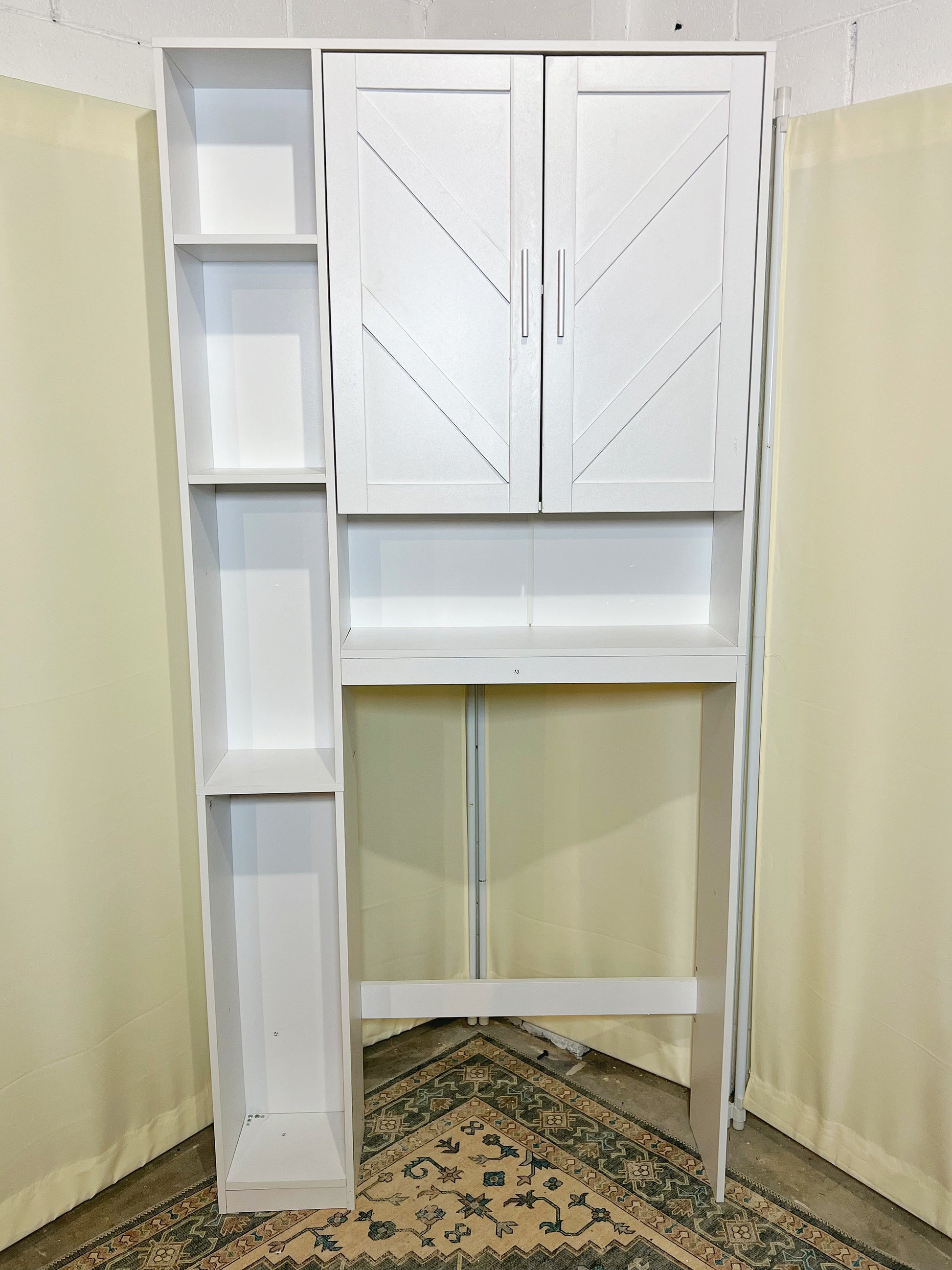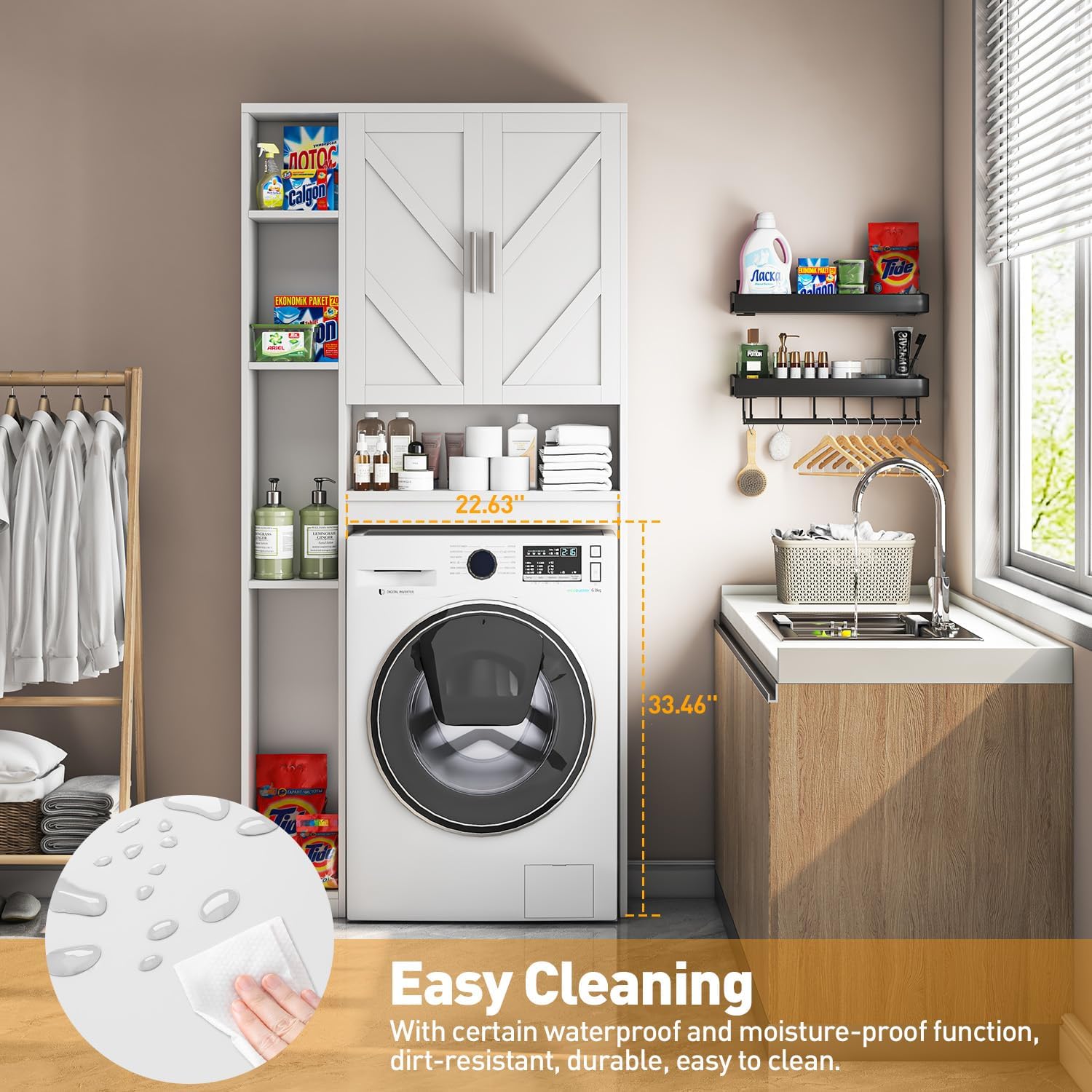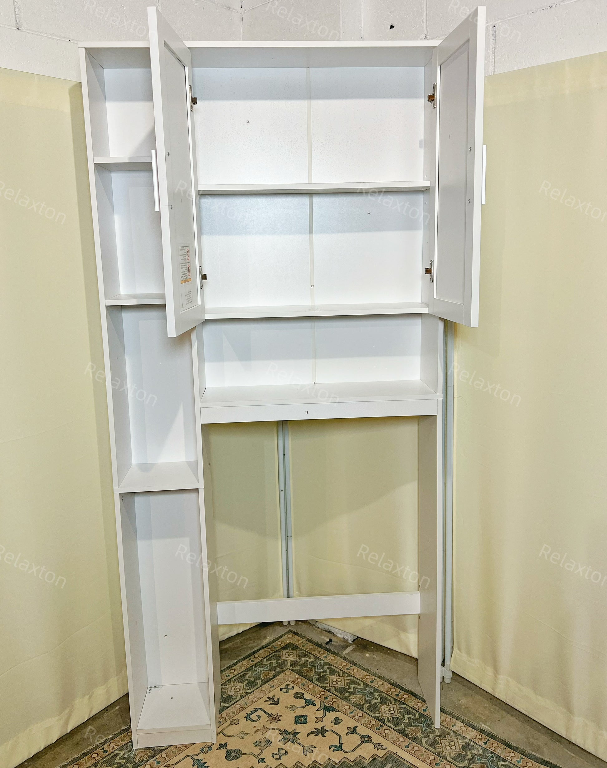 Over The Toilet Storage Cabinet with 7 Storage Shelves, Above Toilet Bathroom Organizer with Toilet Paper Holder Stand, Behind Toilet Cabinet, Space Saver for Restroom, Bathroom, Laundry, White