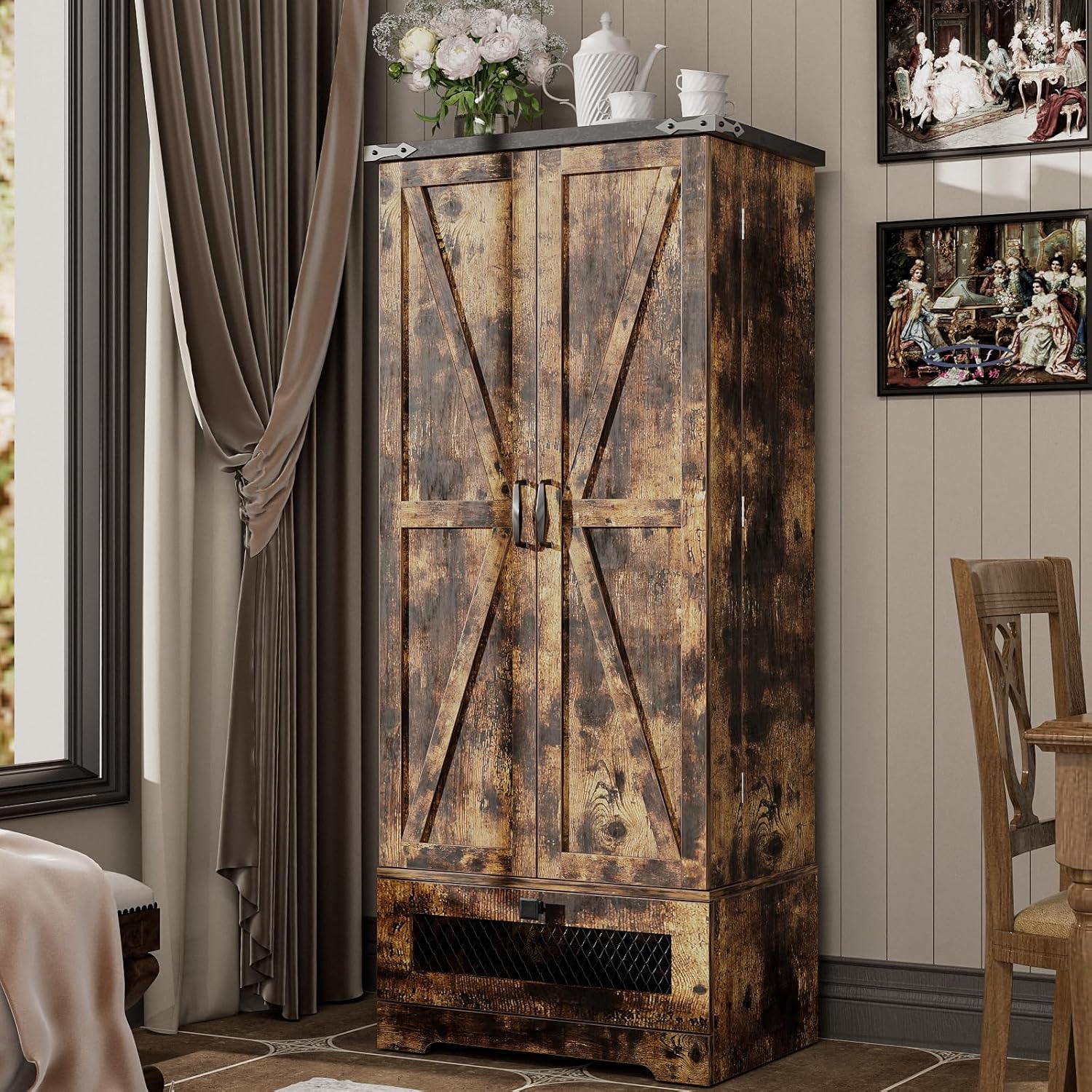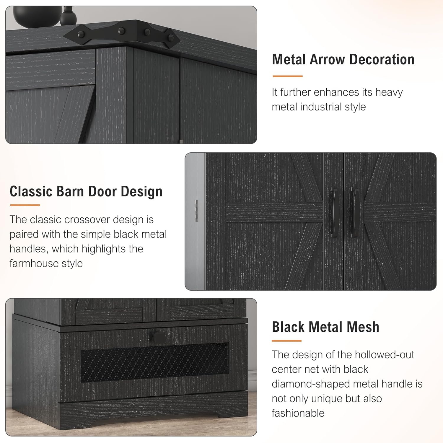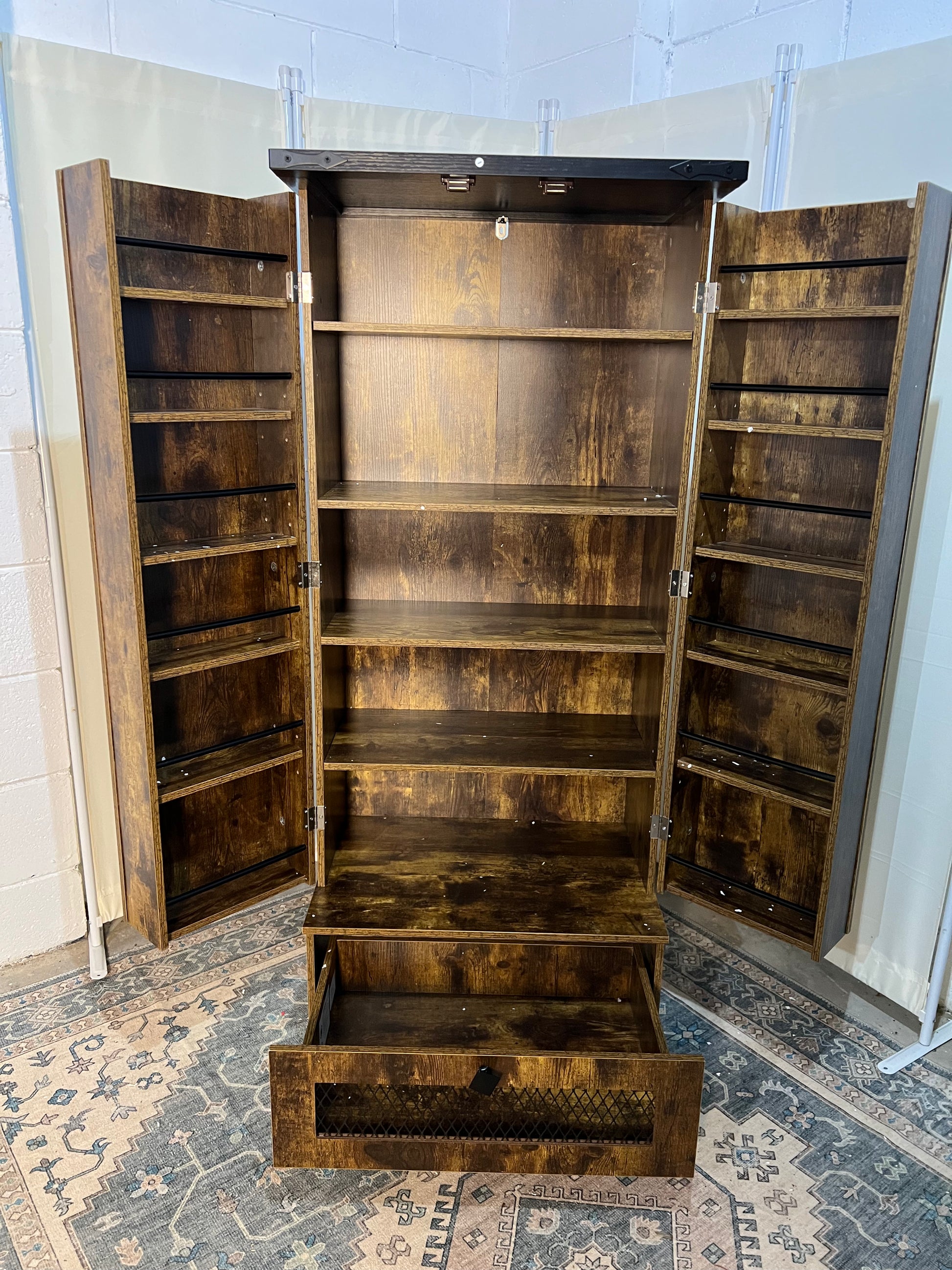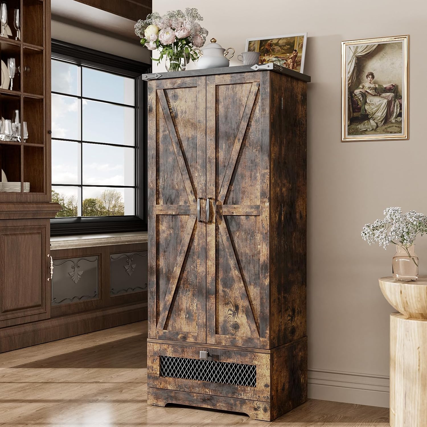 Sturdy Construction: Farmhouse pantry cabinet is crafted from laminated fiberboard, it features a clean-lined silhouette and a neutral solid finish for a versatile addition to any ensemble.