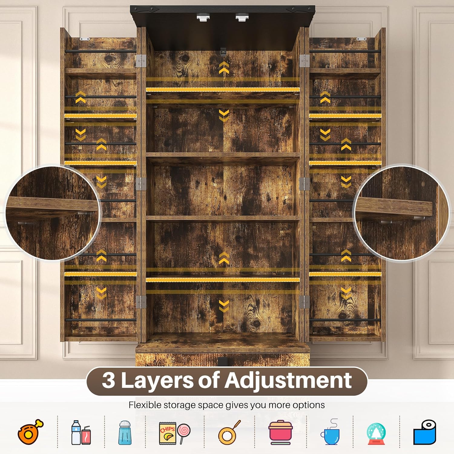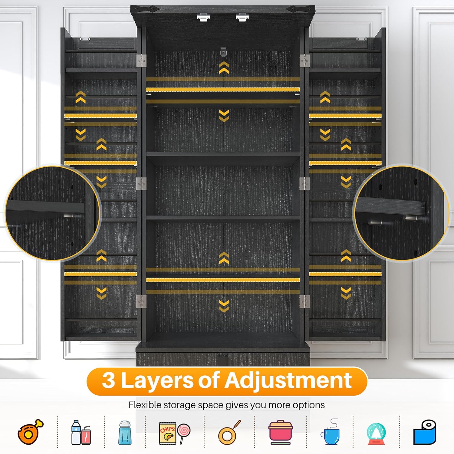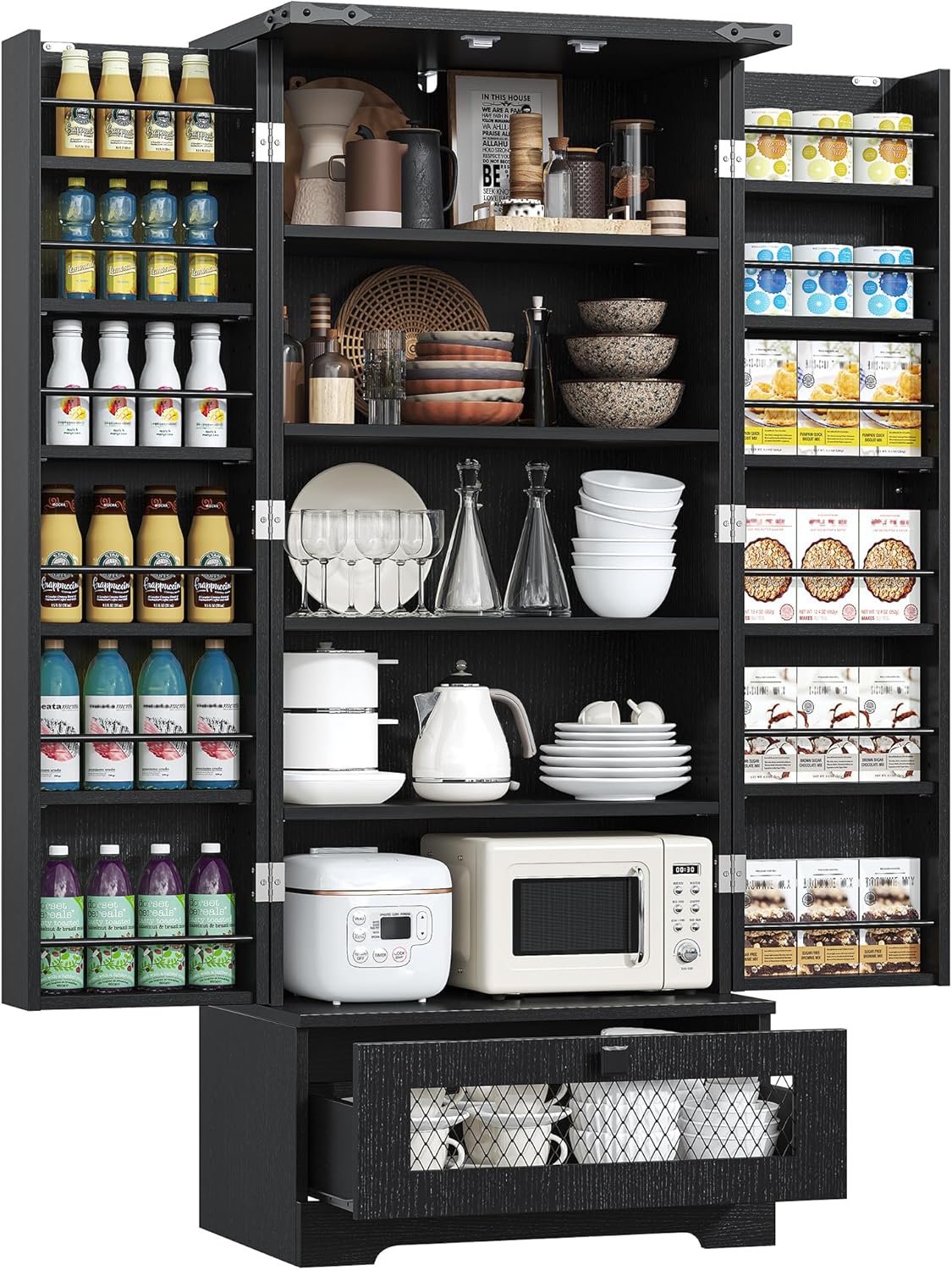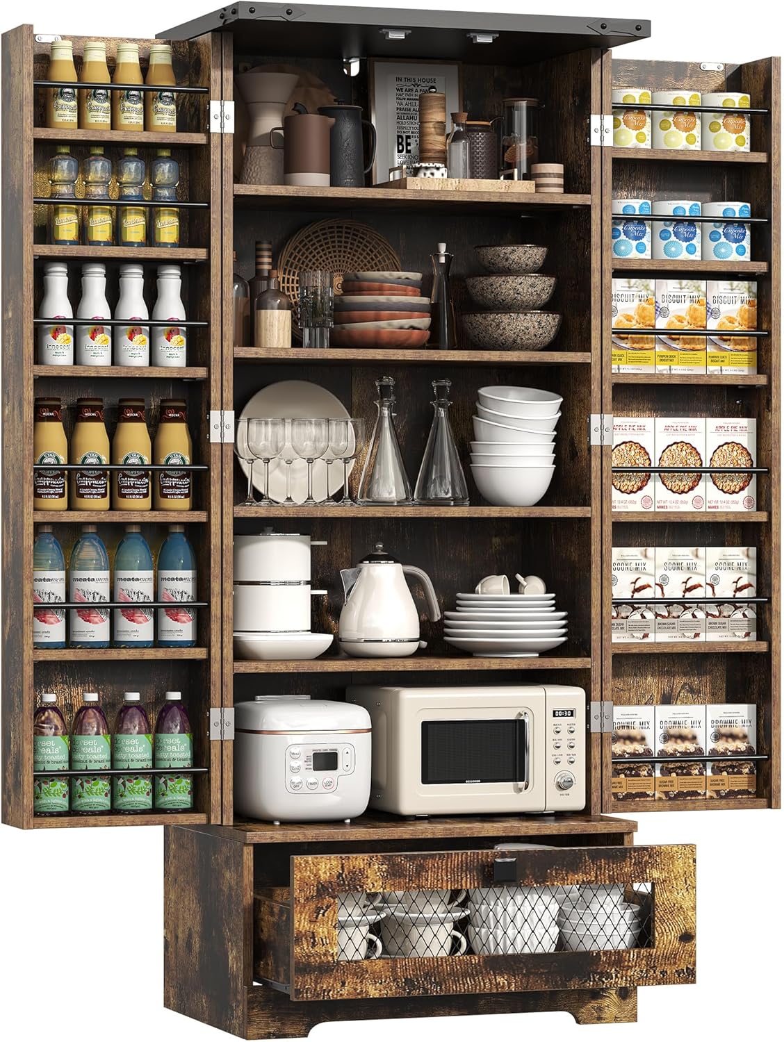 Pantry Cabinet with Adjustable Shelves and Drawer, Kitchen Cabinet Buffet Cupboards Storage for Home Office