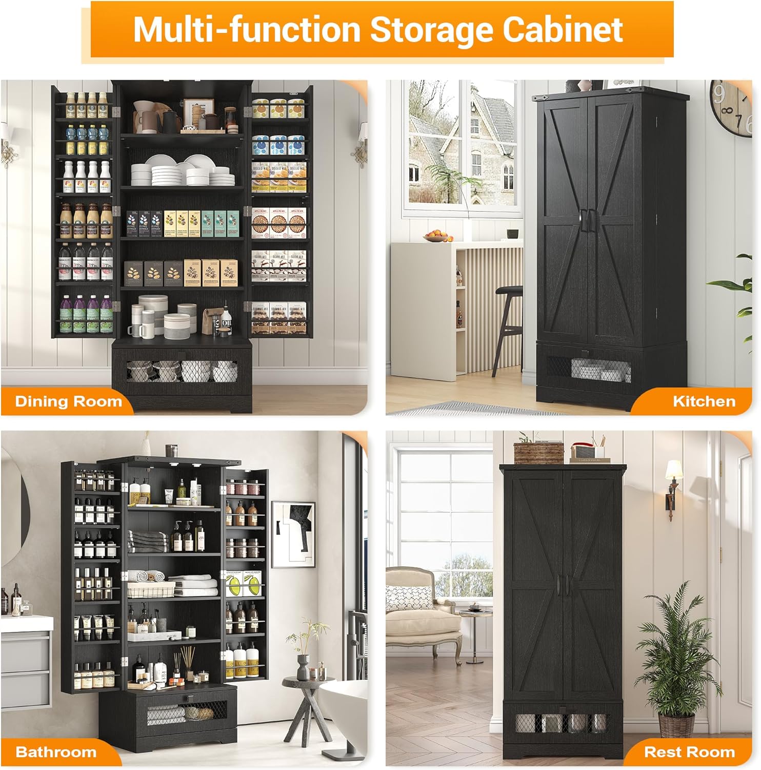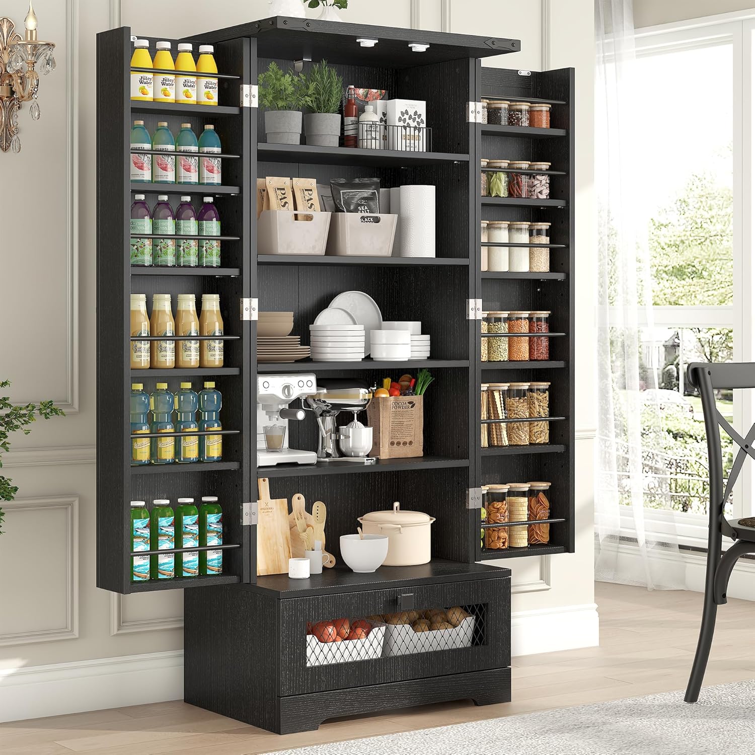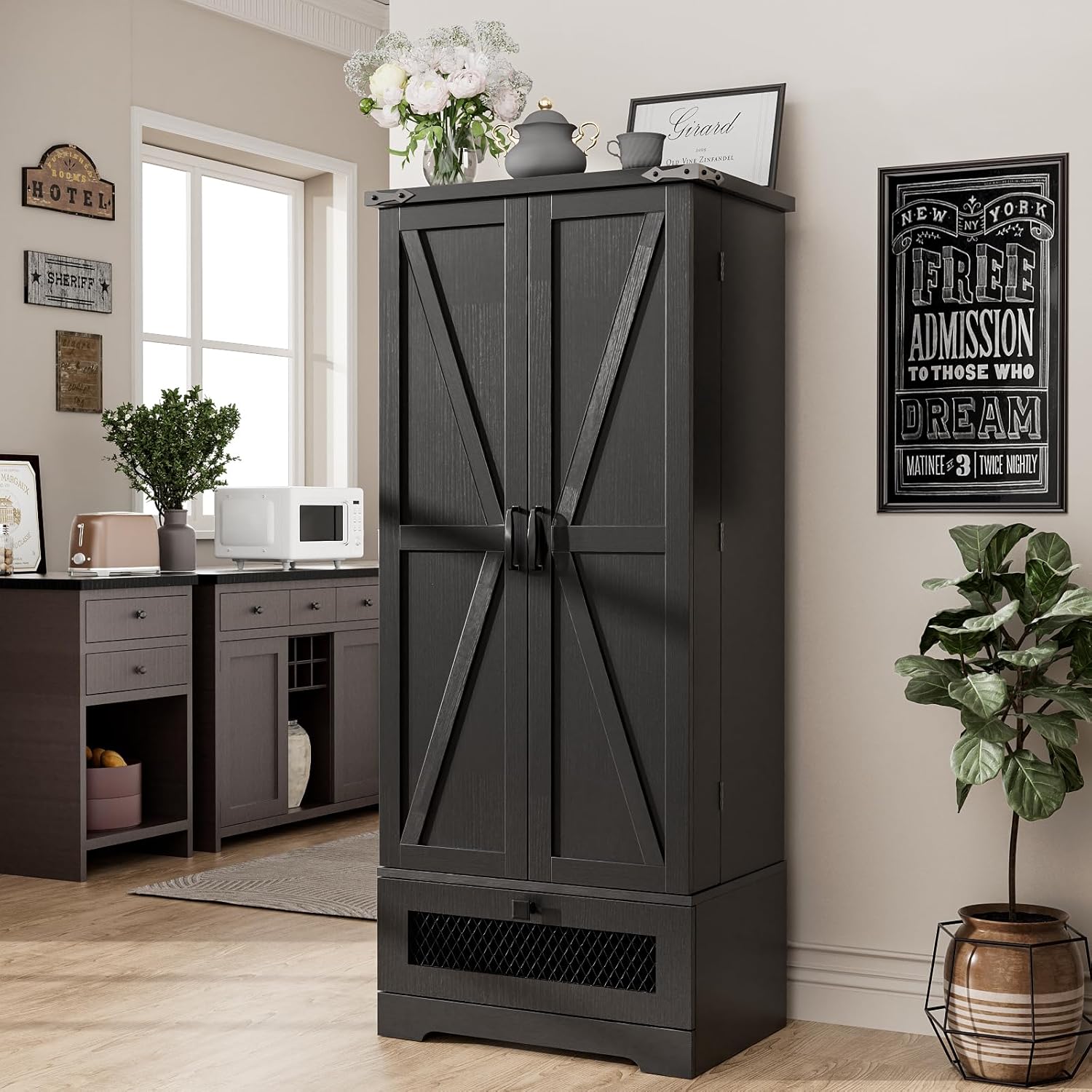 Pantry Cabinet with Adjustable Shelves and Drawer, Kitchen Cabinet Buffet Cupboards Storage for Home Office
