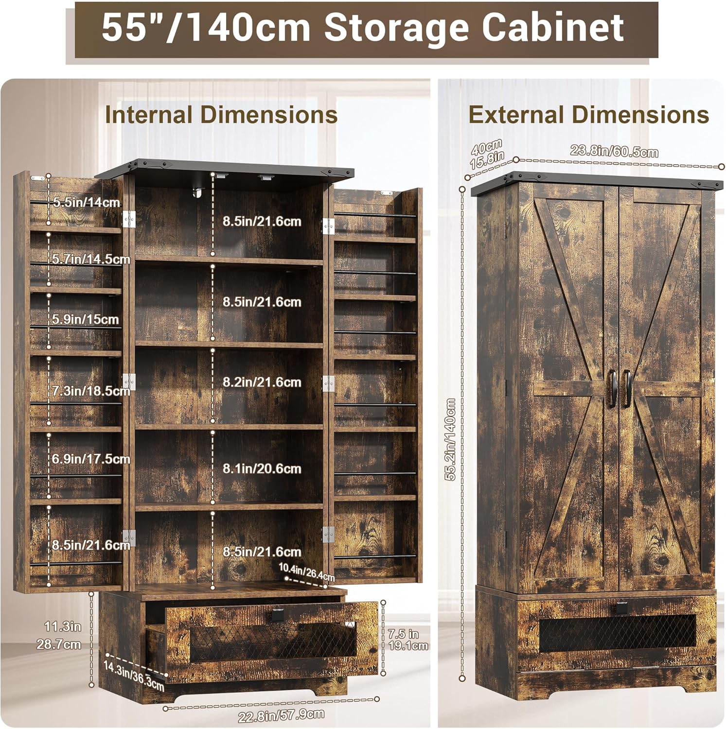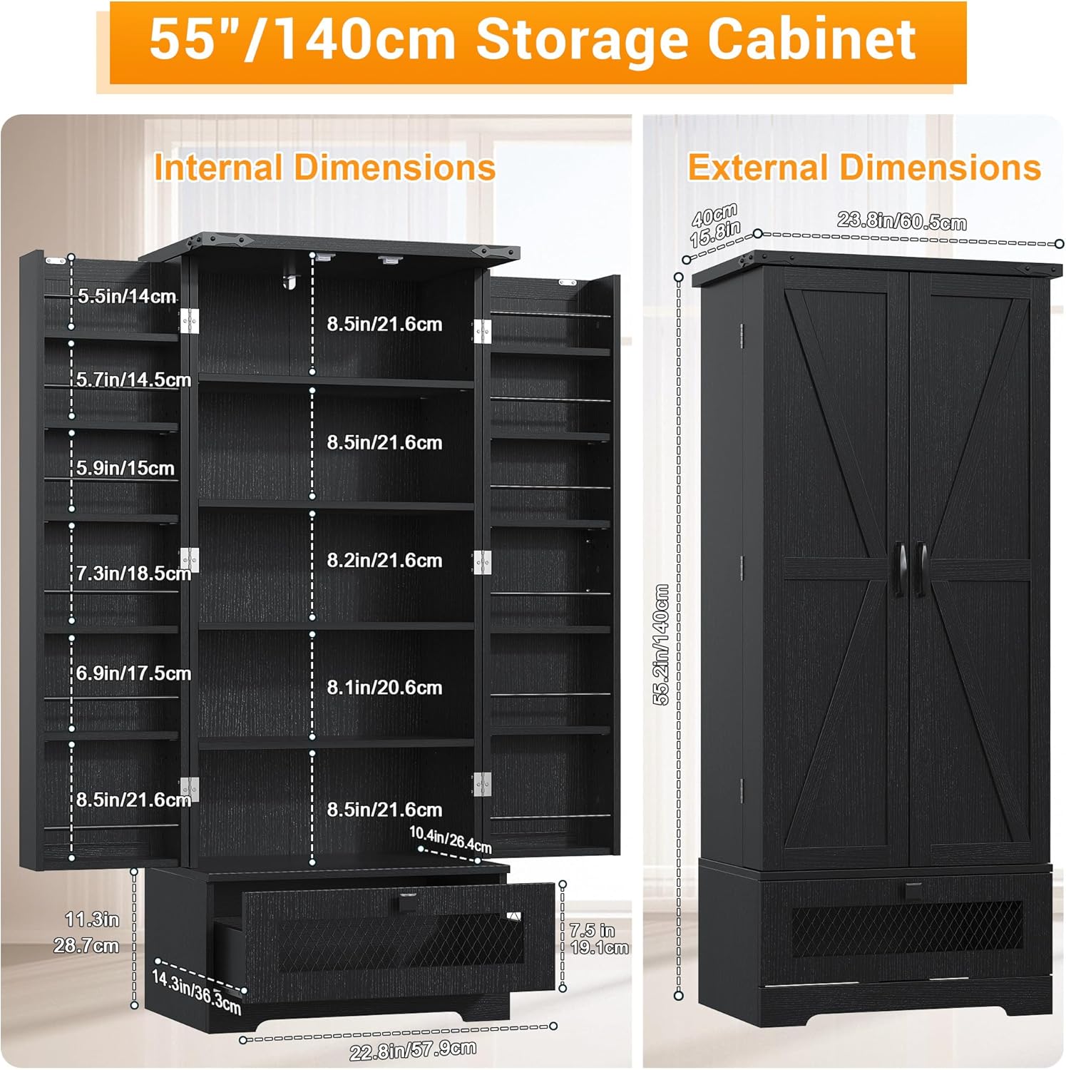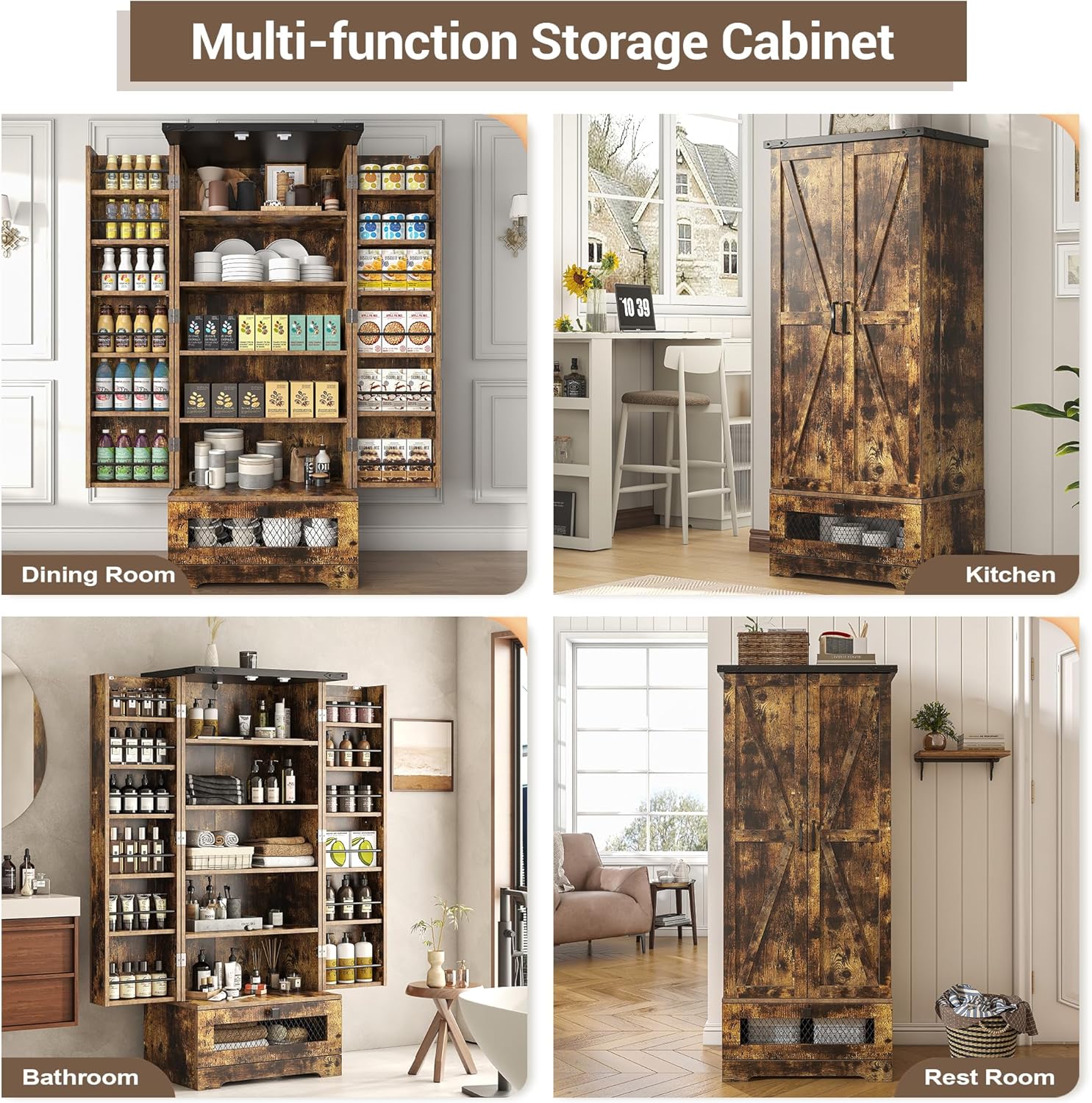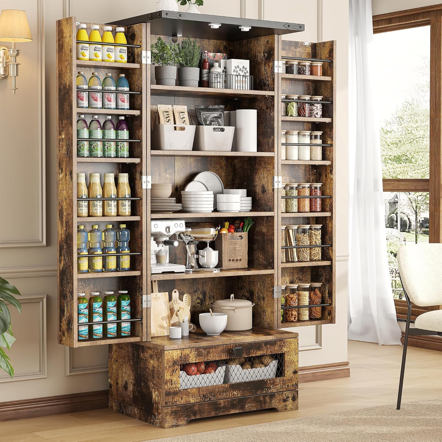 Pantry Cabinet with Adjustable Shelves and Drawer, Kitchen Cabinet Buffet Cupboards Storage for Home Office