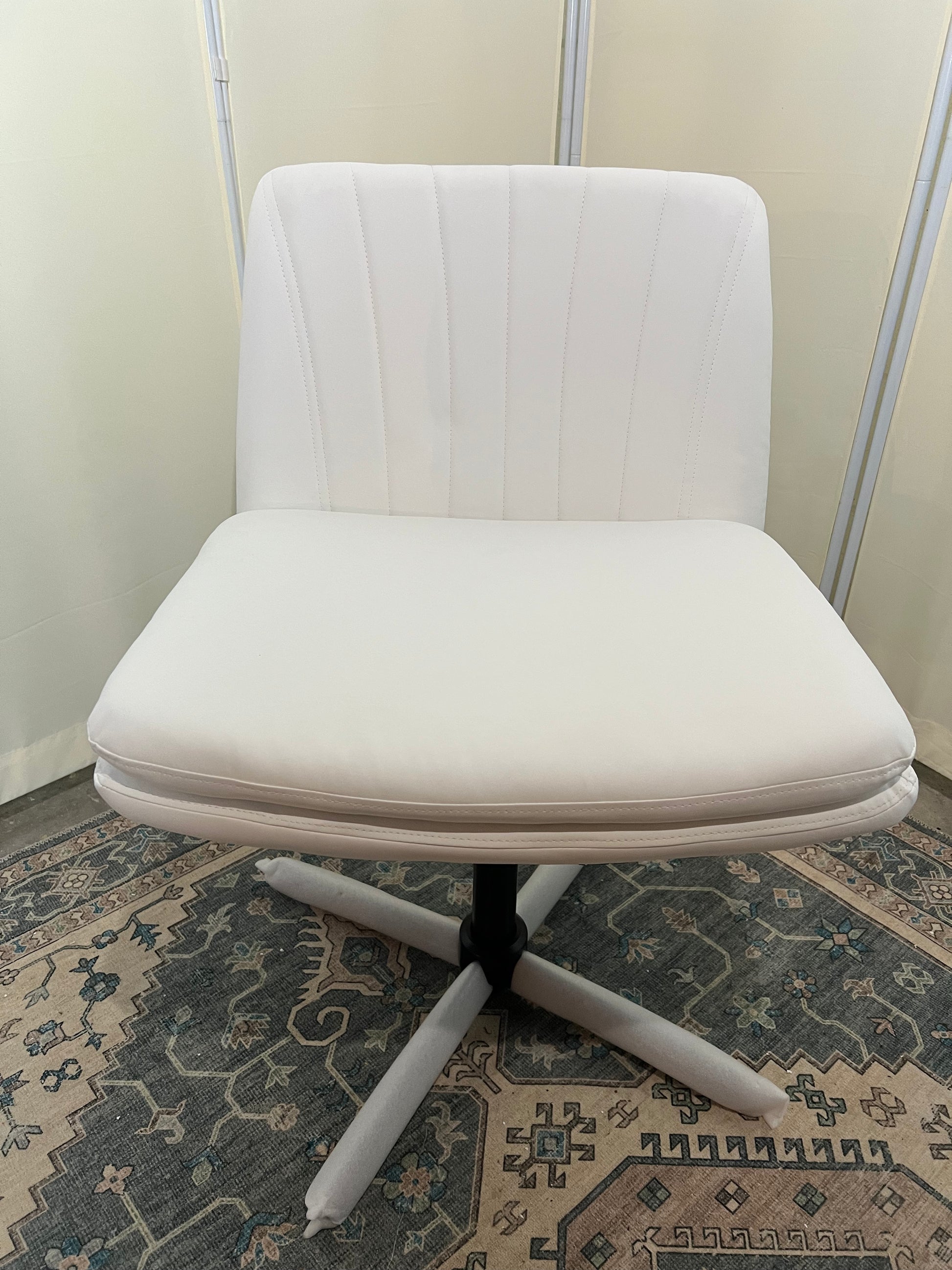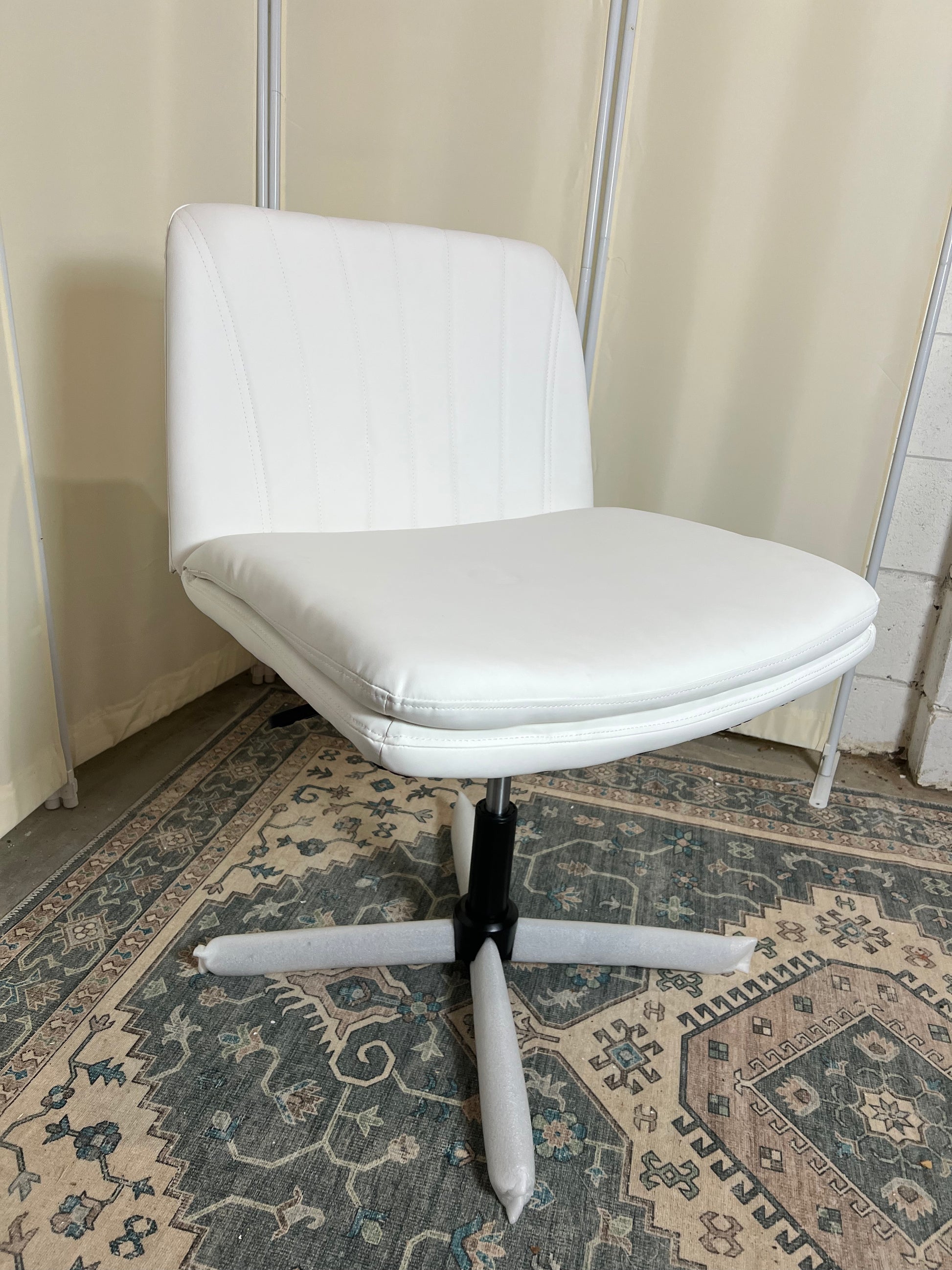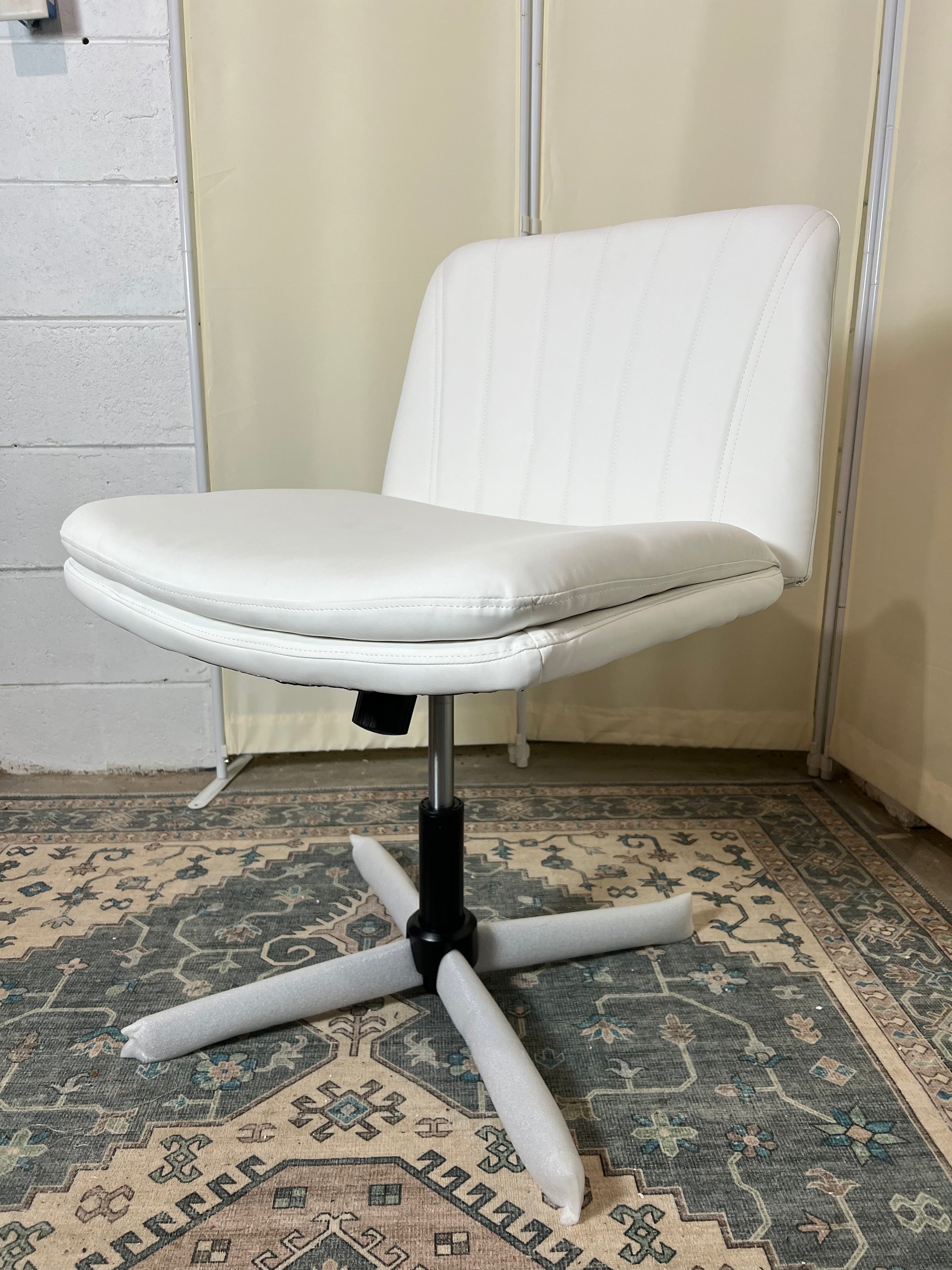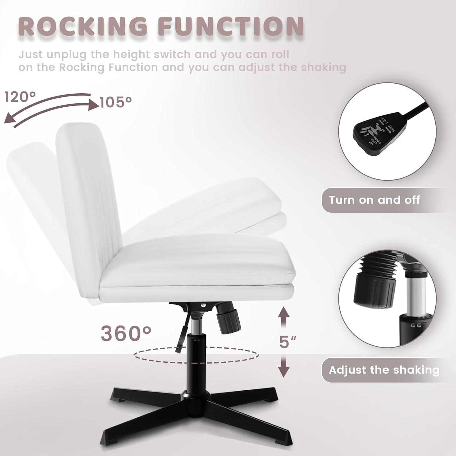 PU Leather Armless Office Desk Chair No Wheels,Criss Cross Legged Wide Padded Seat Swivel Vanity Chair,120°Rocking Mid Back Ergonomic Computer Task Chair for Make Up,Small Space