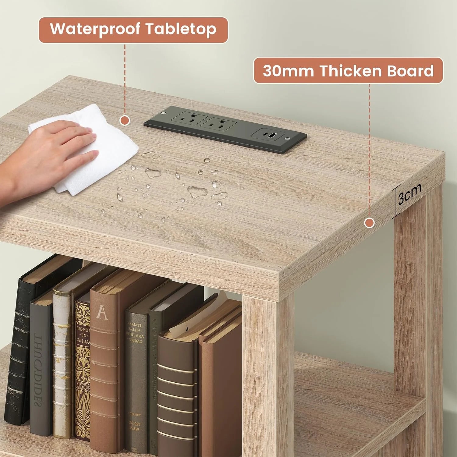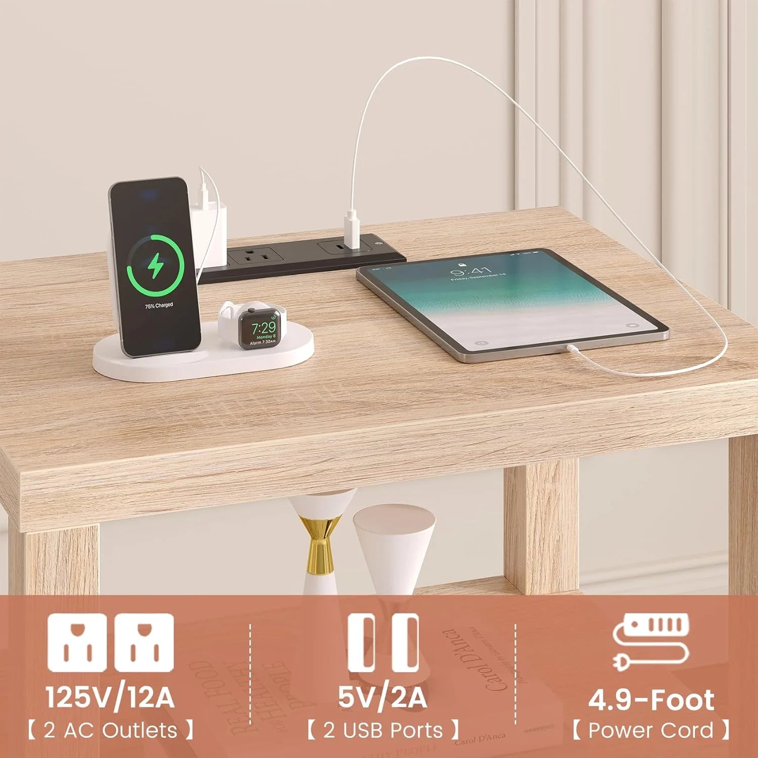 - 【Nightstand with Power Outlets】Our nightstand is equipped with two standard AC sockets, one Type-C port, and one USB port, providing convenient charging options for electronic devices and lamps.With the built-in charging station, you can easily charge your devices overnight without having to worry about messy cords or tangled wires.