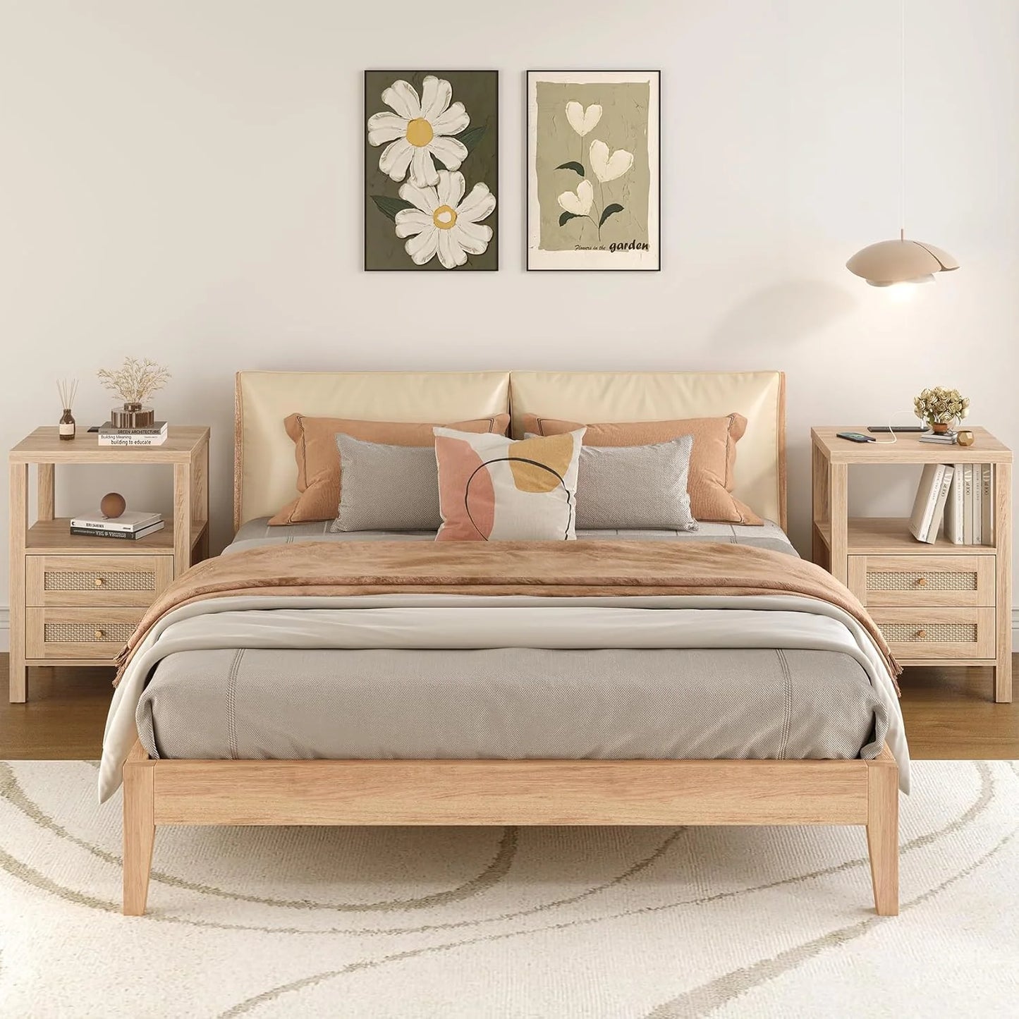 - 【Rattan Nightstand】Meticulously handcrafted using traditional weaving techniques, this nightstand features a natural rattan decor drawer with an exquisite rattan net finish. The addition of a golden pull ring enhances its unique appearance and adds a visually pleasing effect that elevates the charm of your home decor.