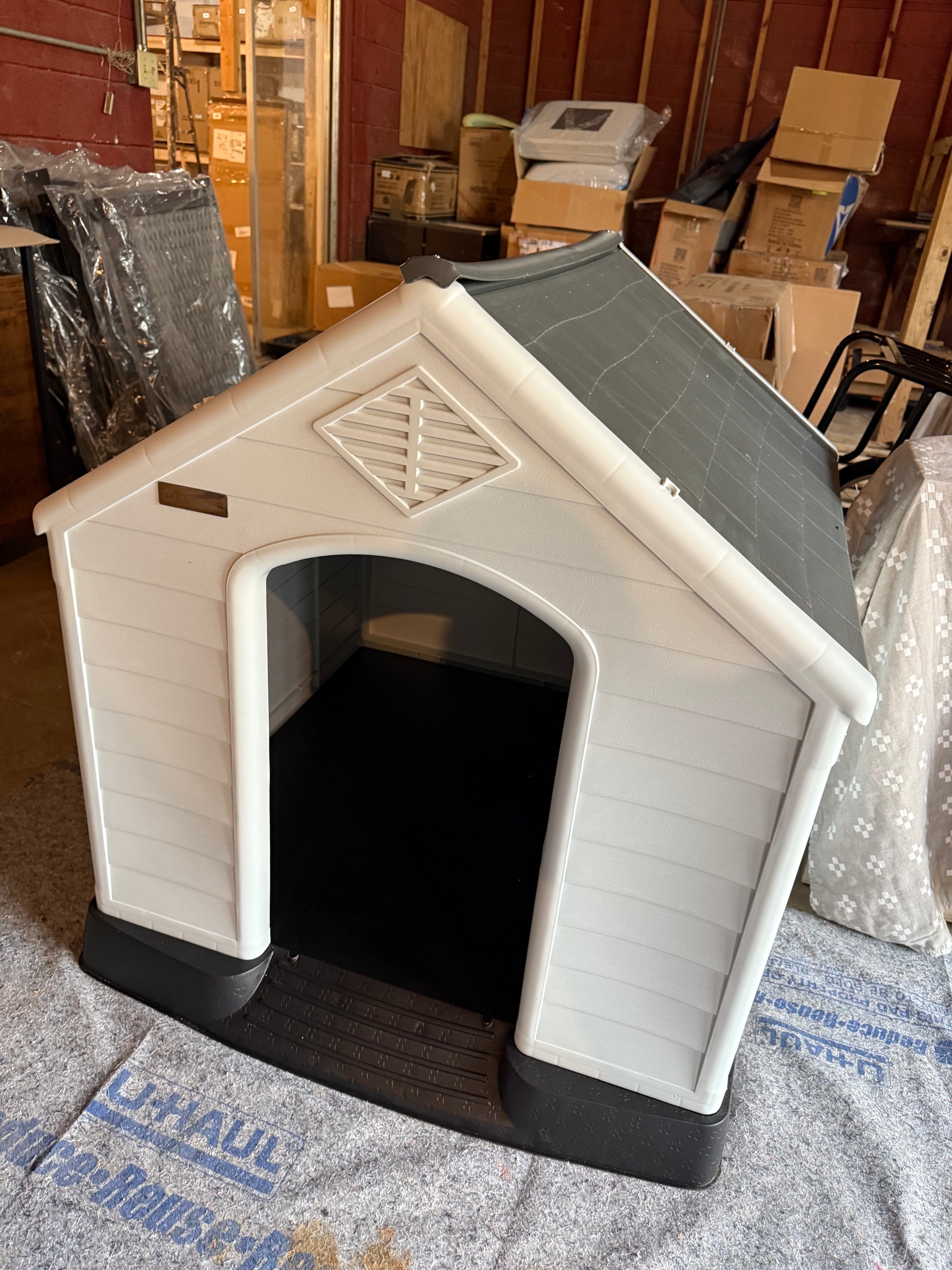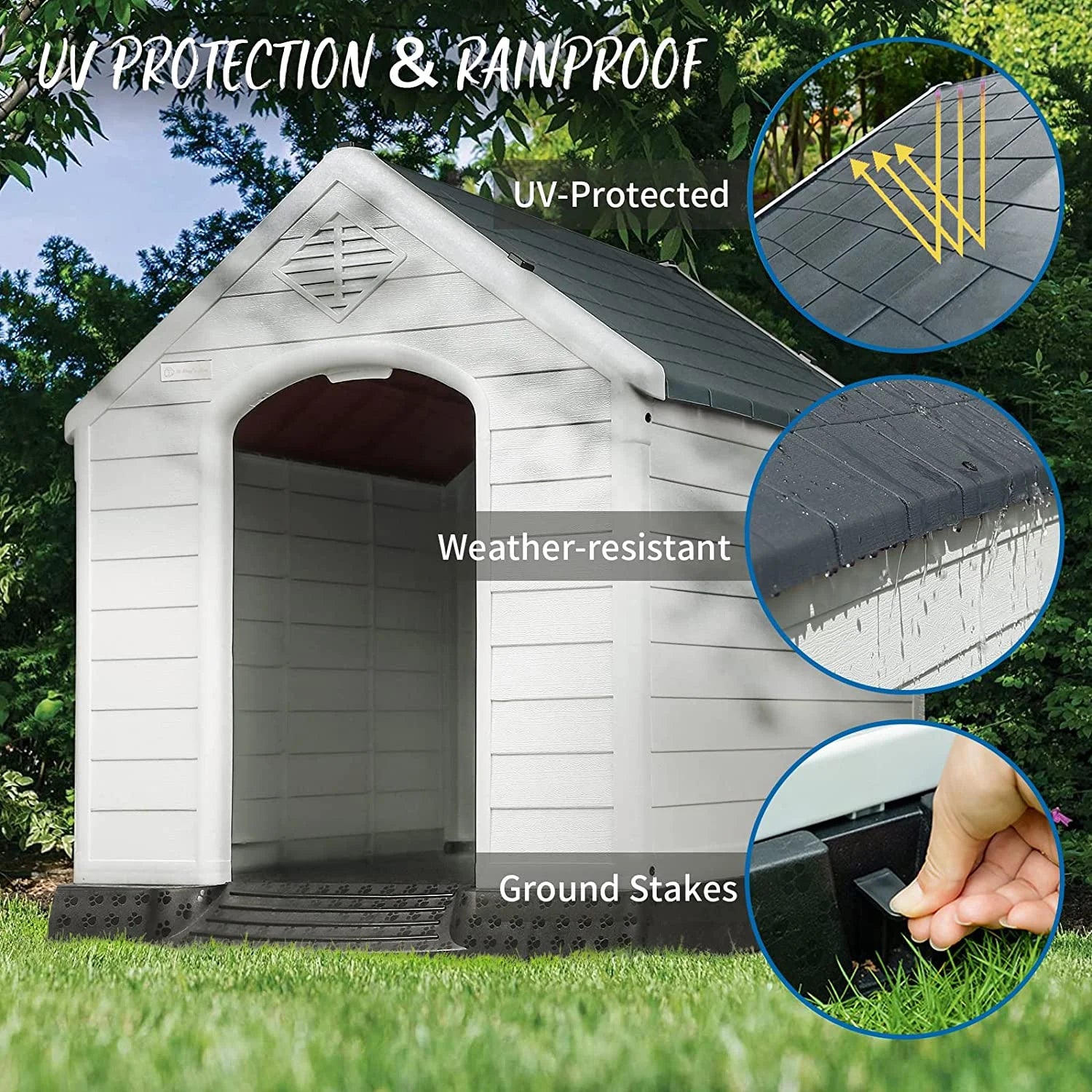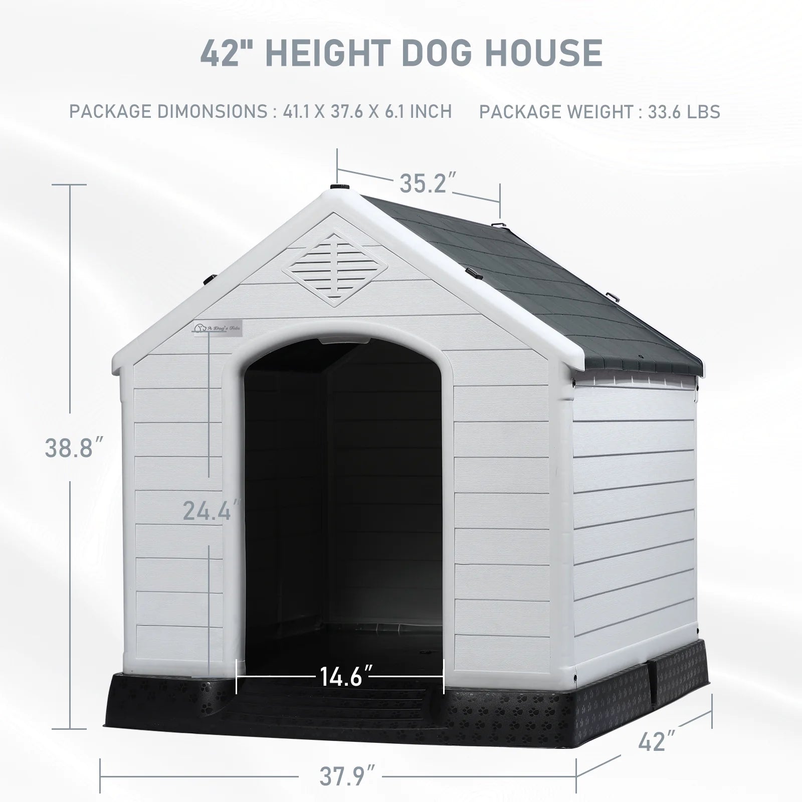 42 inch Plastic Dog House Outdoor Indoor for Small Medium Large Dogs,Waterproof Dog Houses with Elevated Floor and Air Vents,Durable Ventilate & Easy Clean and Assemble