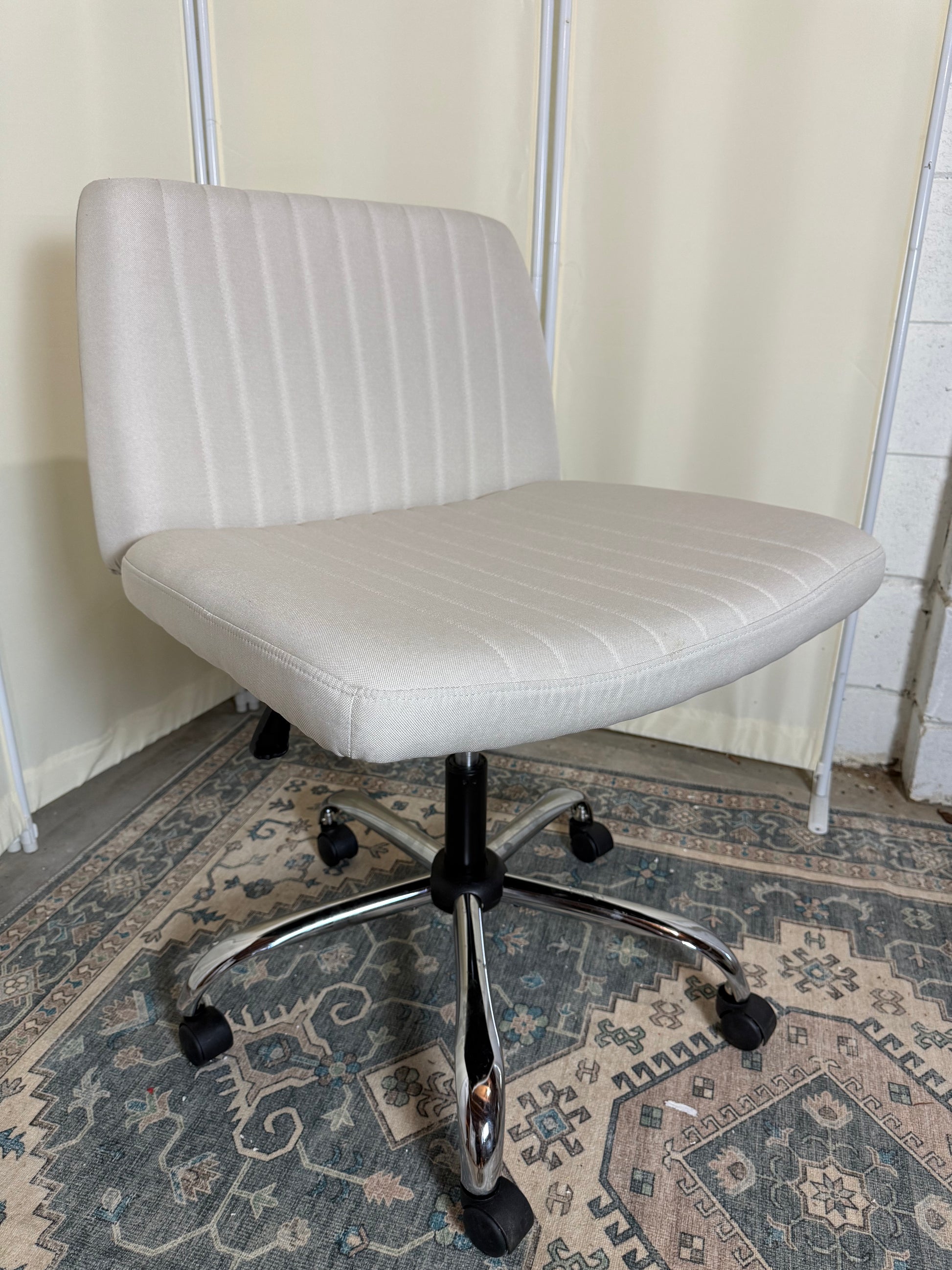 Criss Cross Chair Armless Cross Legged Office Desk Chair No Wheels Fabric Padded Modern Swivel Height Adjustable Mid Back Wide Seat Computer Task Vanity Chair for Home Office